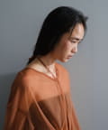 透け感がなんとも美しいこの生地ですが、実はカットソー素材。世の中で最もハイゲージな天竺織機で編み下ろし、タンブラー加工で生地に膨らみと上品さを与えた、繊細で力強いジャージークロスです。そのため生地に十分な伸び感があり、着心地が非常に楽なのも特徴です。