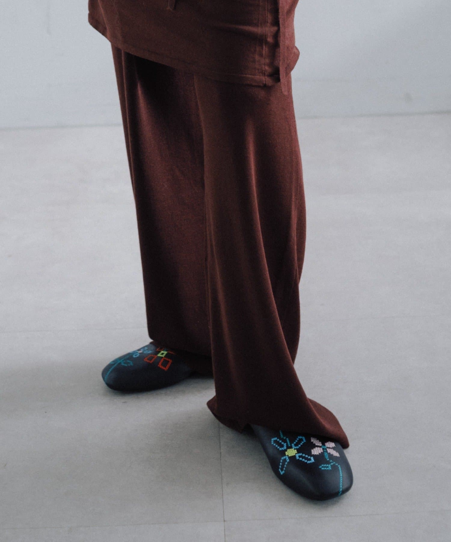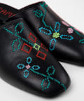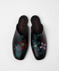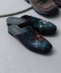 新作ツインズは、レザーアッパーに季節の花の刺繍が施されたフラットミュールが登場しました。 今シーズンの特別なデザインです。