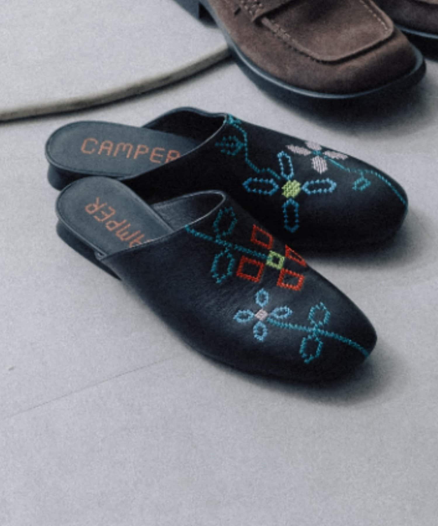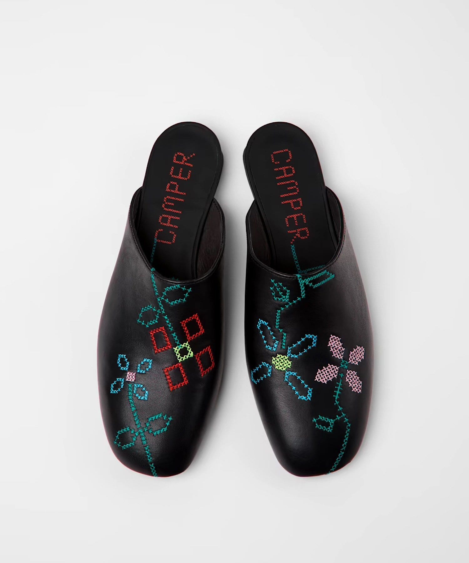 Pasteripが敬愛するCAMPER より25SS新商品が登場。花の刺繍を施したフラットミュールが登場。