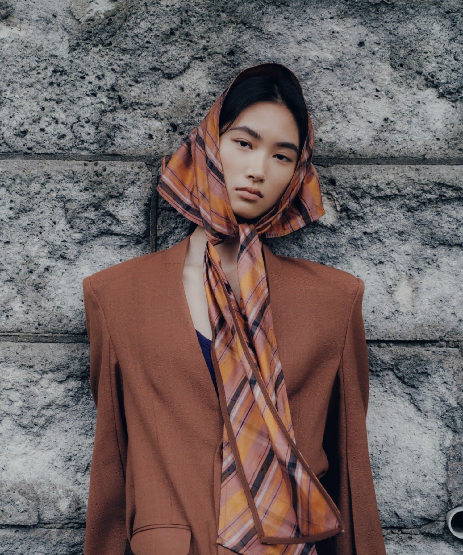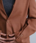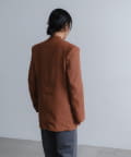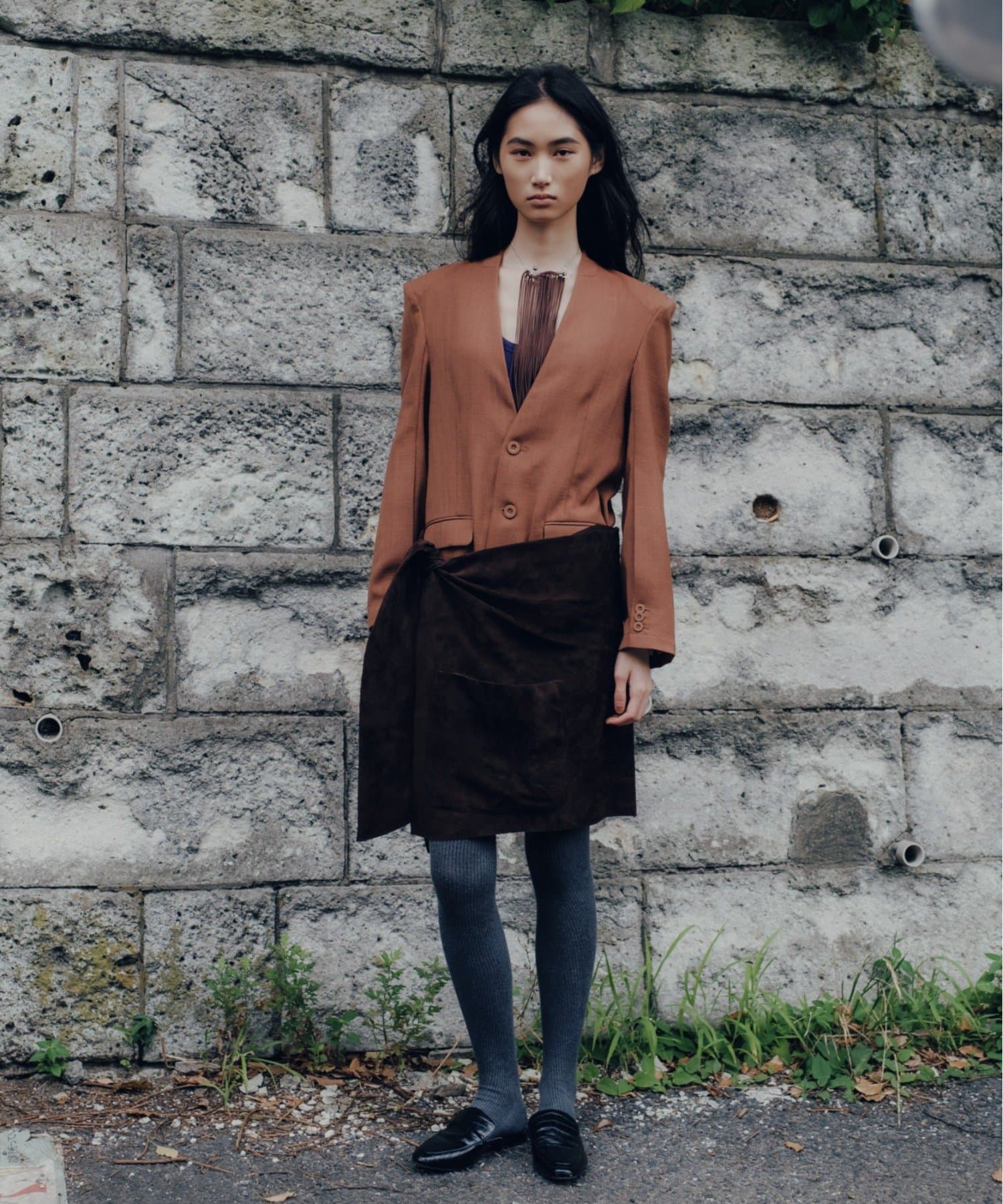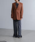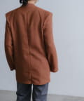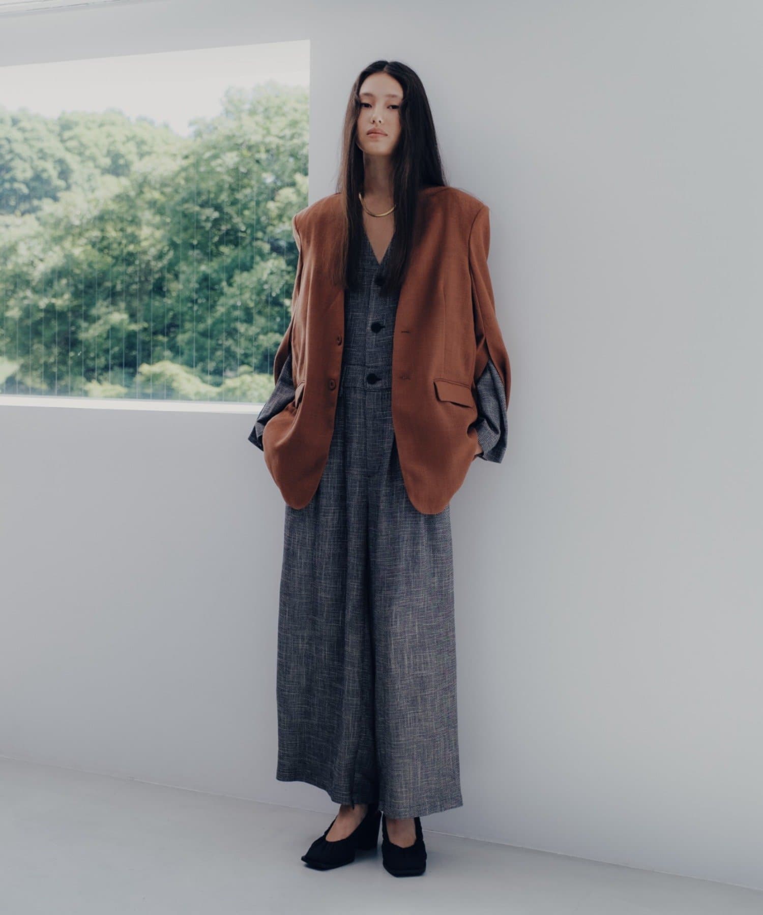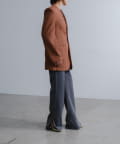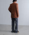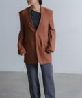肩パッドの形、袖付きの角度、アームの刳りの深さを緻密に計算し、ボディラインをよりシャープに見せられるシルエットづくりに拘りました。太さのあるパンツとのコーディネートもバランスよくまとまるサイジングが非常に新鮮です。
