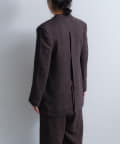 特別な素材と美しいシルエットが自慢のデザインジャケット。特殊加工を施したスラブ糸を使用した、カラミ織りの美しいジャガード生地。その軽さと表情感を活かして、ロングシーズンで気軽に手に取りやすく、万能なデザインジャケットに仕立てました。