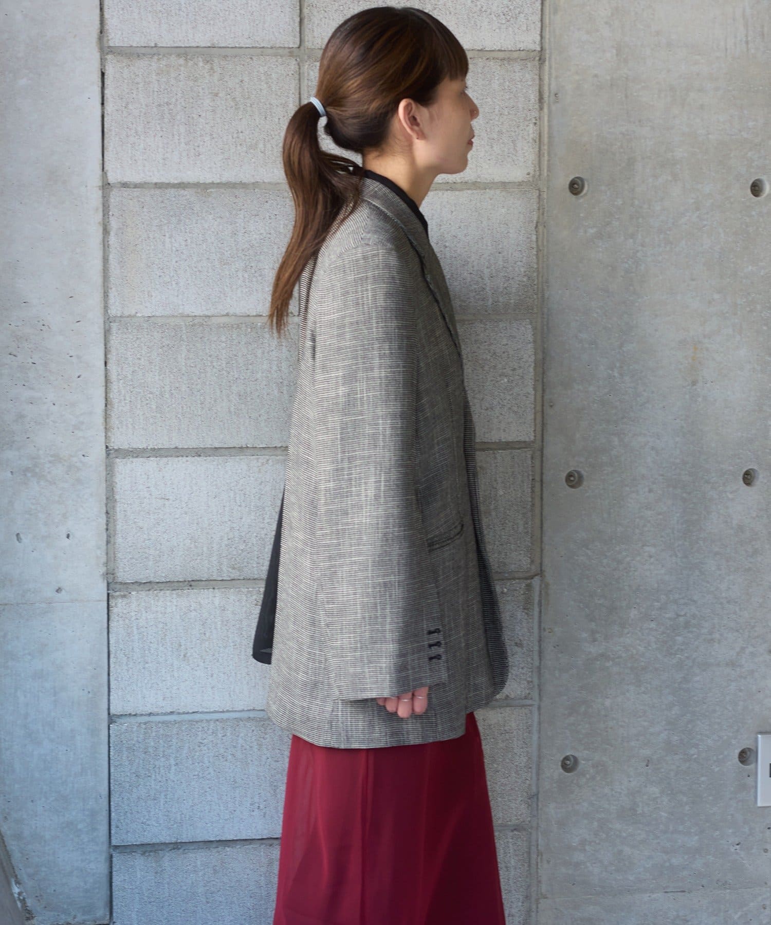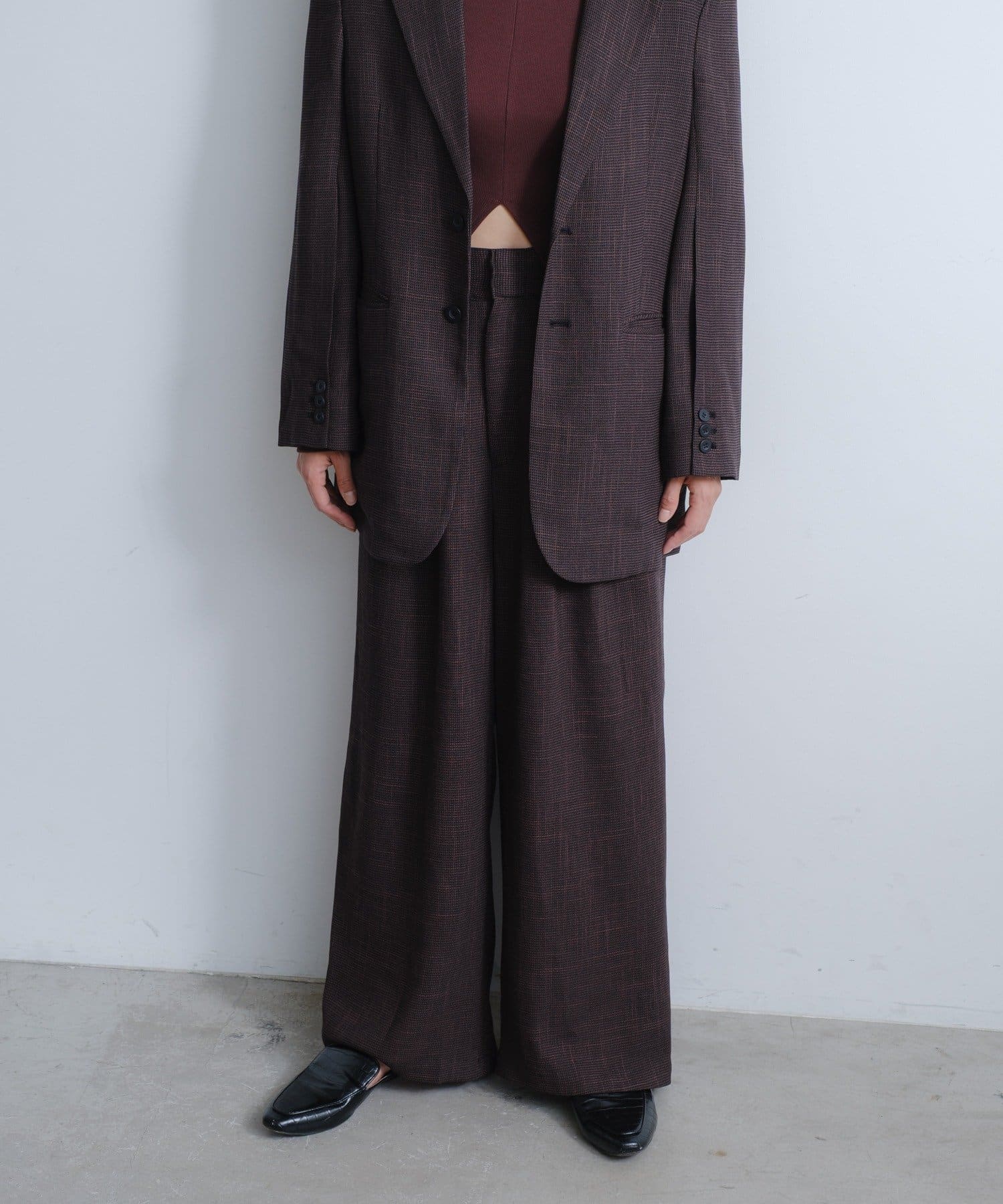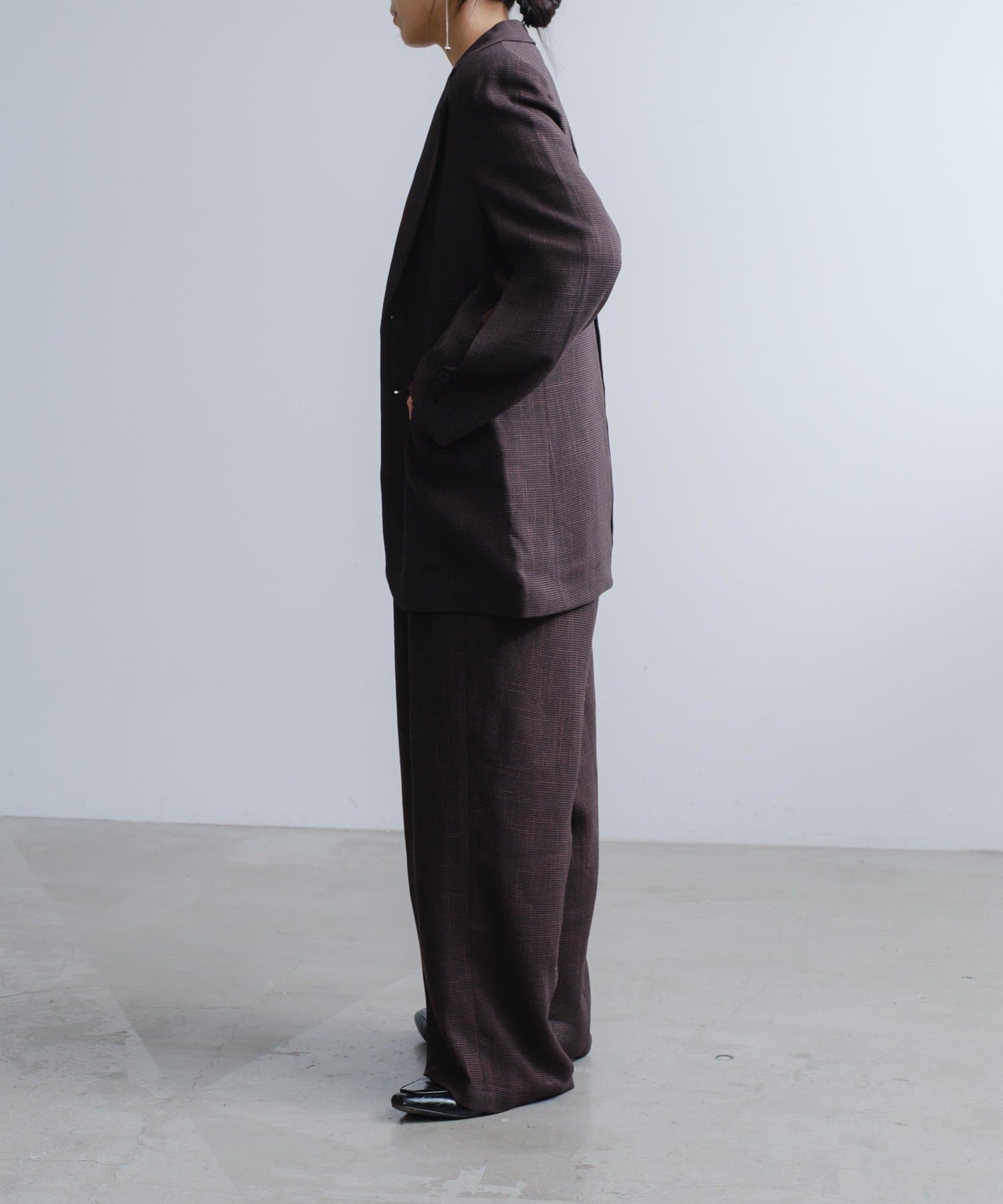 太さのあるパンツとのコーディネートもバランスよくまとまるサイジングが非常に新鮮で、着用していただくとドキッとするような美しさを感じていただけると思います。