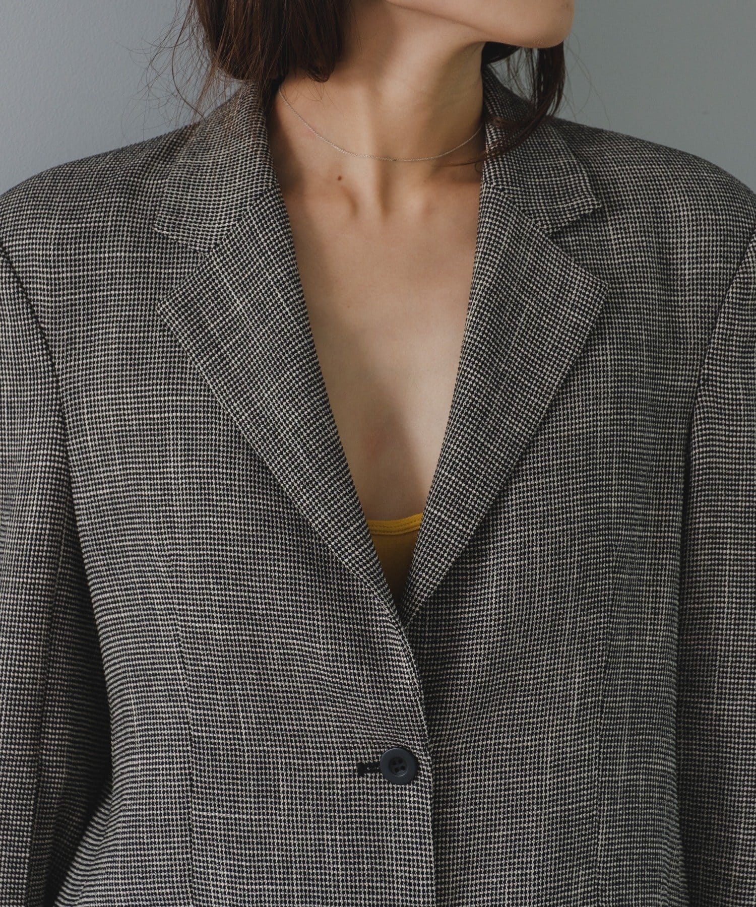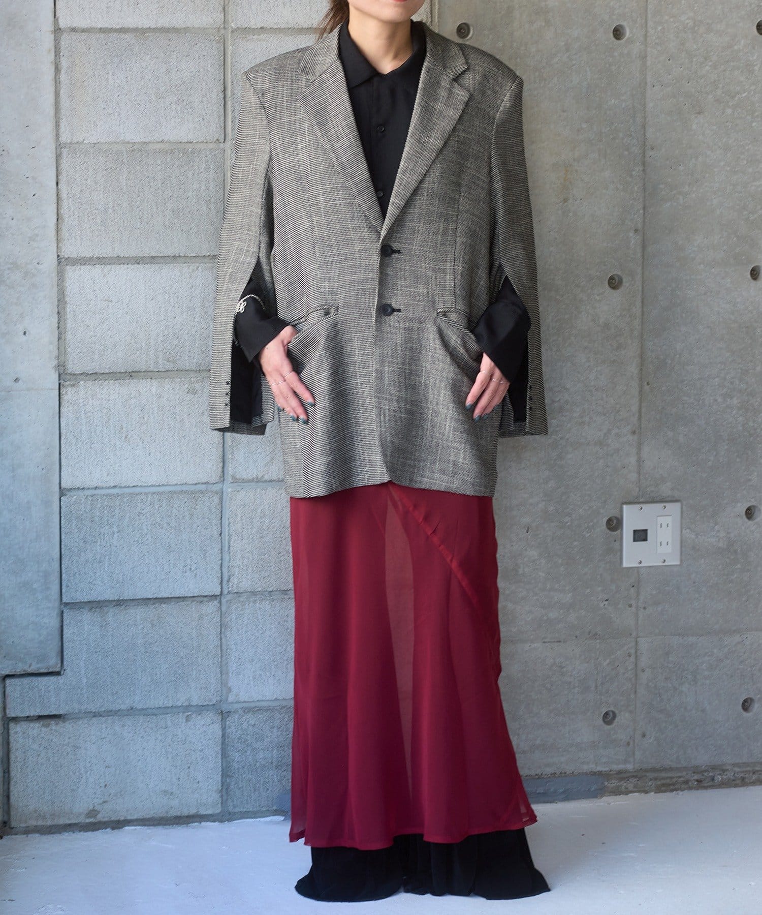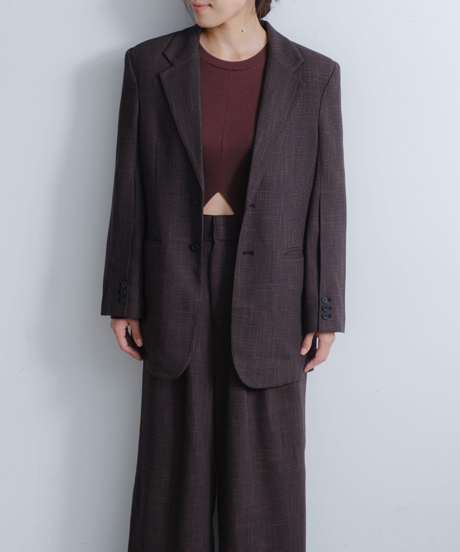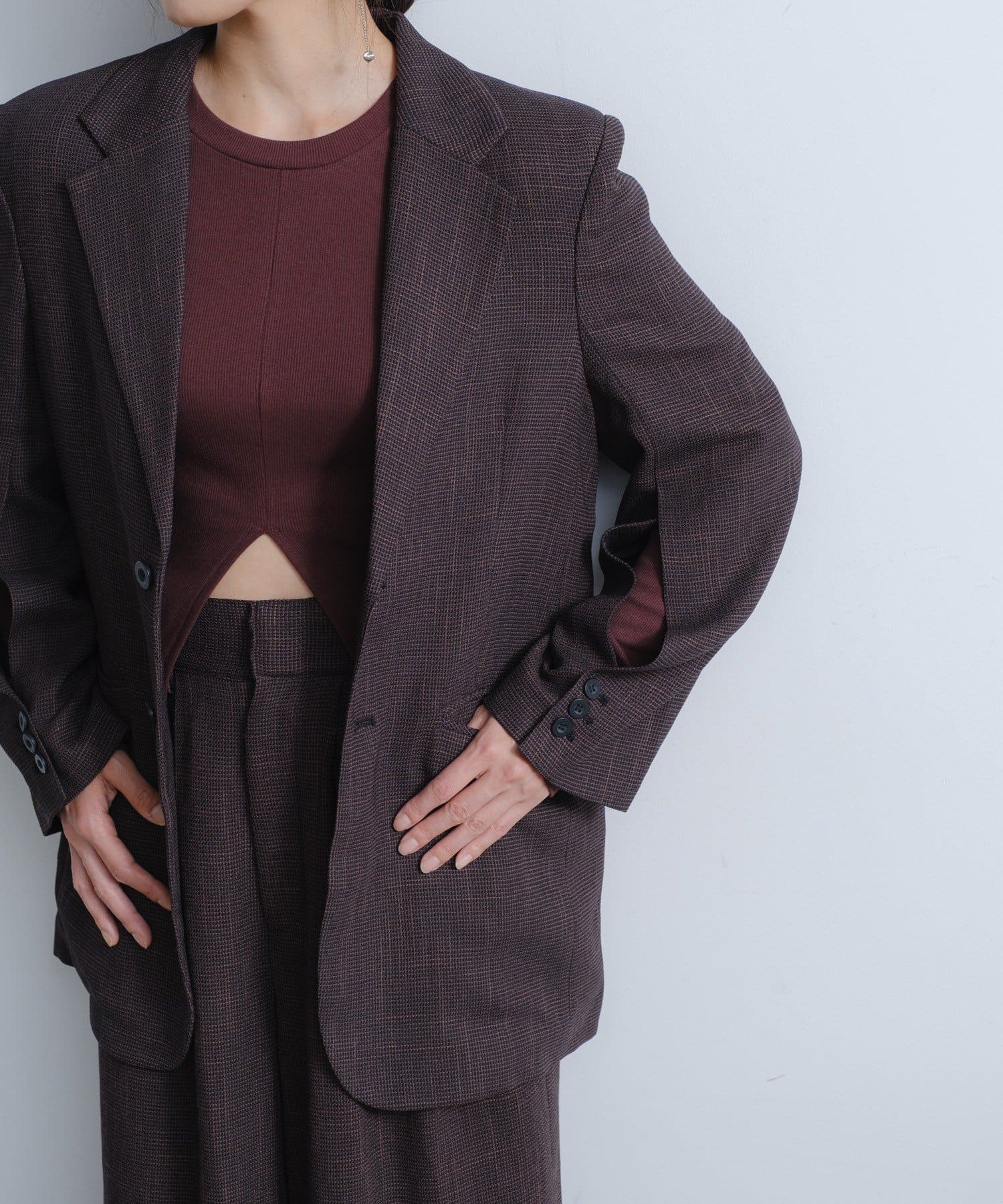 太さのあるパンツとのコーディネートもバランスよくまとまるサイジングが非常に新鮮で、着用していただくとドキッとするような美しさを感じていただけると思います。