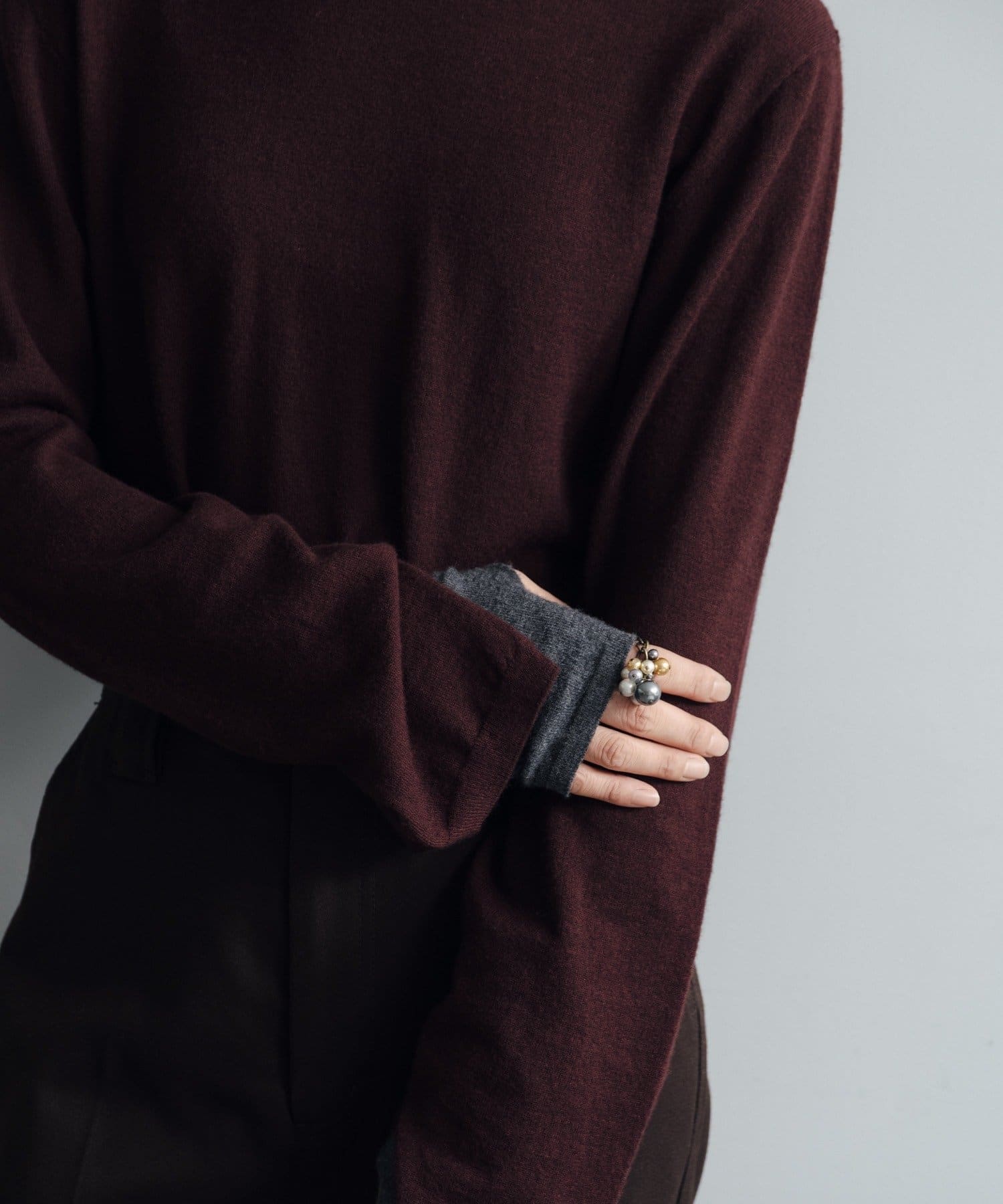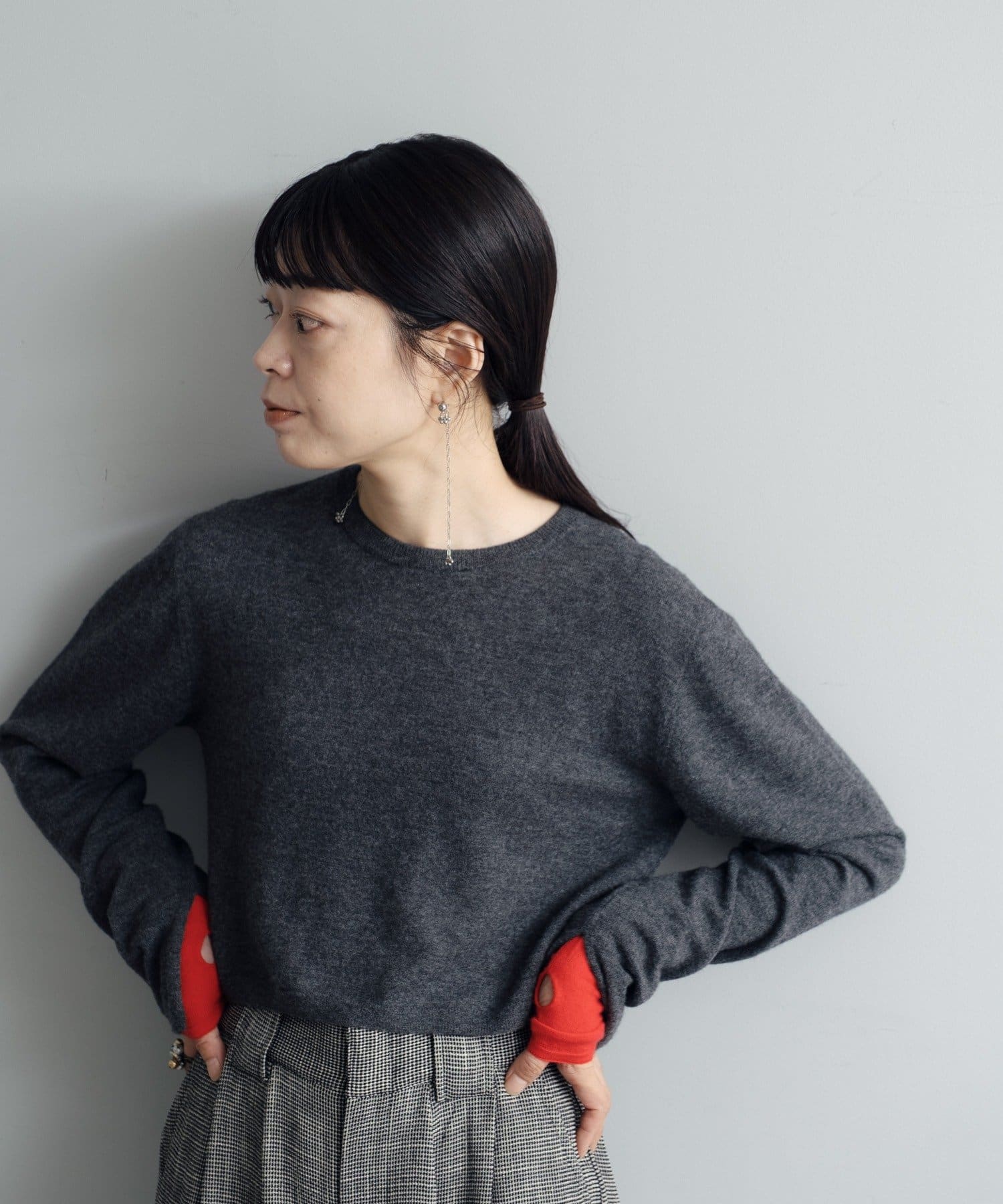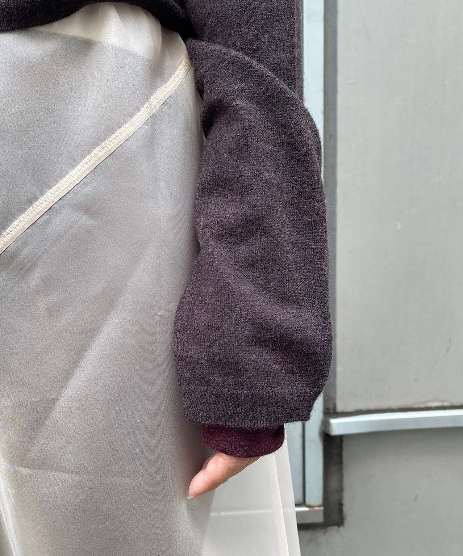 トップスの袖口にはスリットが入っており、袖口からちらりと配色の袖が覗くような仕掛け。もちろん、別でも着用可能です。