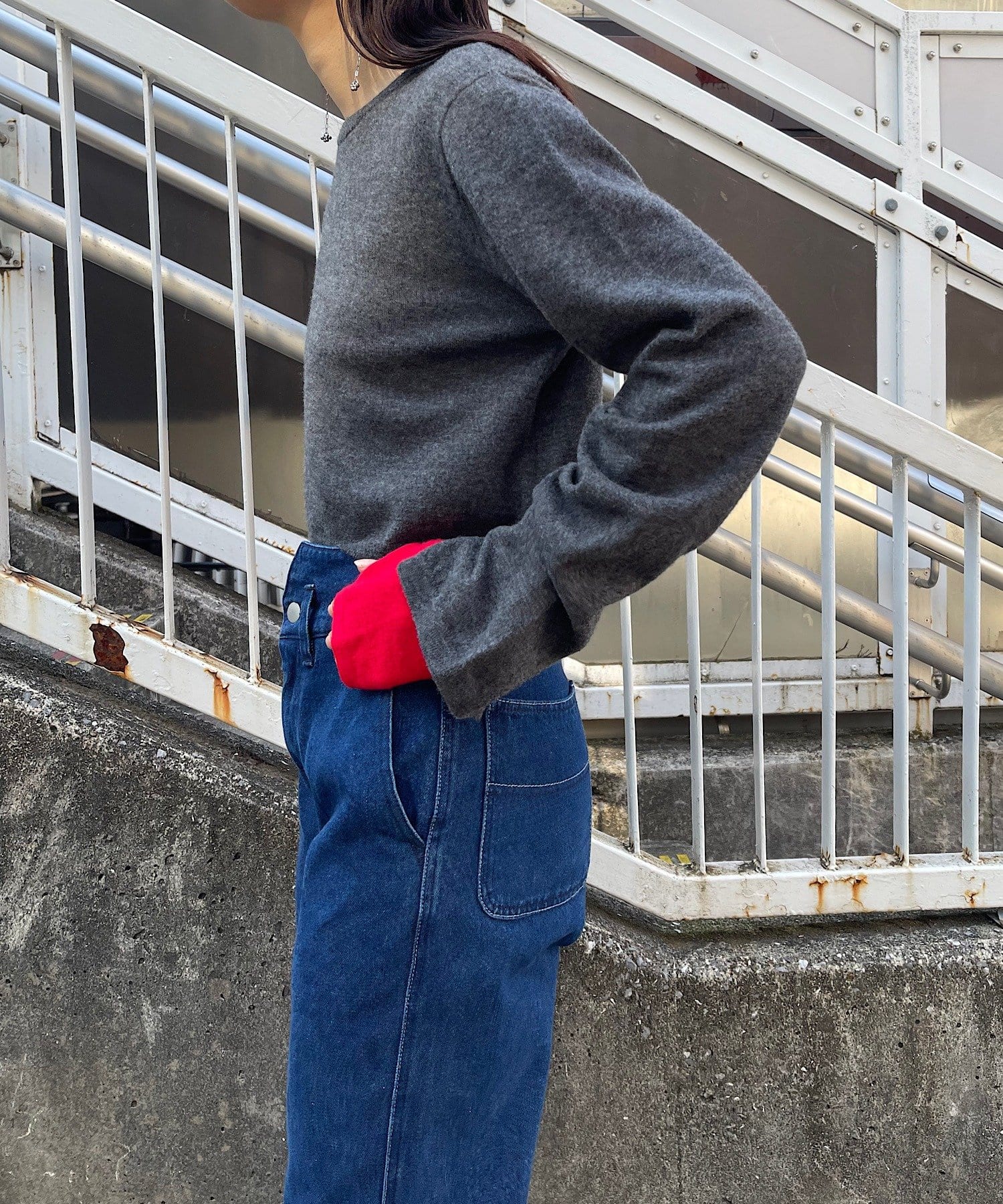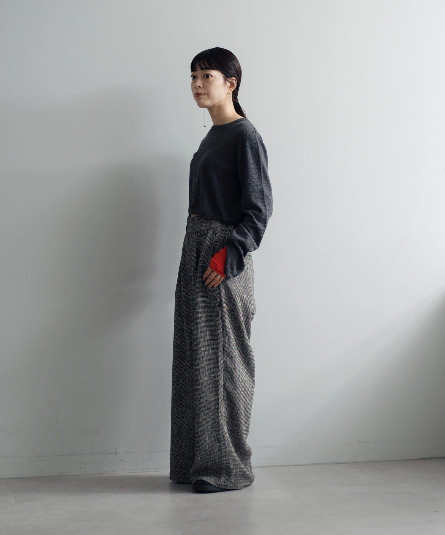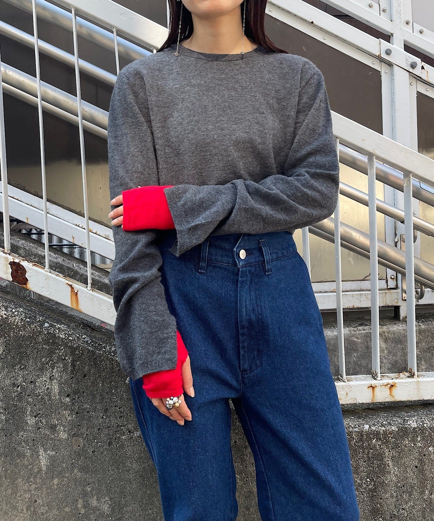 トップスの袖口にはスリットが入っており、袖口からちらりと配色の袖が覗くような仕掛け。もちろん、別でも着用可能です。