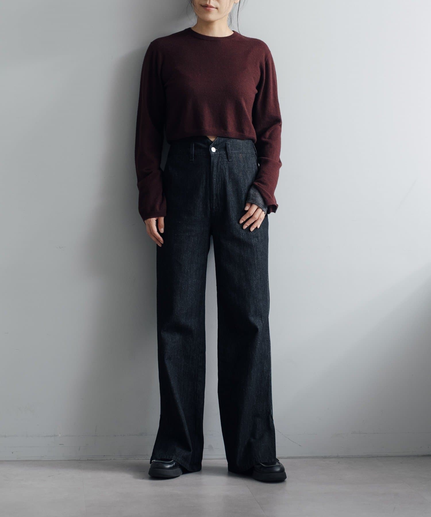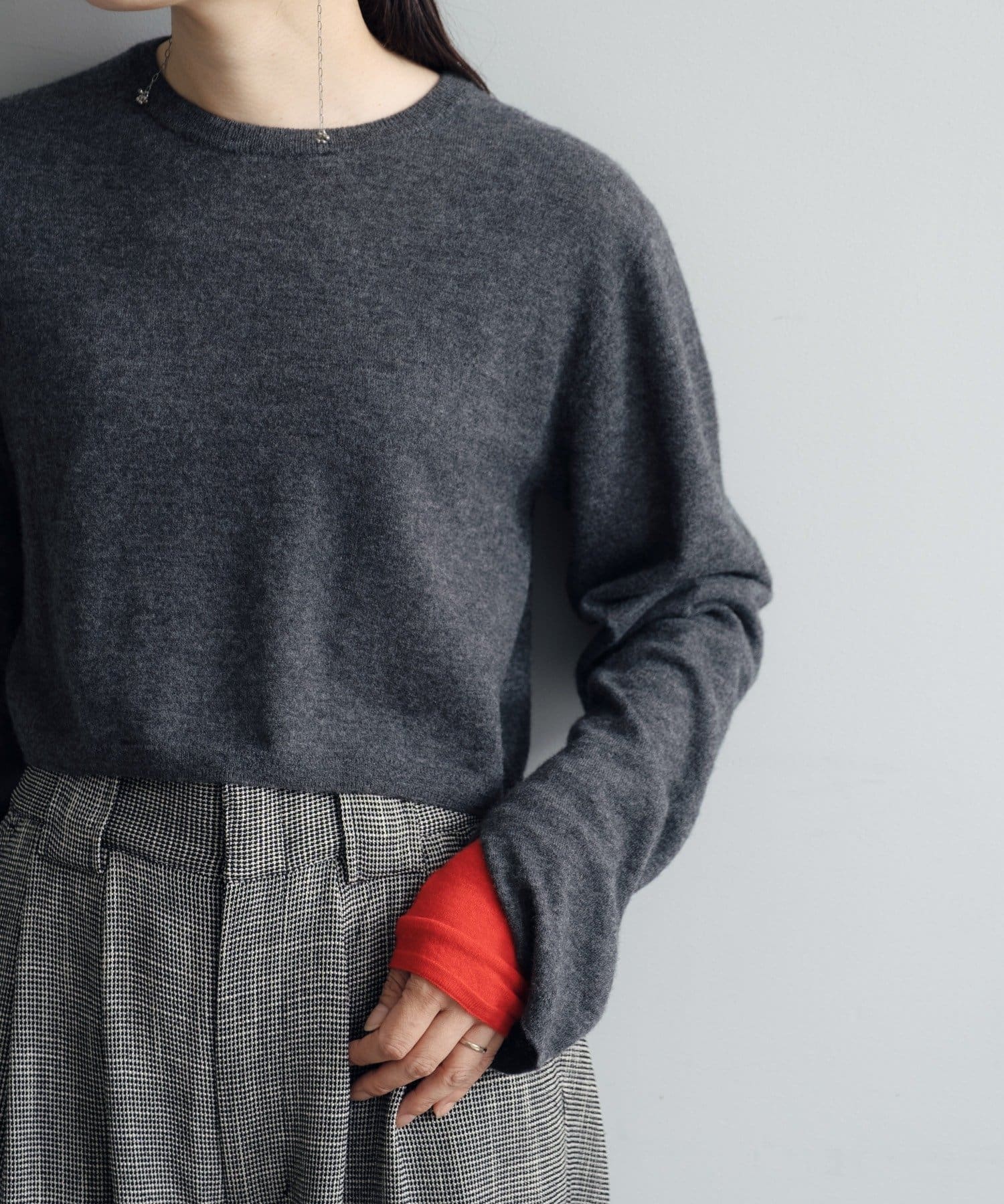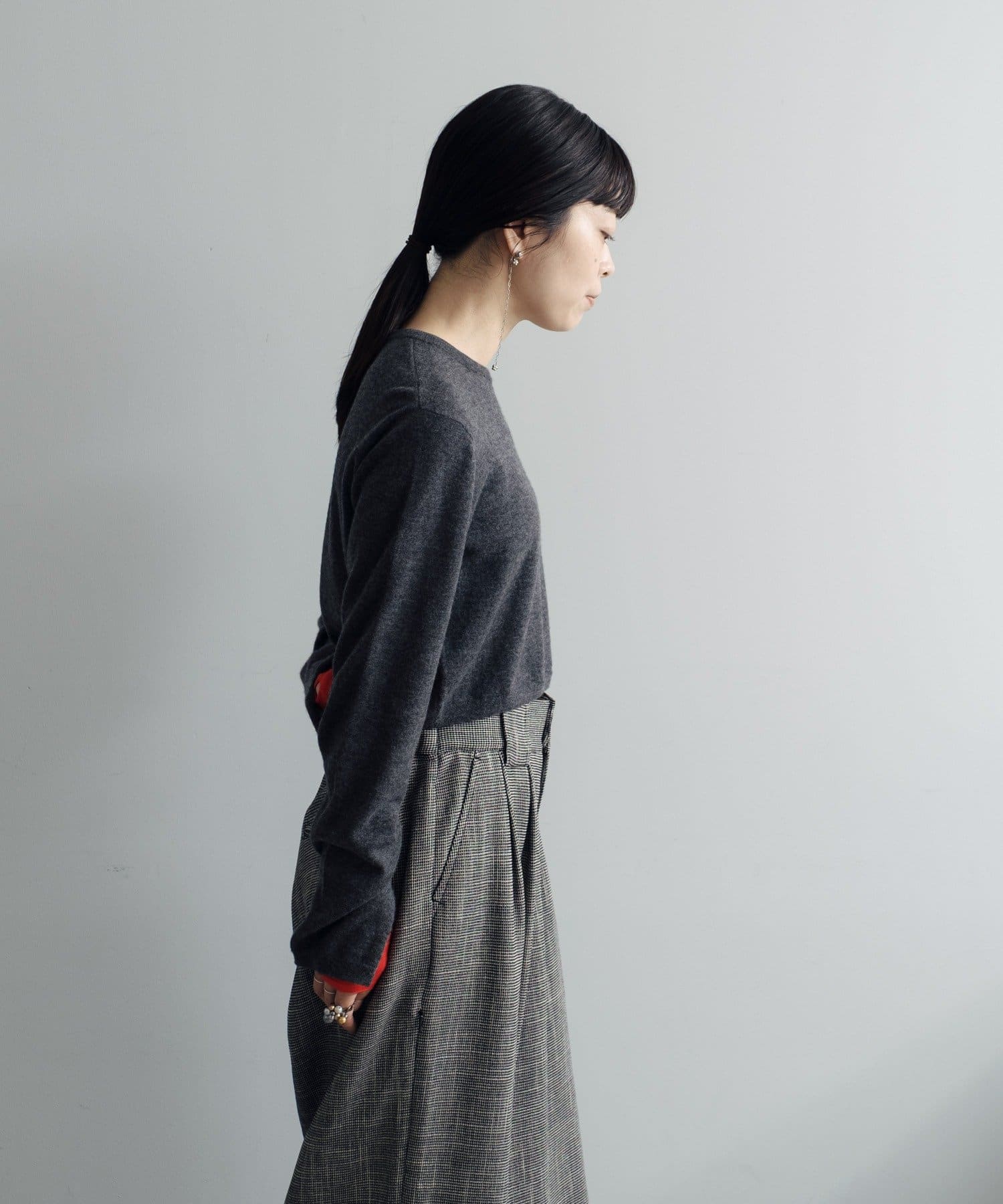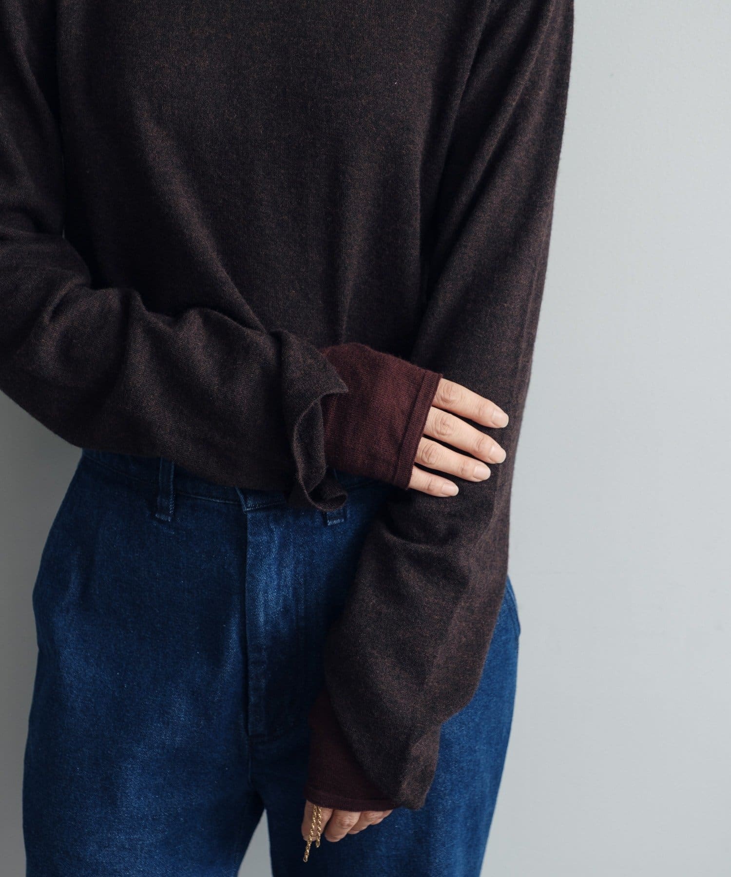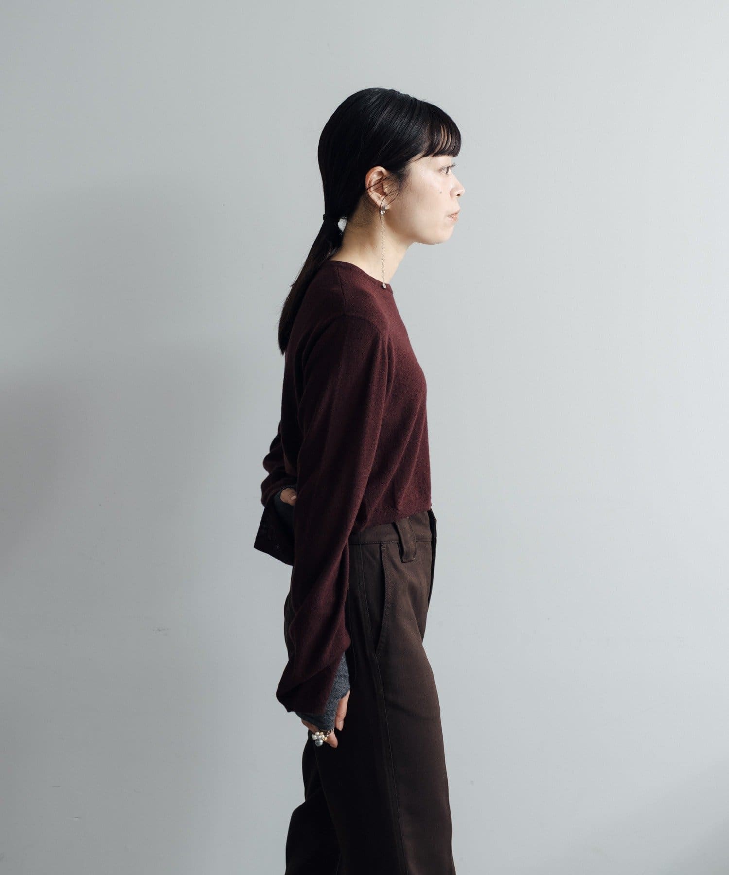 秋の立ち上がりに万能なコンパクトなサイジングで、1枚着はもちろん、ジャケットやアウターの中に着てもかさばらないのが魅力です。