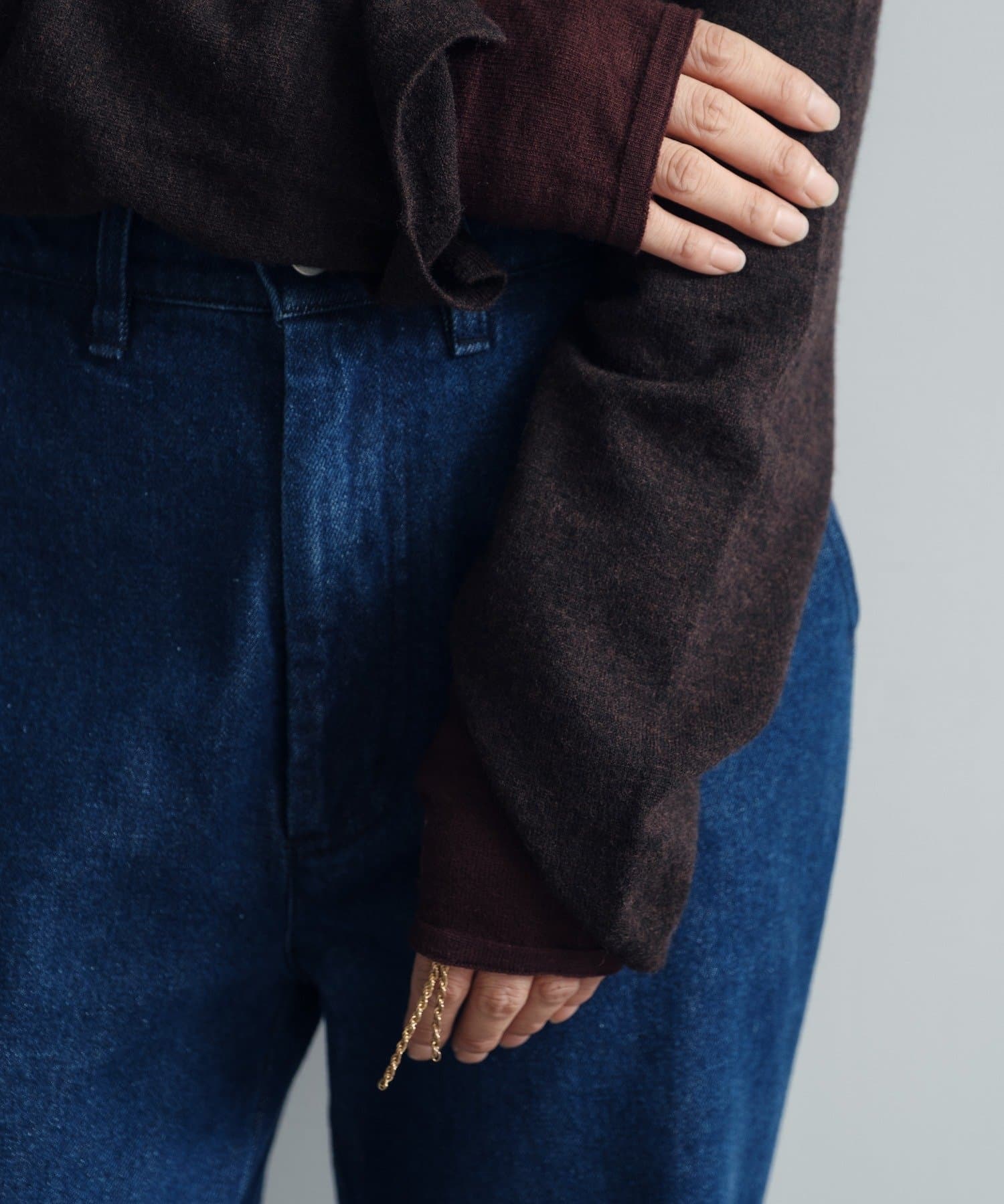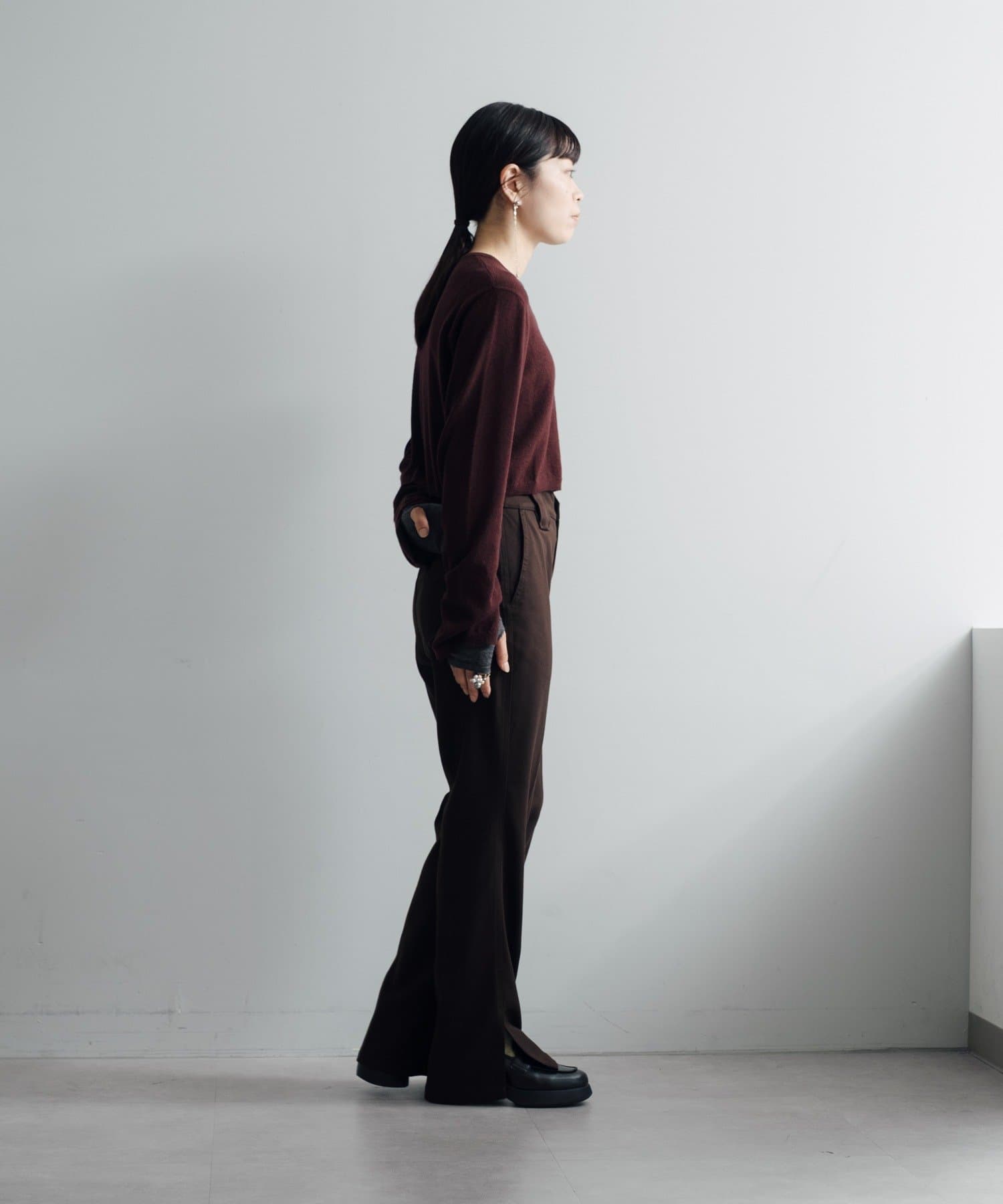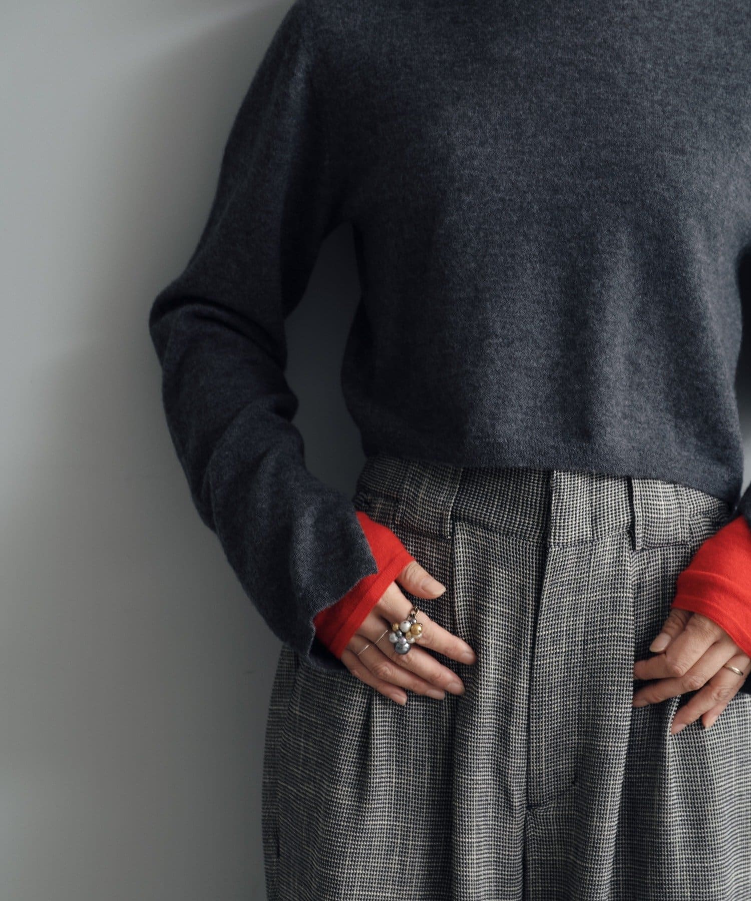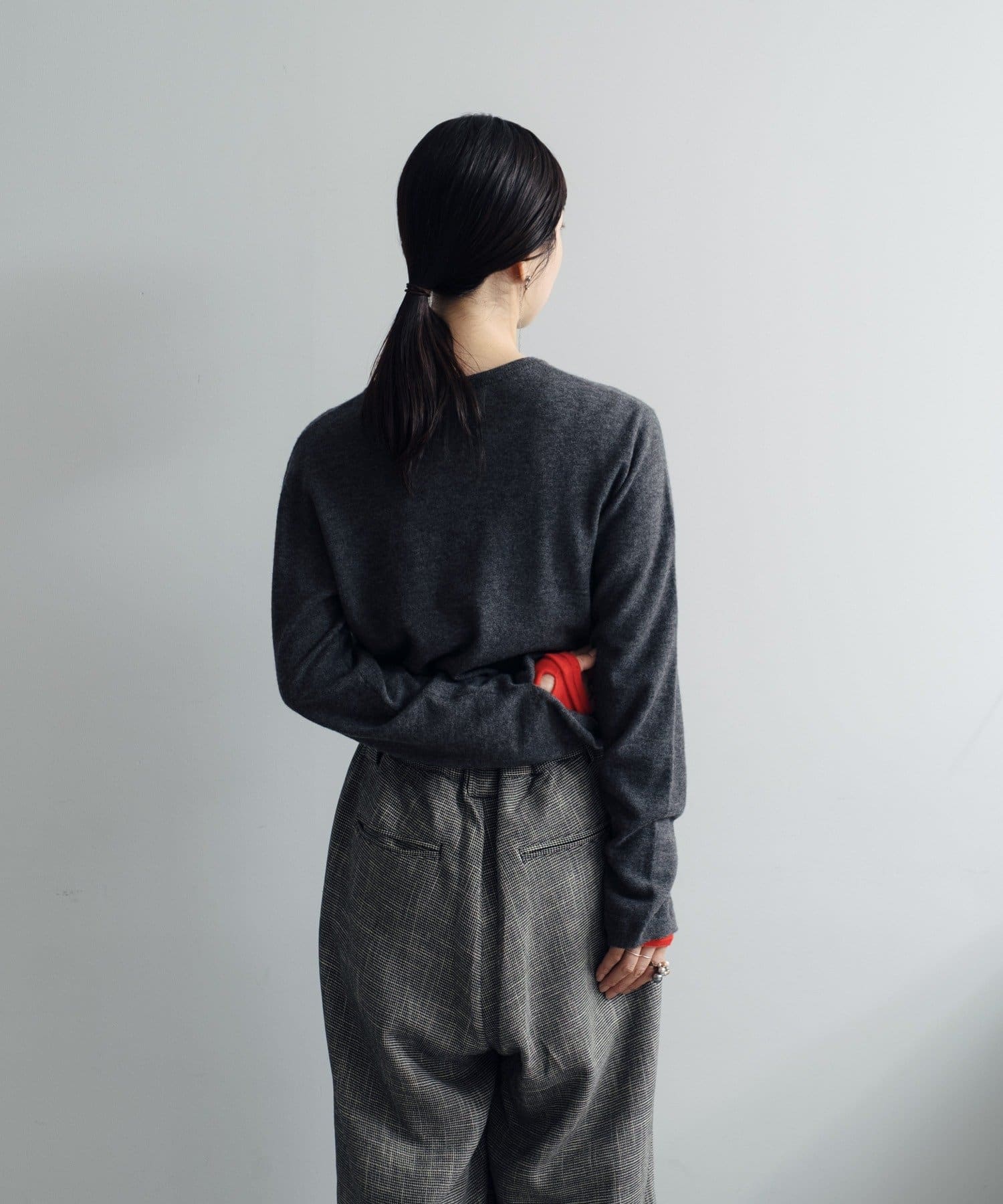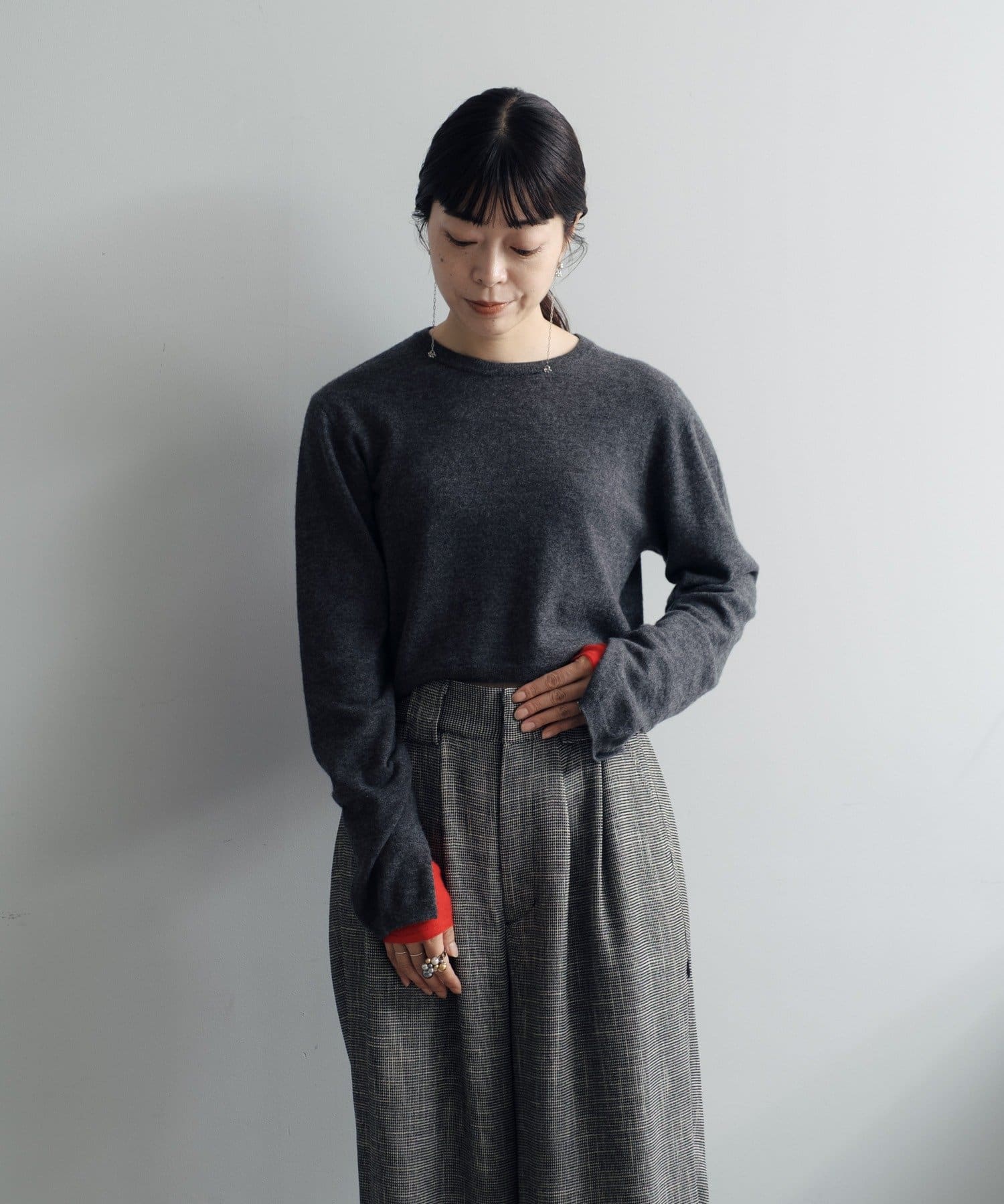 秋の立ち上がりに万能なコンパクトなサイジングで、1枚着はもちろん、ジャケットやアウターの中に着てもかさばらないのが魅力です。