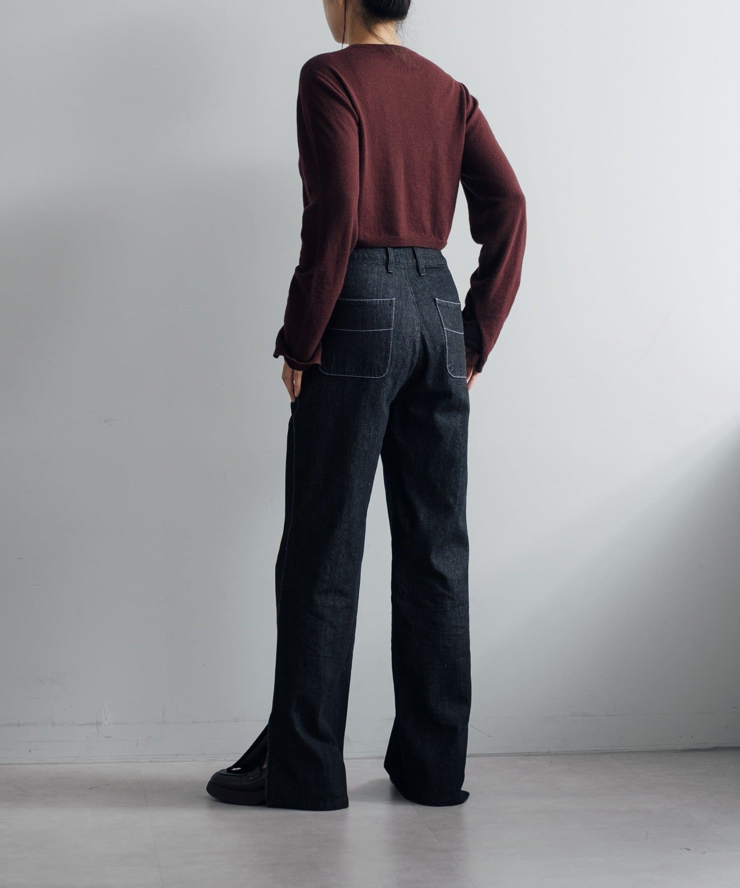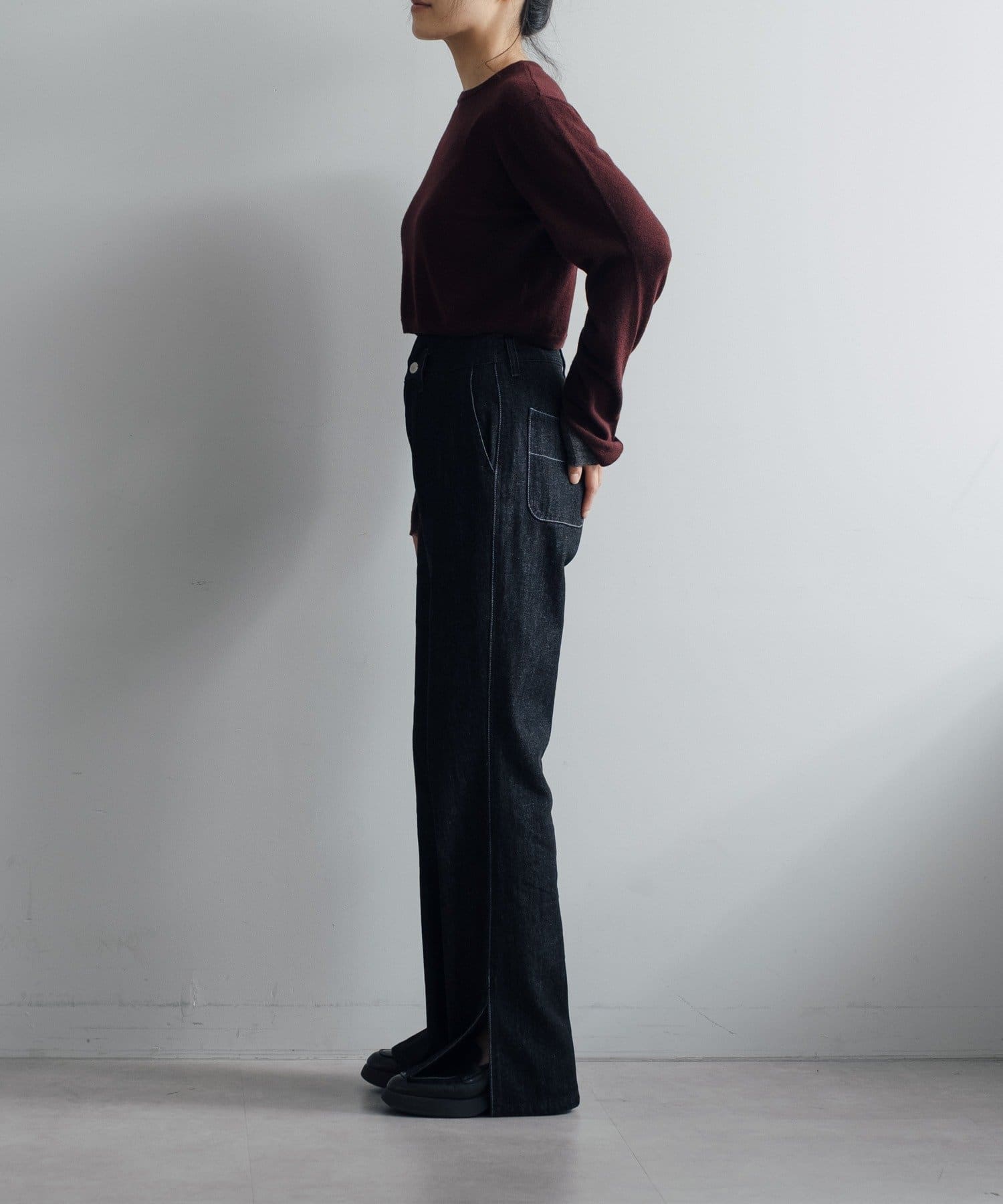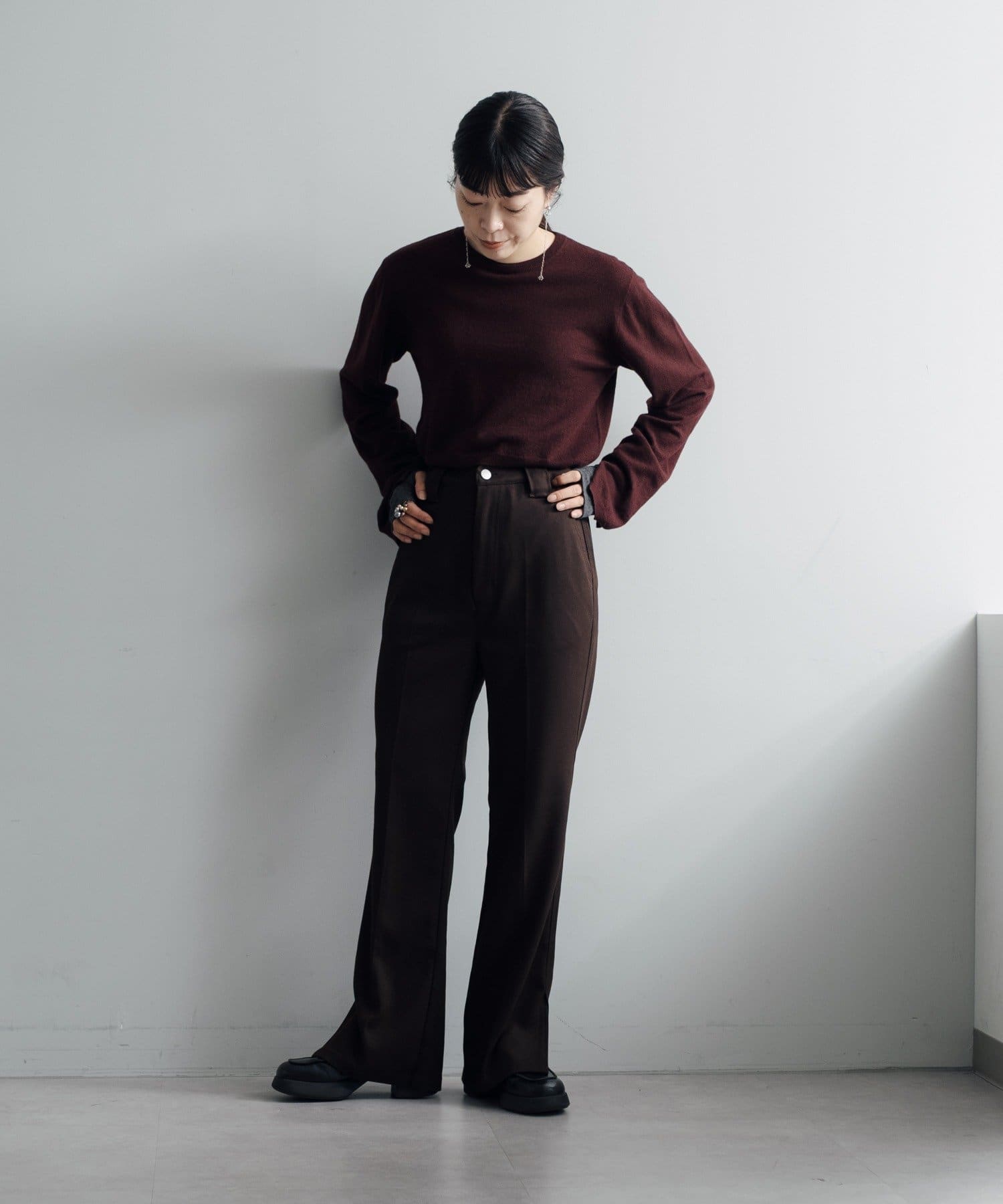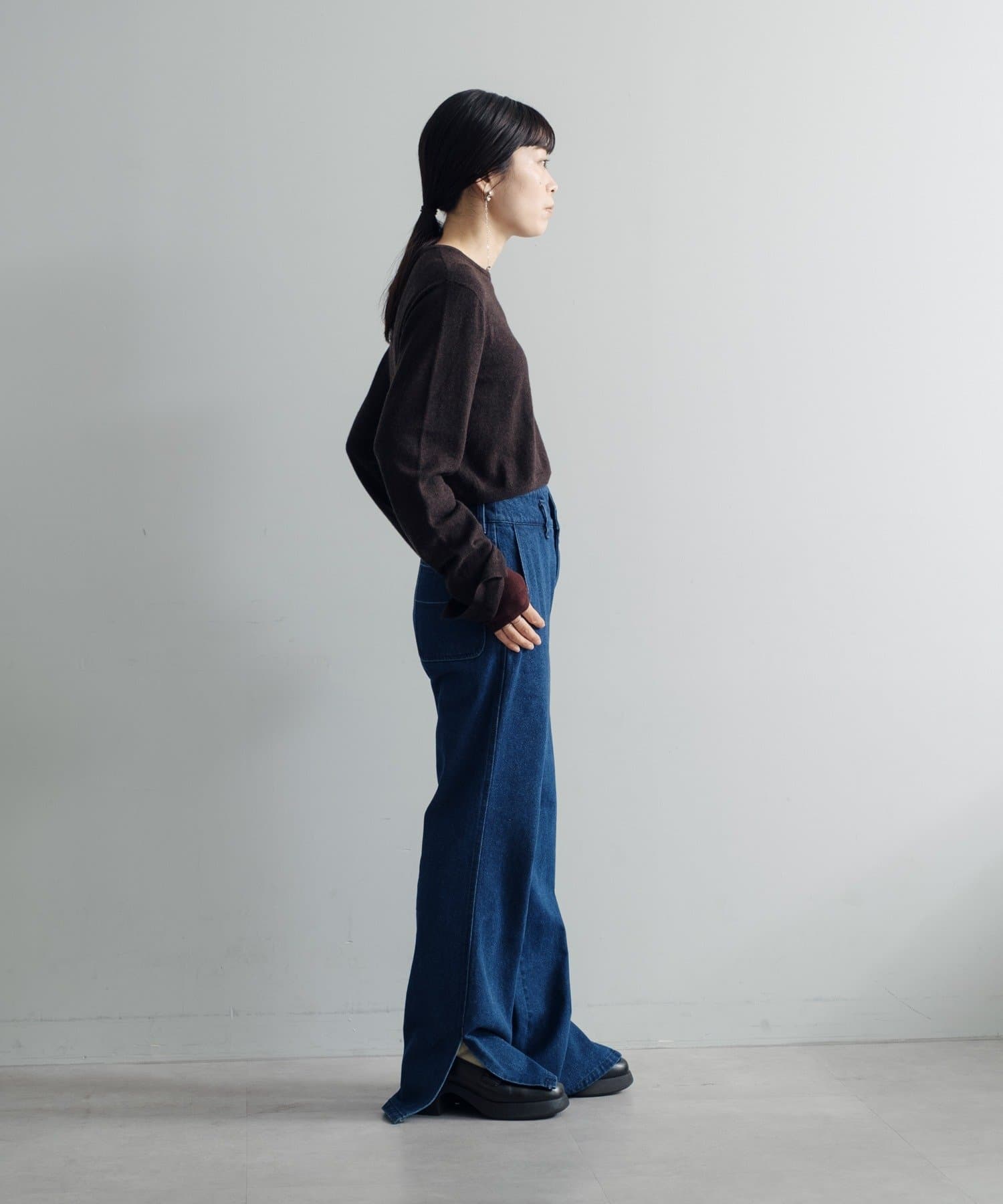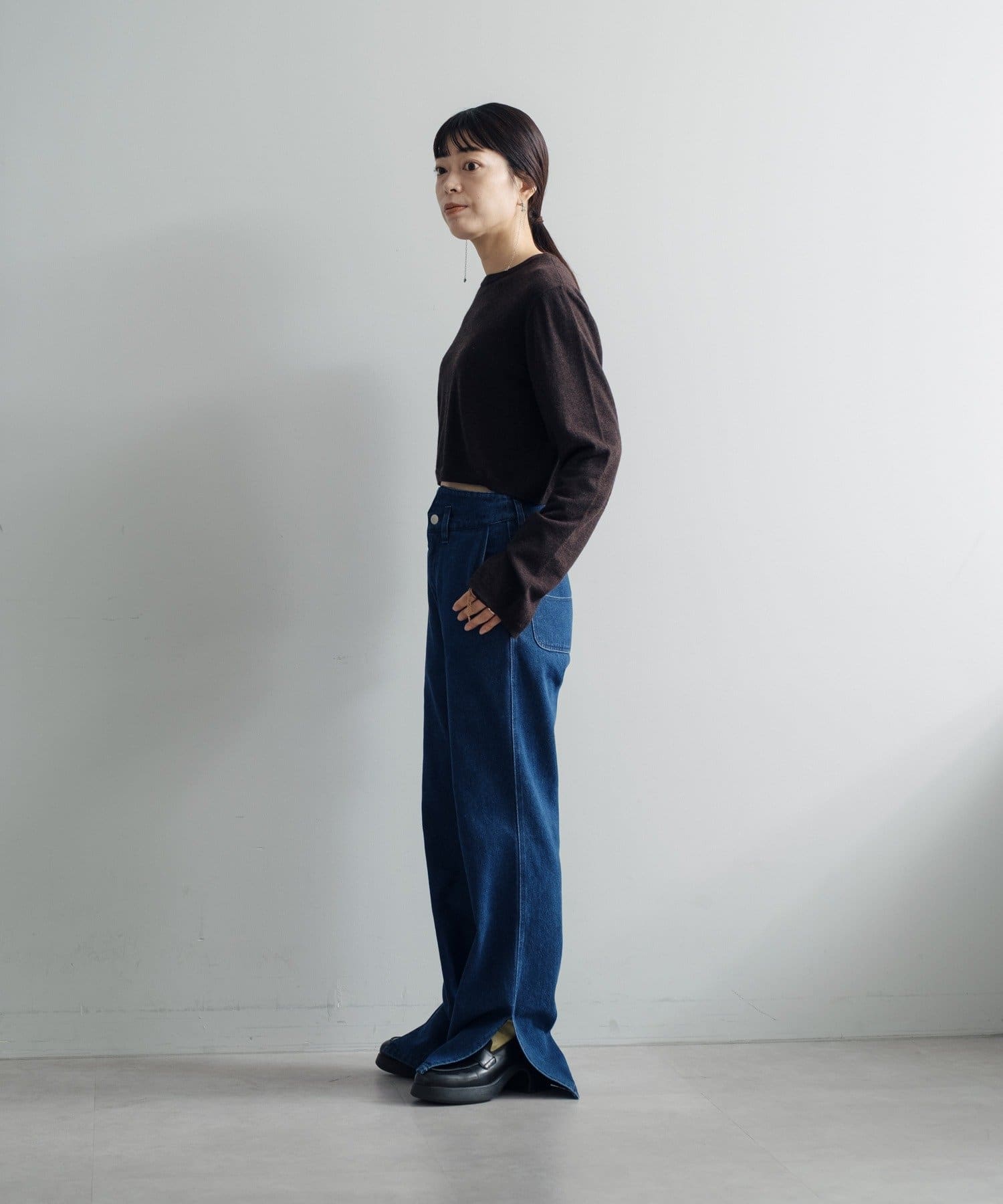 秋の立ち上がりに万能なコンパクトなサイジングで、1枚着はもちろん、ジャケットやアウターの中に着てもかさばらないのが魅力です。