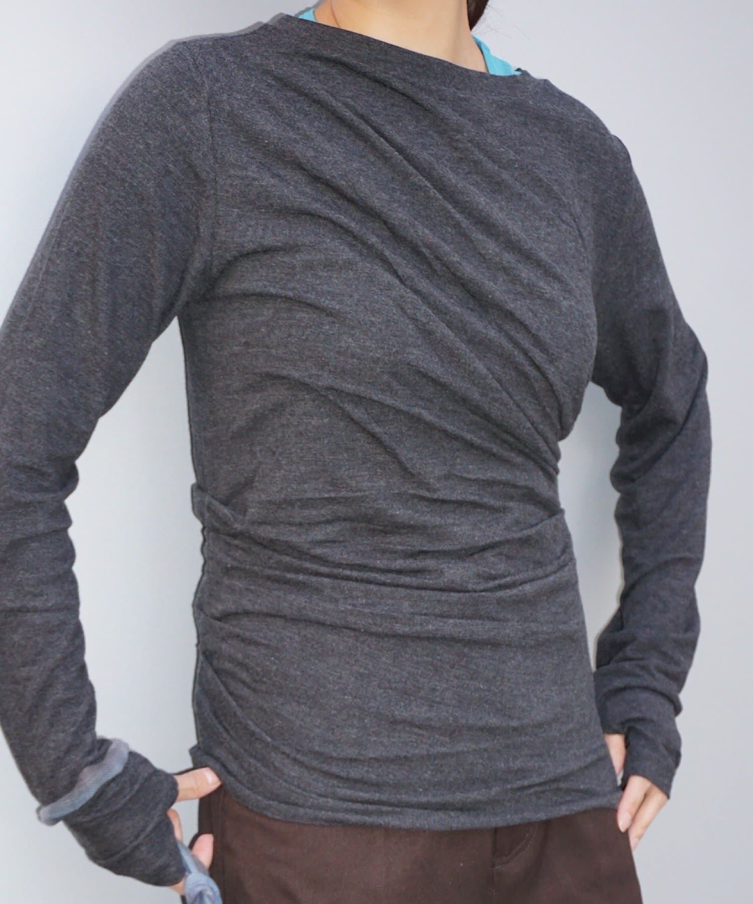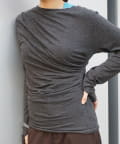 ニットのような温かみのある、肌触りの良いウール混のカットソー生地でのコンパクトなトップスと、ミニスカートのSET。たっぷりとタックをいれて表情をつけたデザインアイテムです。合わせて着用すると、ミニワンピースのように見えるデザインです。もちろん、それぞれ別でも着用可能です。