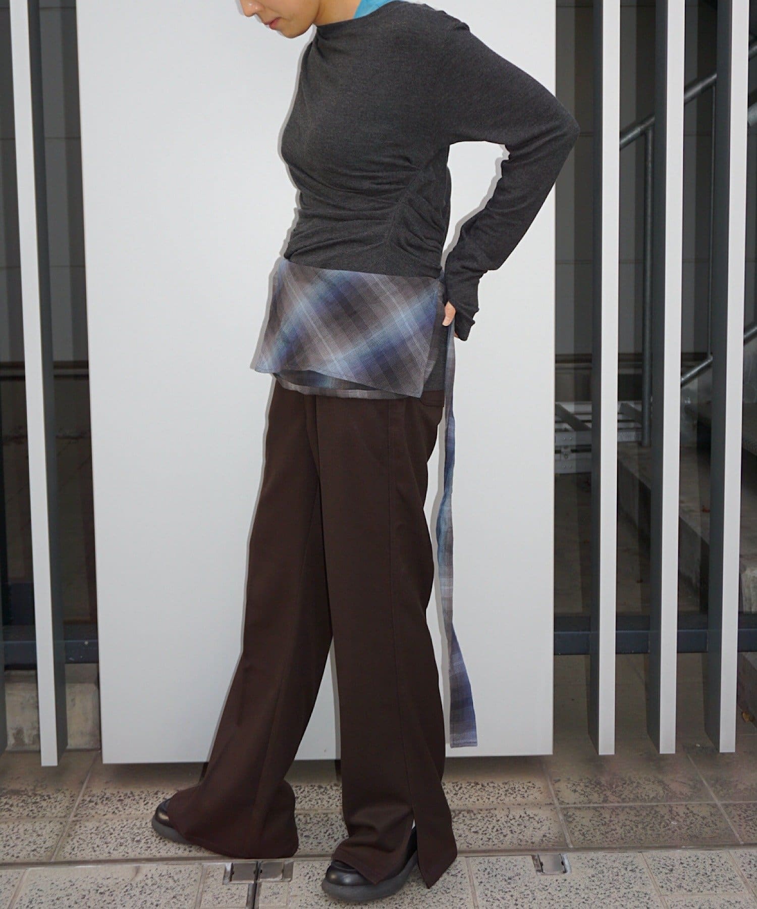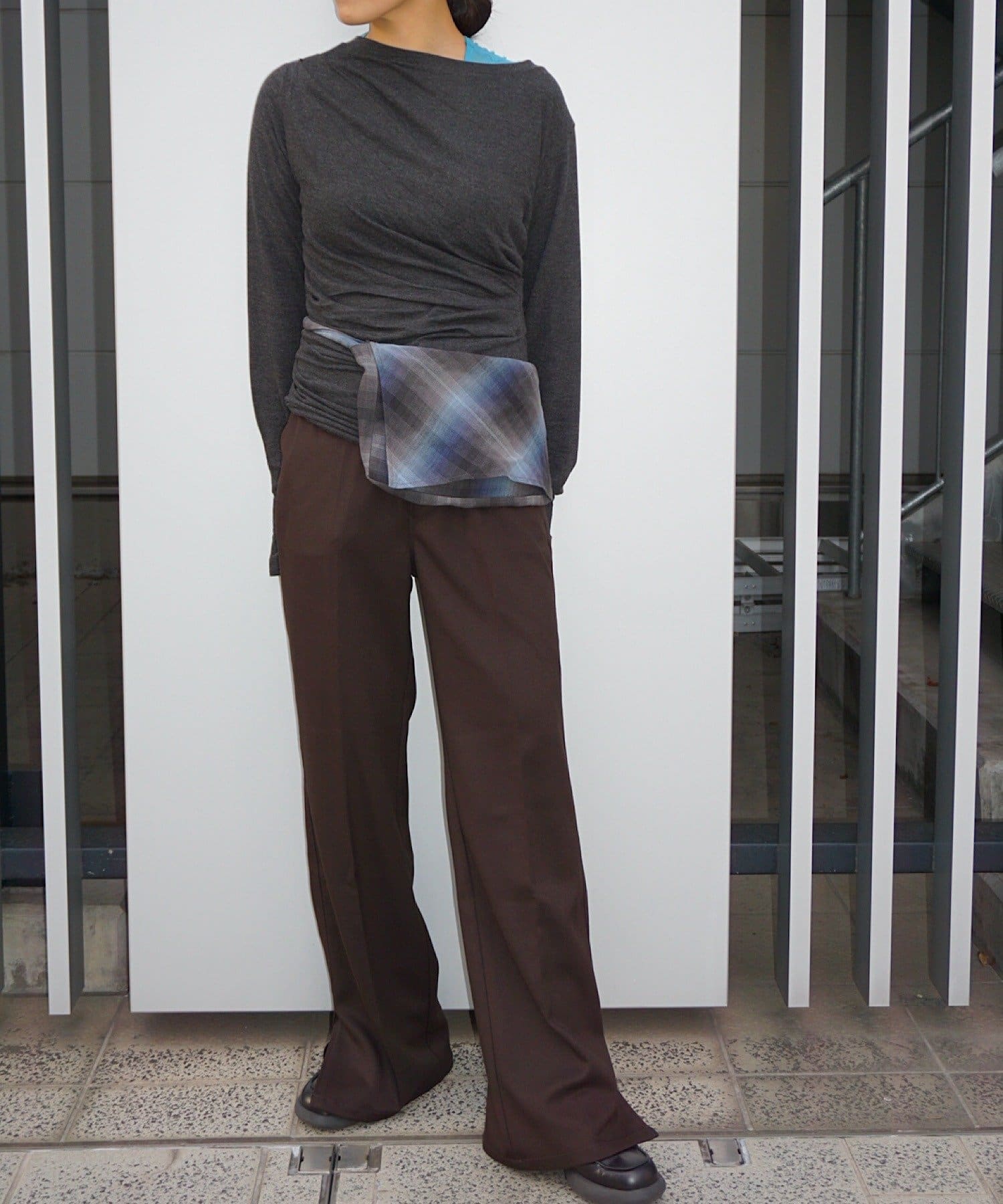 カラーはRED/BROWN/CHARCOALの3色展開。レギンスやデニムとの重ね着が楽しくなるユニークな2ピースです。