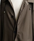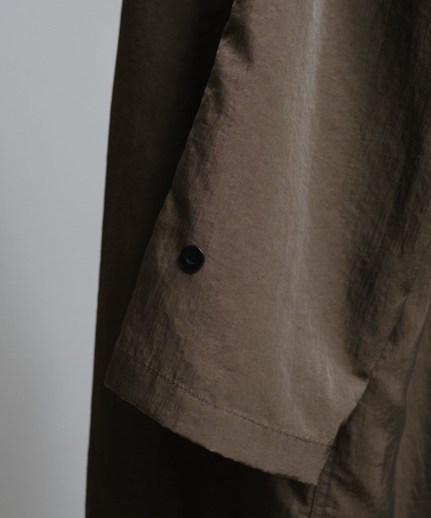 Pasteripの代表的なアウターウェアーの1つとなっている、ハイデンシティツイルのアクティブコート。1枚で全身を覆う思い切った丈の長さと軽さ、そして利便性が高いことが人気の秘密です。このコートのデザインをベースにし、スポーティになりすぎず、よりモードな印象で着用できるナイロンコートを新しく作りました。国内生産のヘビーウェイトのナイロンツイルを染料+顔料で染色し、さらに何時間もかけて製品洗いをかけることで、ナイロン製品にはなかなか実現できない独特の色落ちや当たり感がしっかりとでているのが特徴です。もちろん、ナイロン特有の微光沢も兼ね備えているので、より着用映えもしてカッコ良く着用できます。