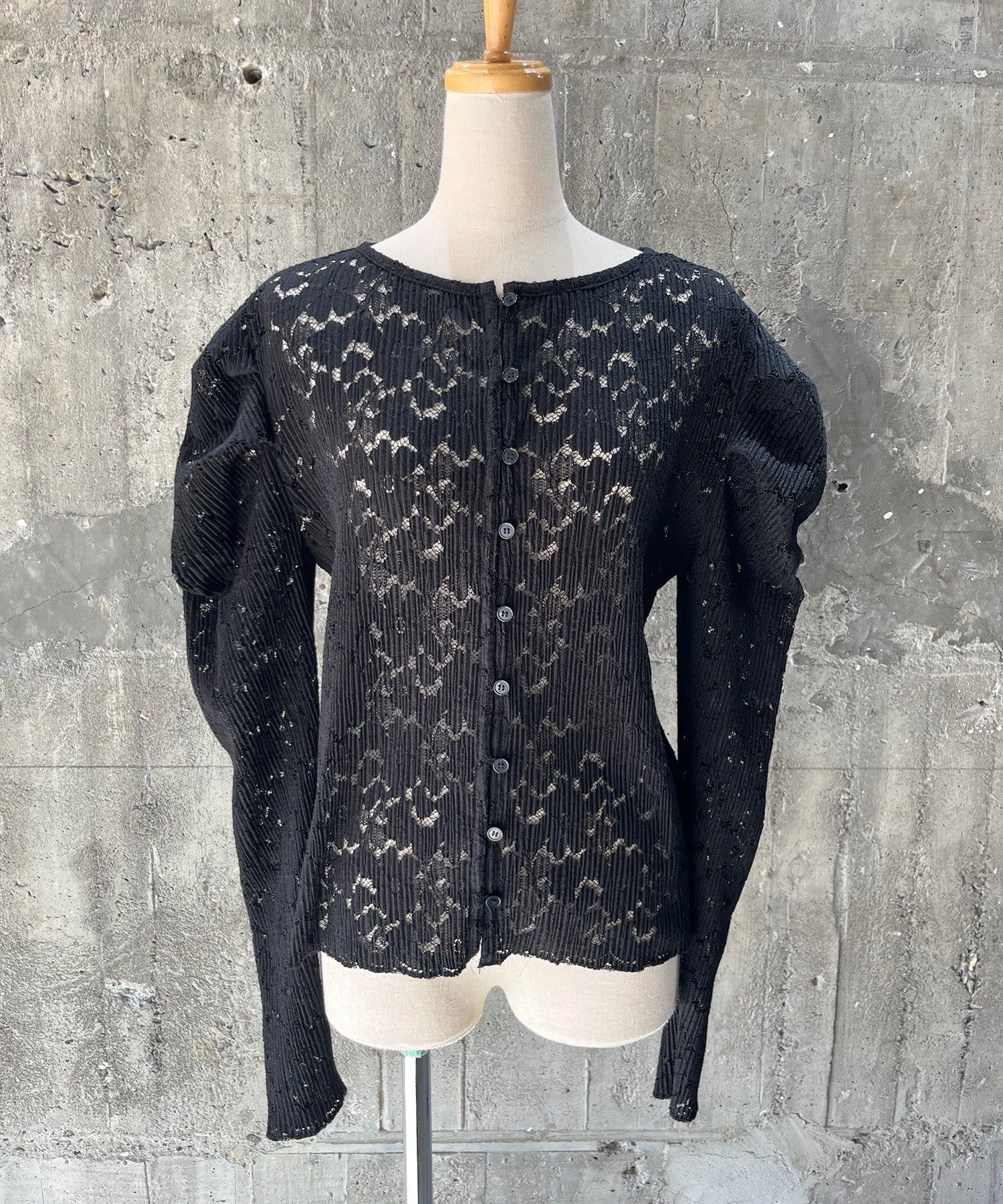 袖にシャーリングゴムの入ったジゴスリーブデザインのレーストップス。肩のパフシルエットが特徴的な1着です。