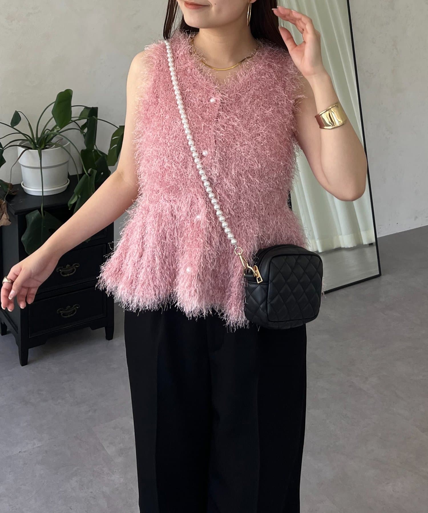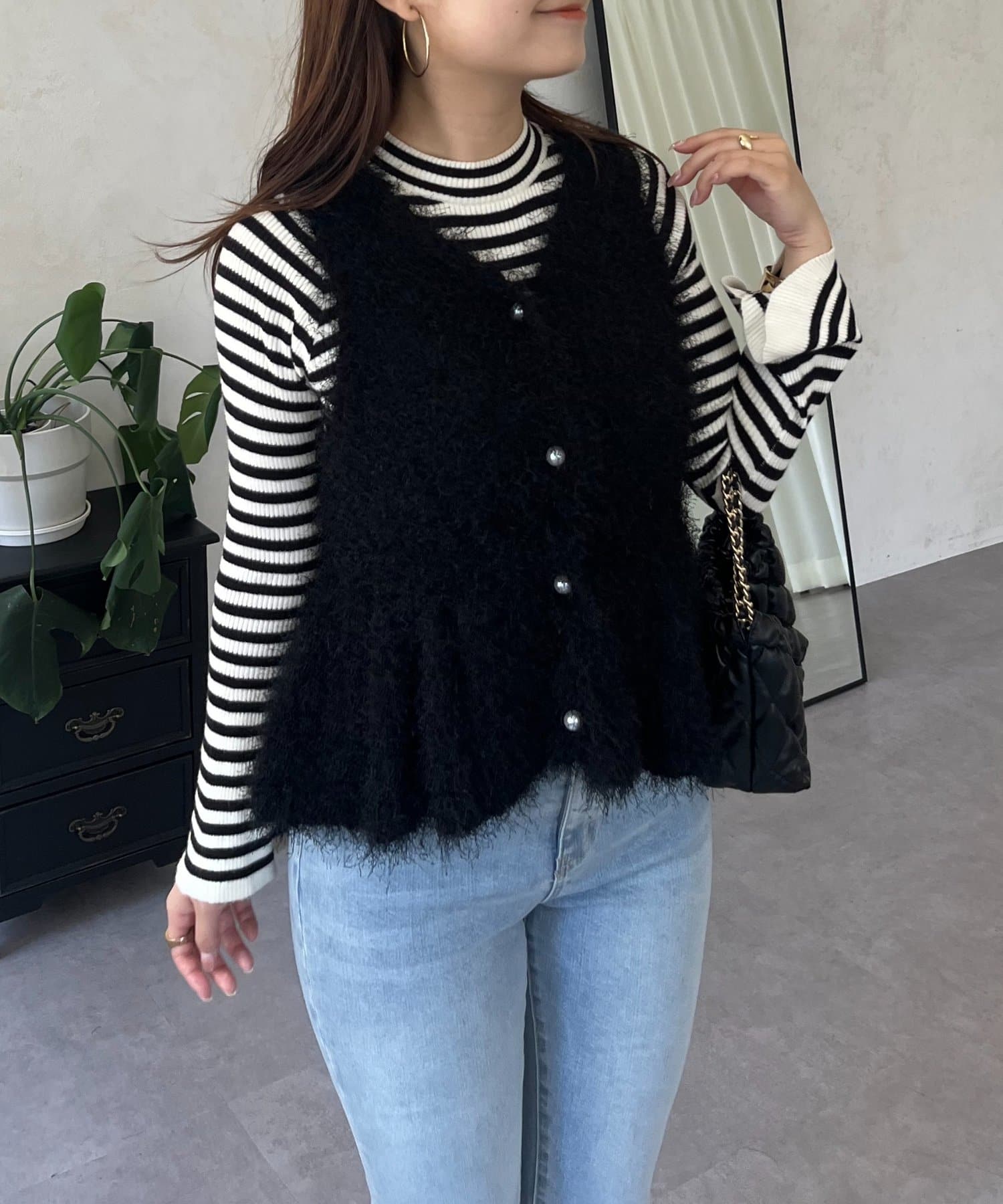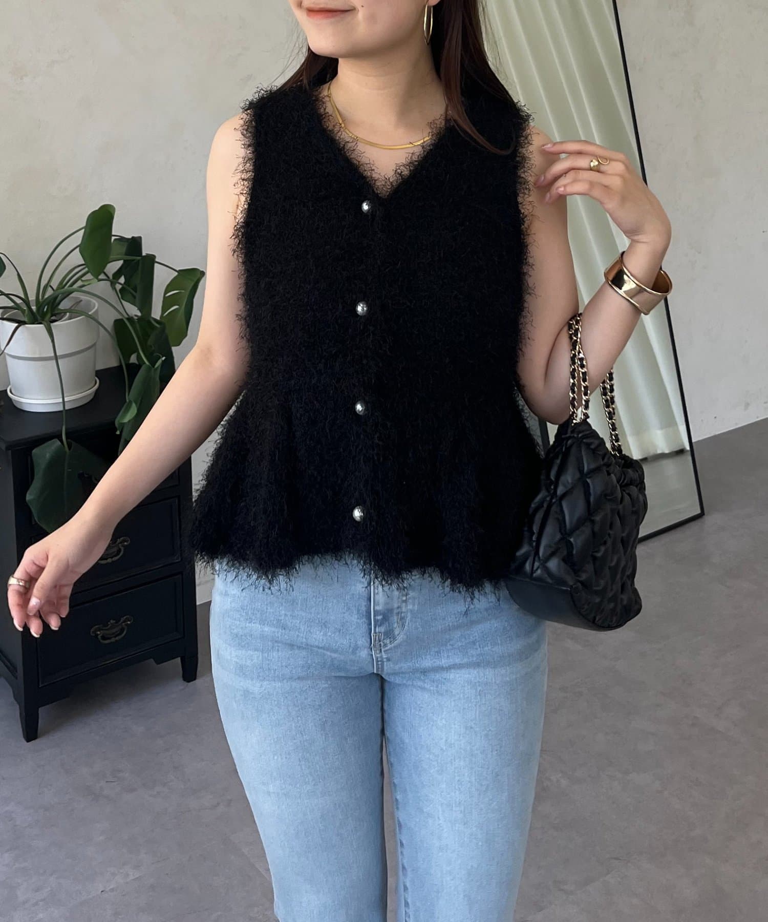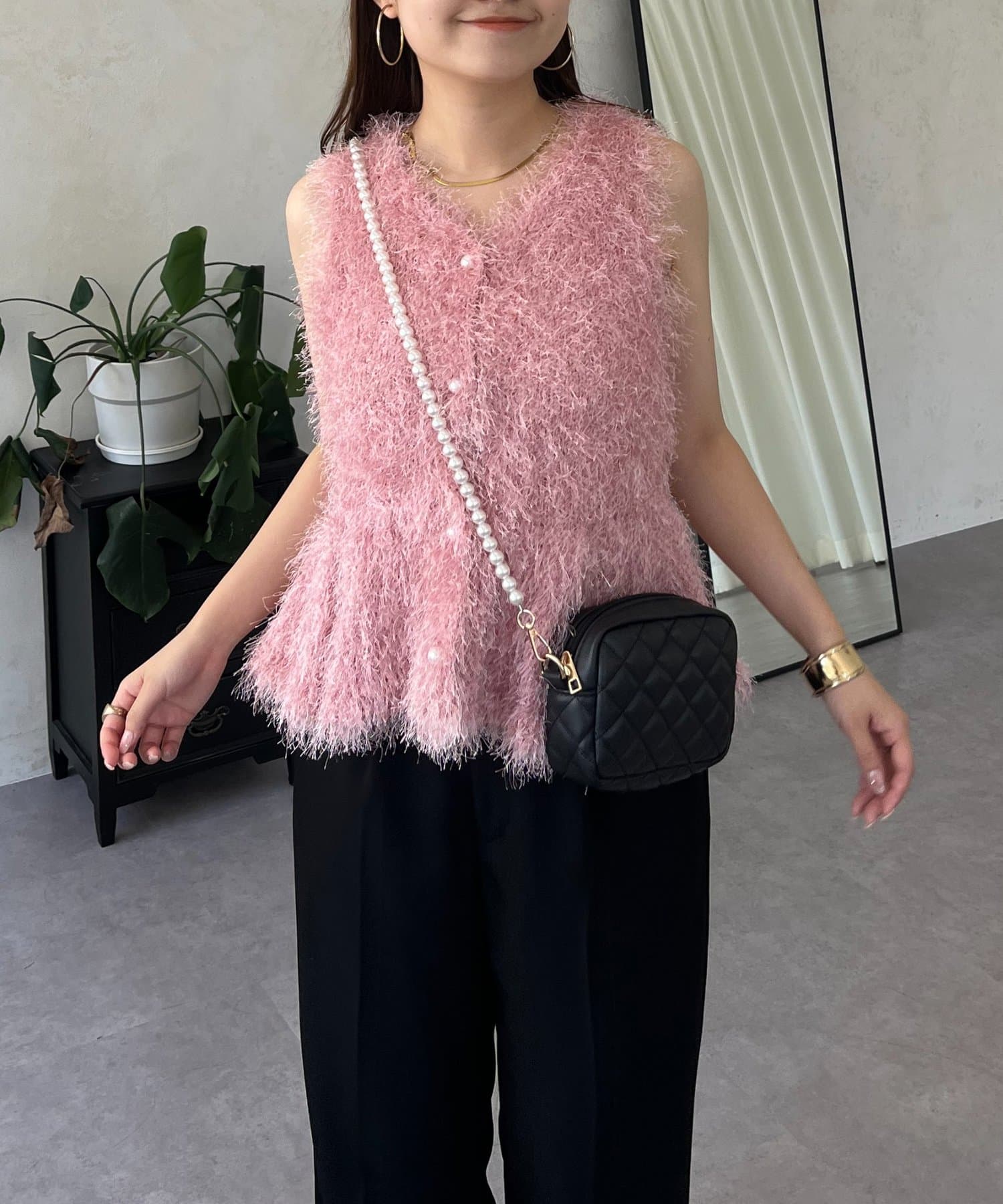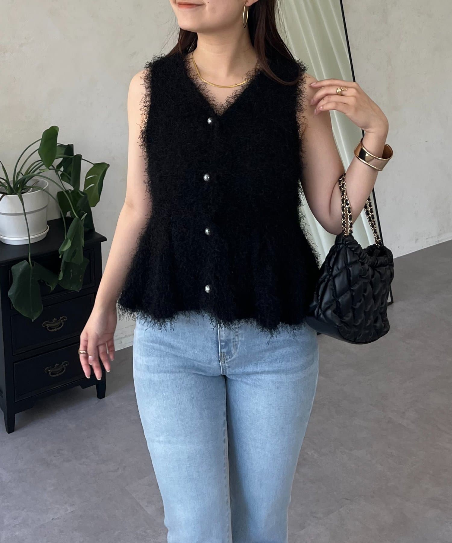• prose verse(プロズヴェール) パールボタンペプラムシャギーニットベスト