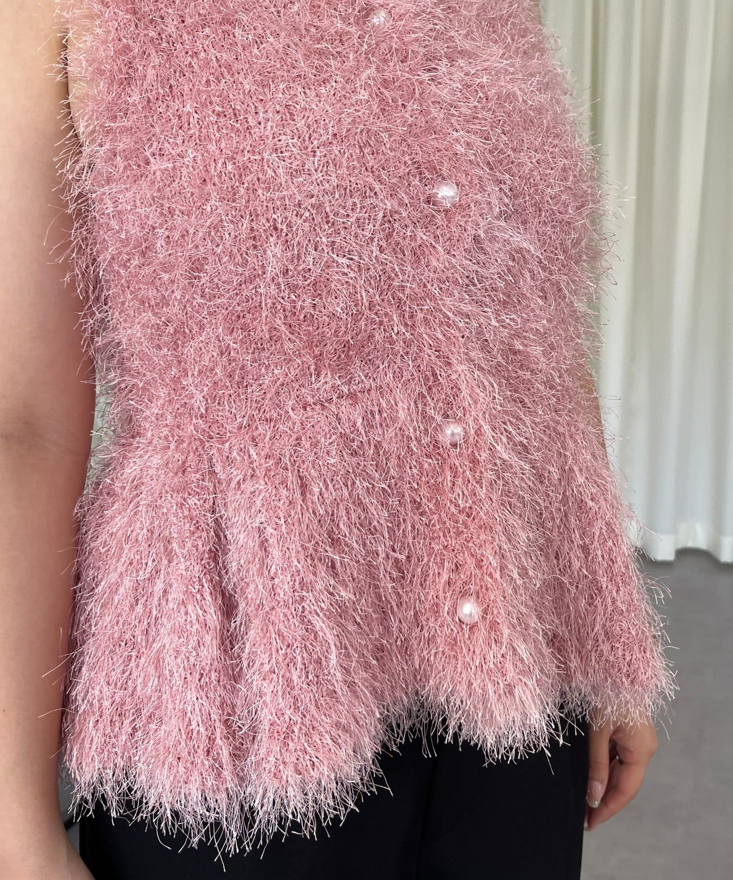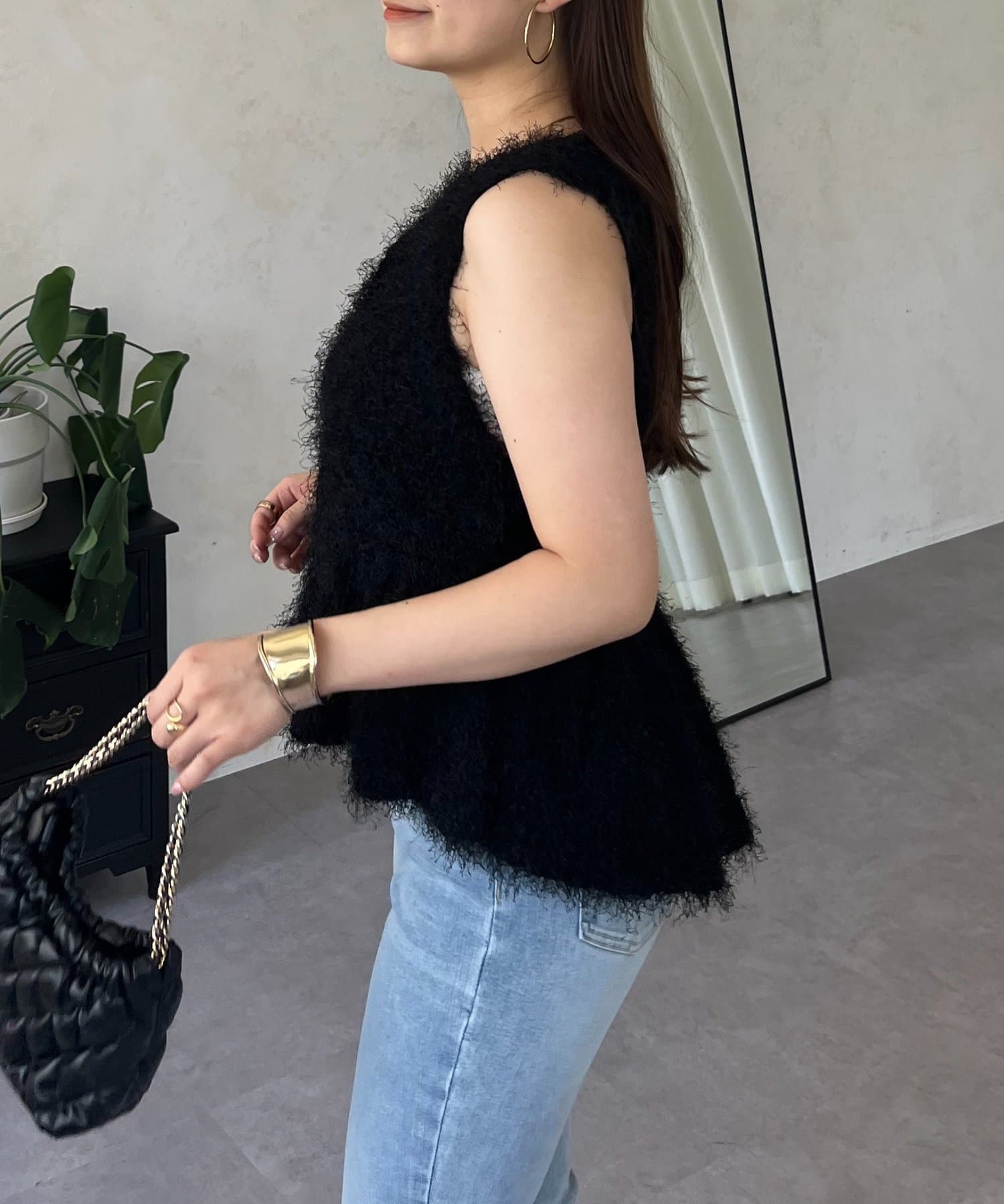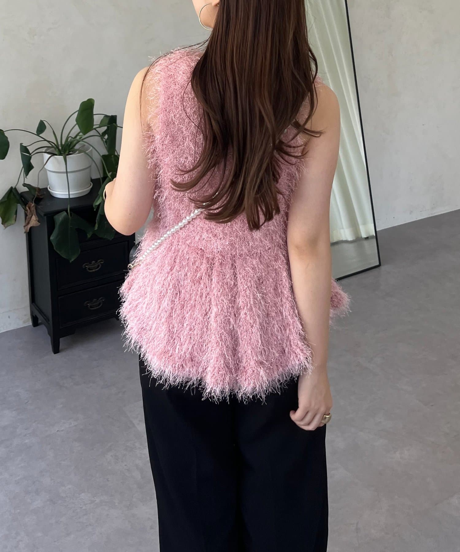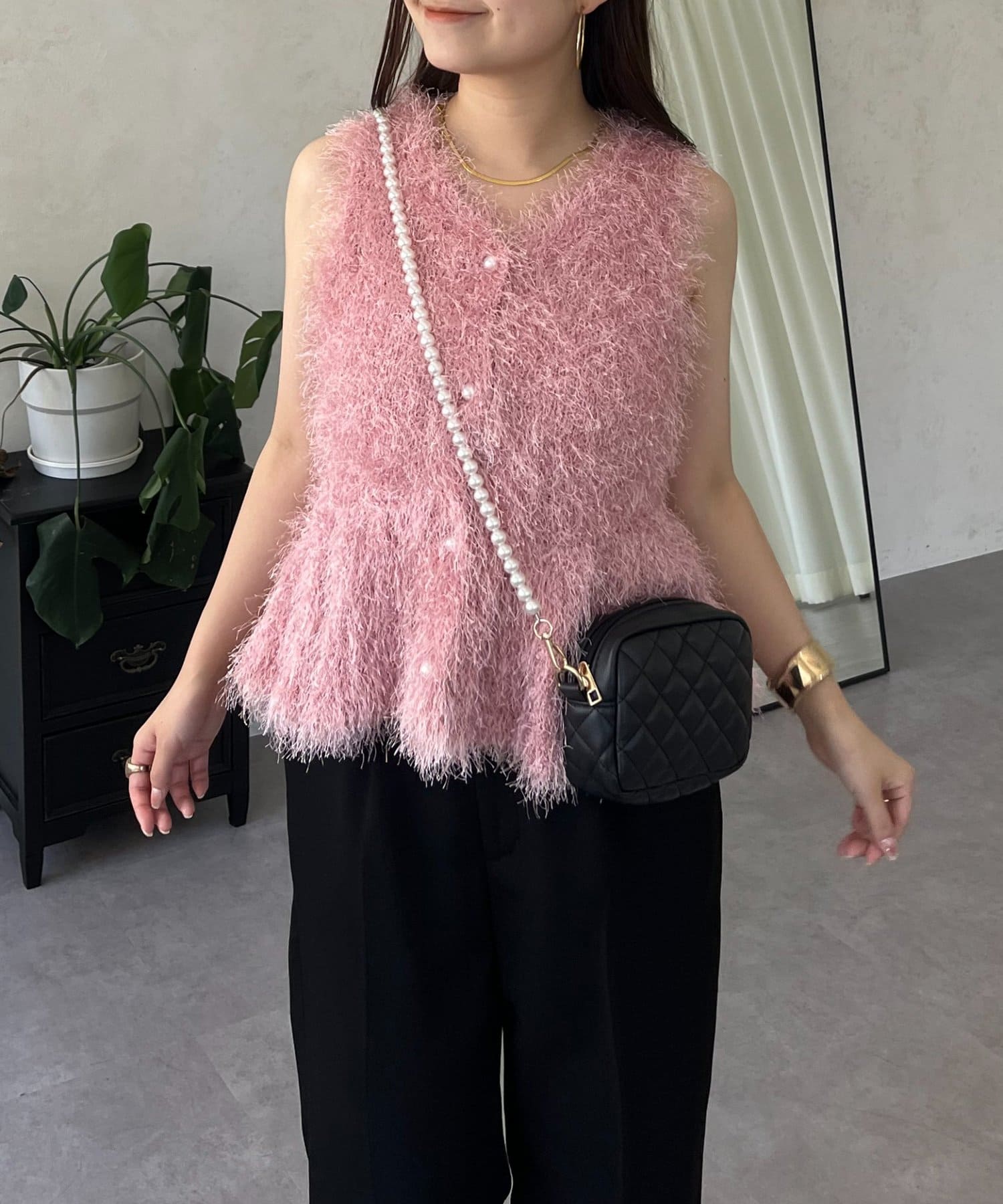 • prose verse(プロズヴェール) パールボタンペプラムシャギーニットベスト