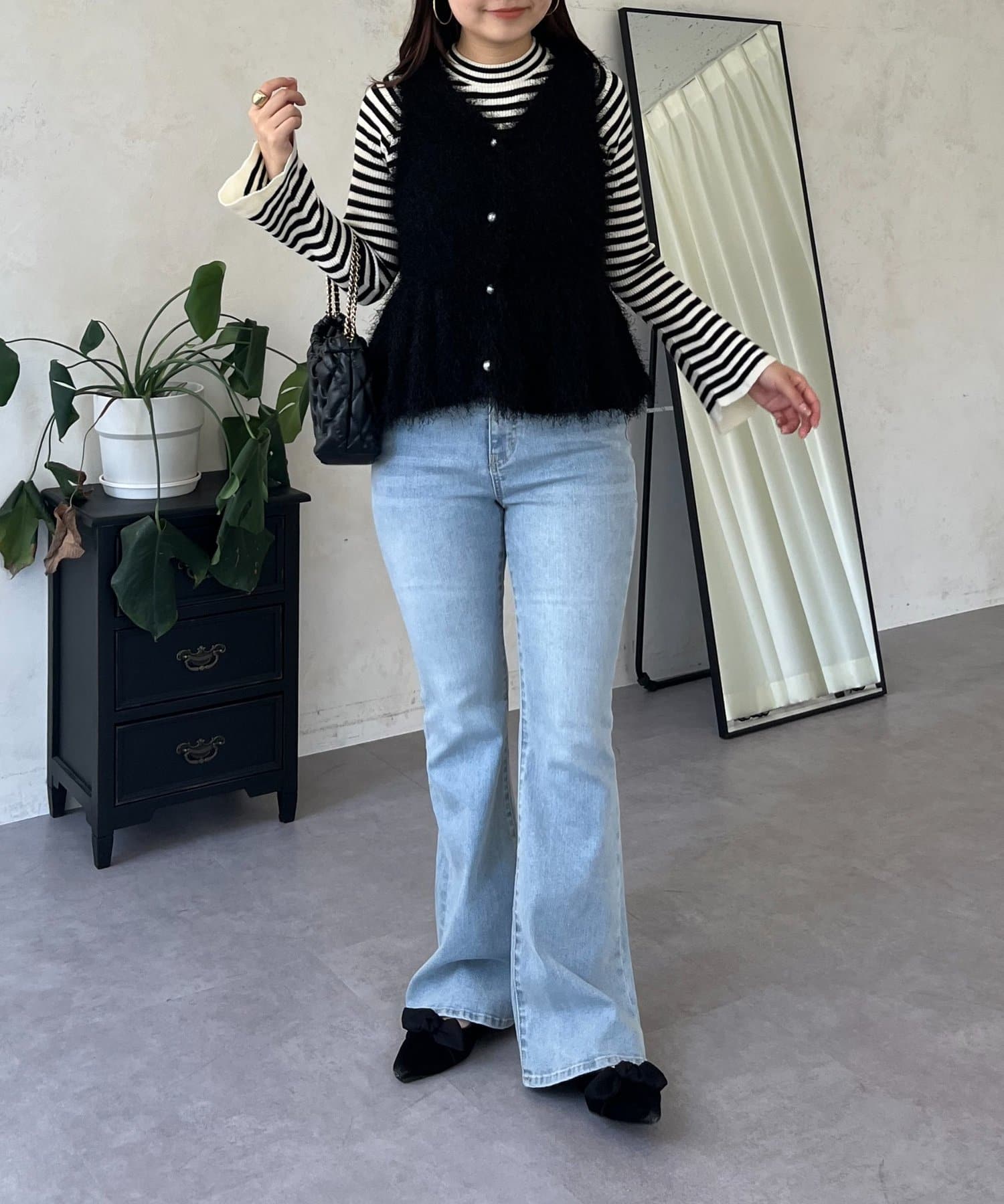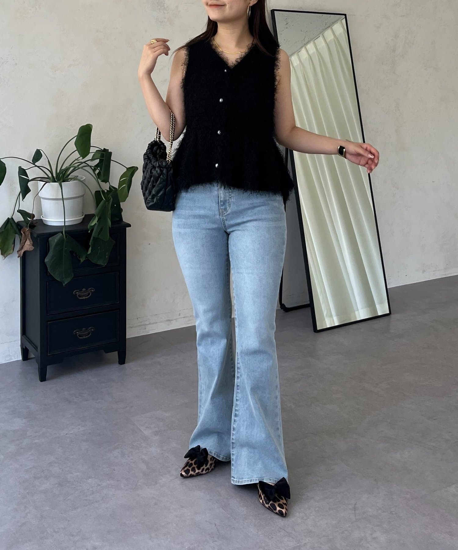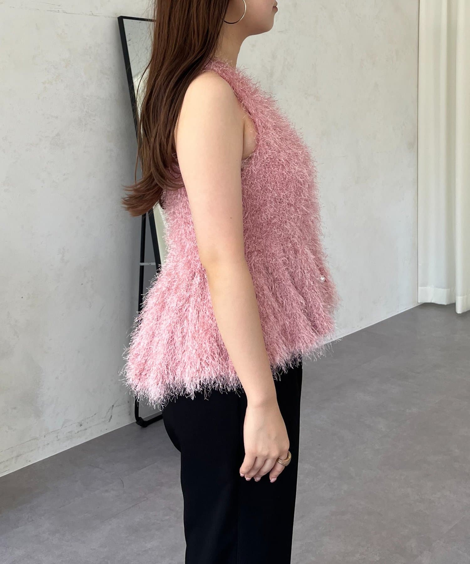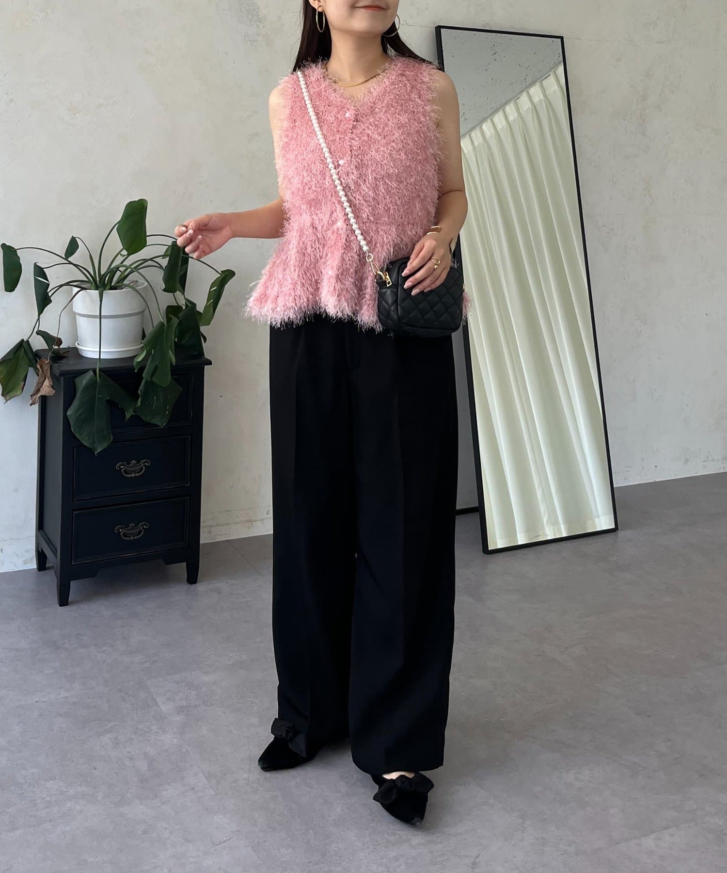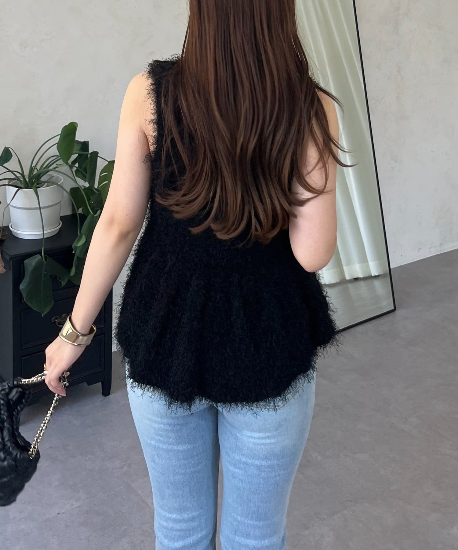 • prose verse(プロズヴェール) パールボタンペプラムシャギーニットベスト