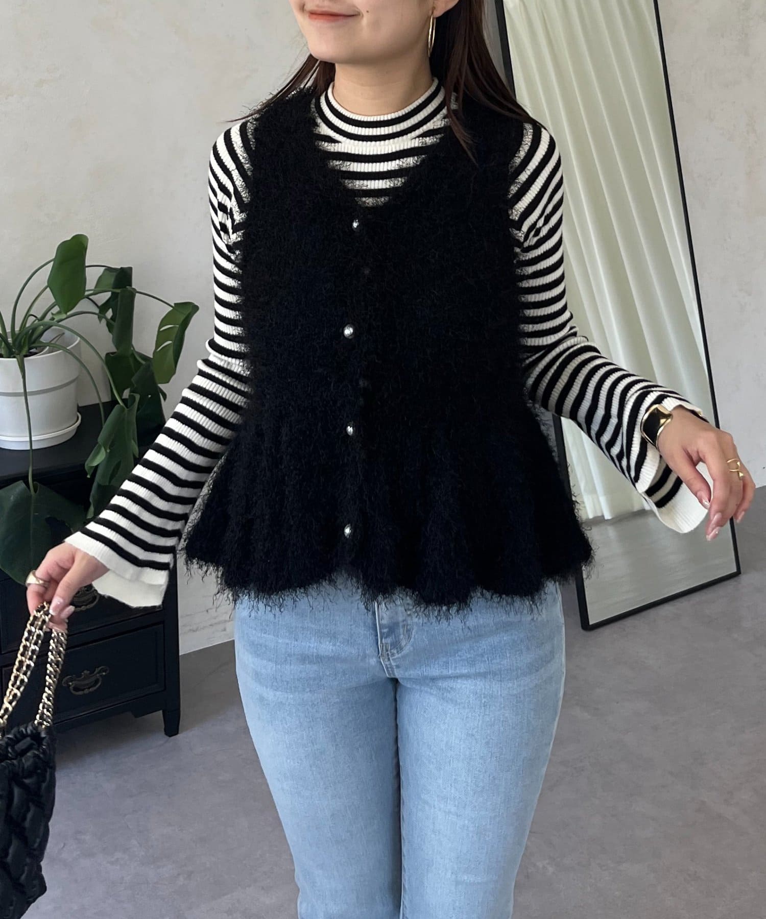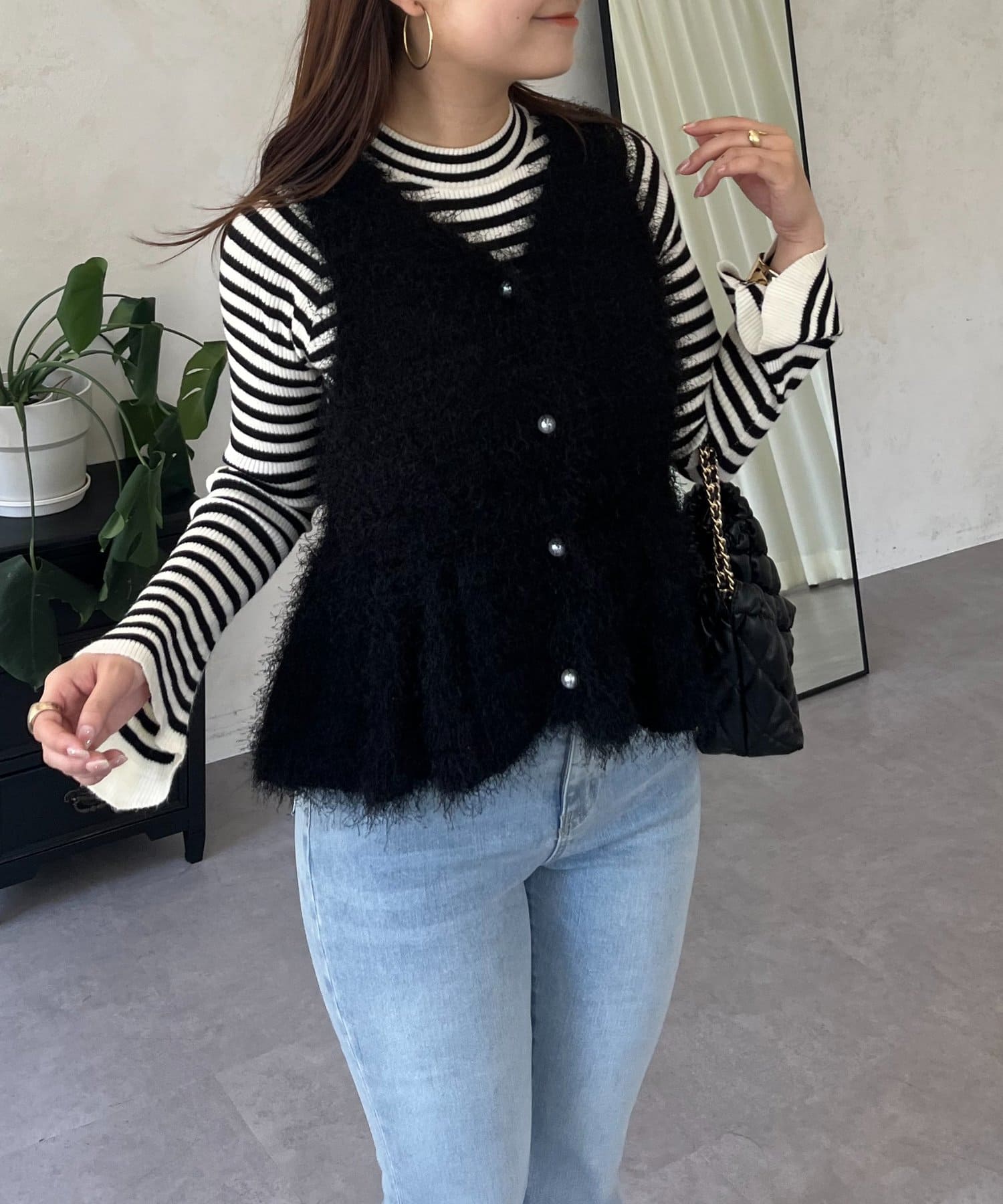 prose verse(プロズヴェール) パールボタンペプラムシャギーニットベスト