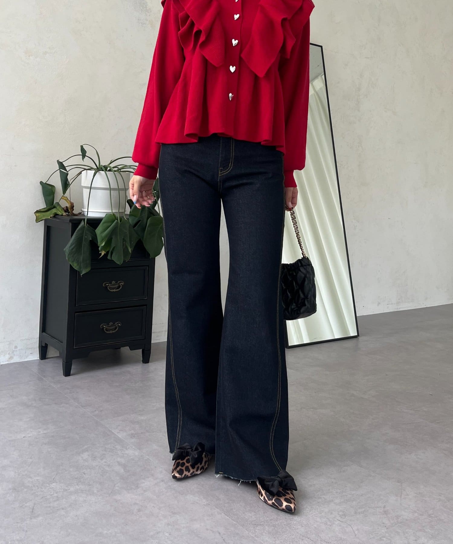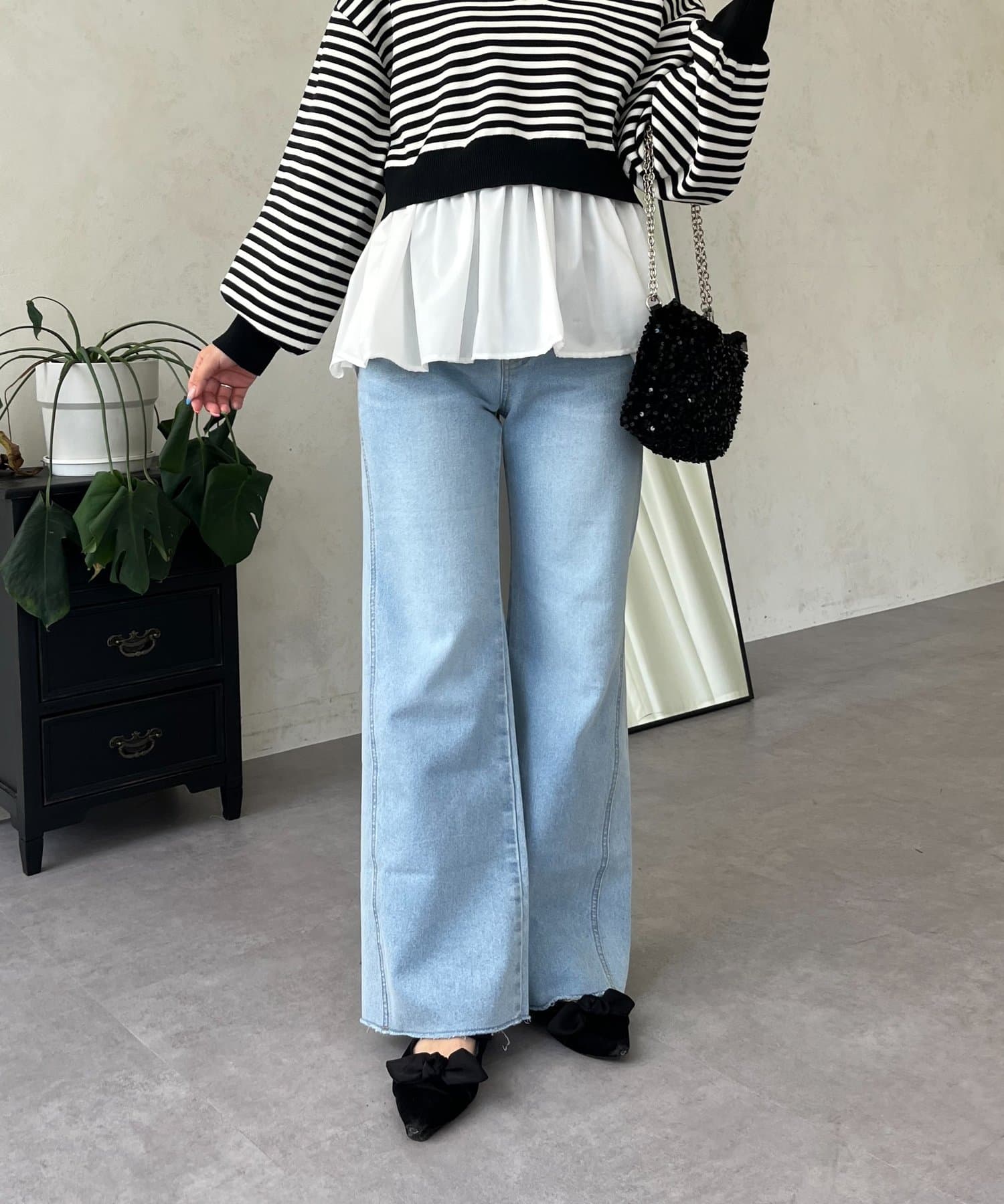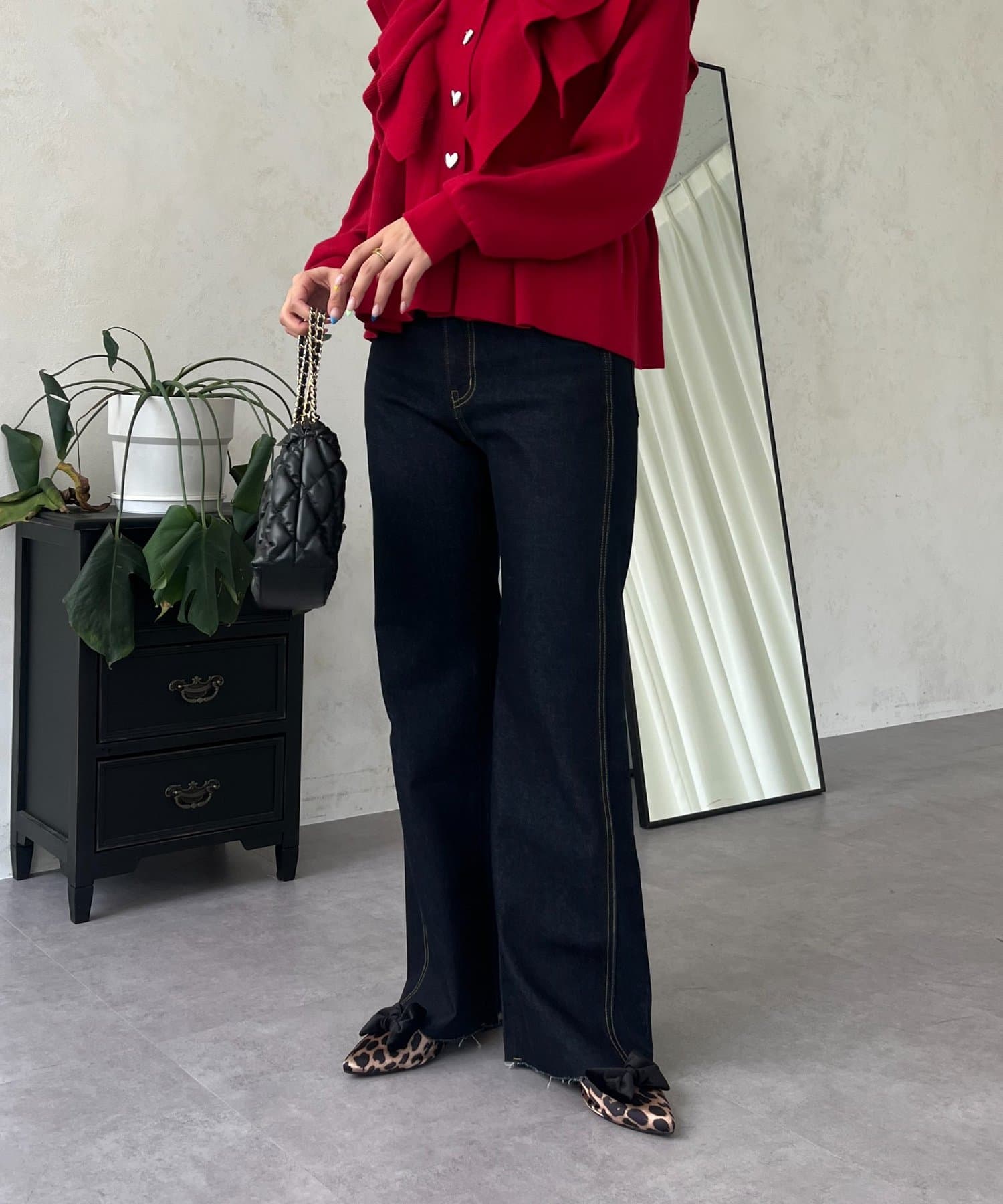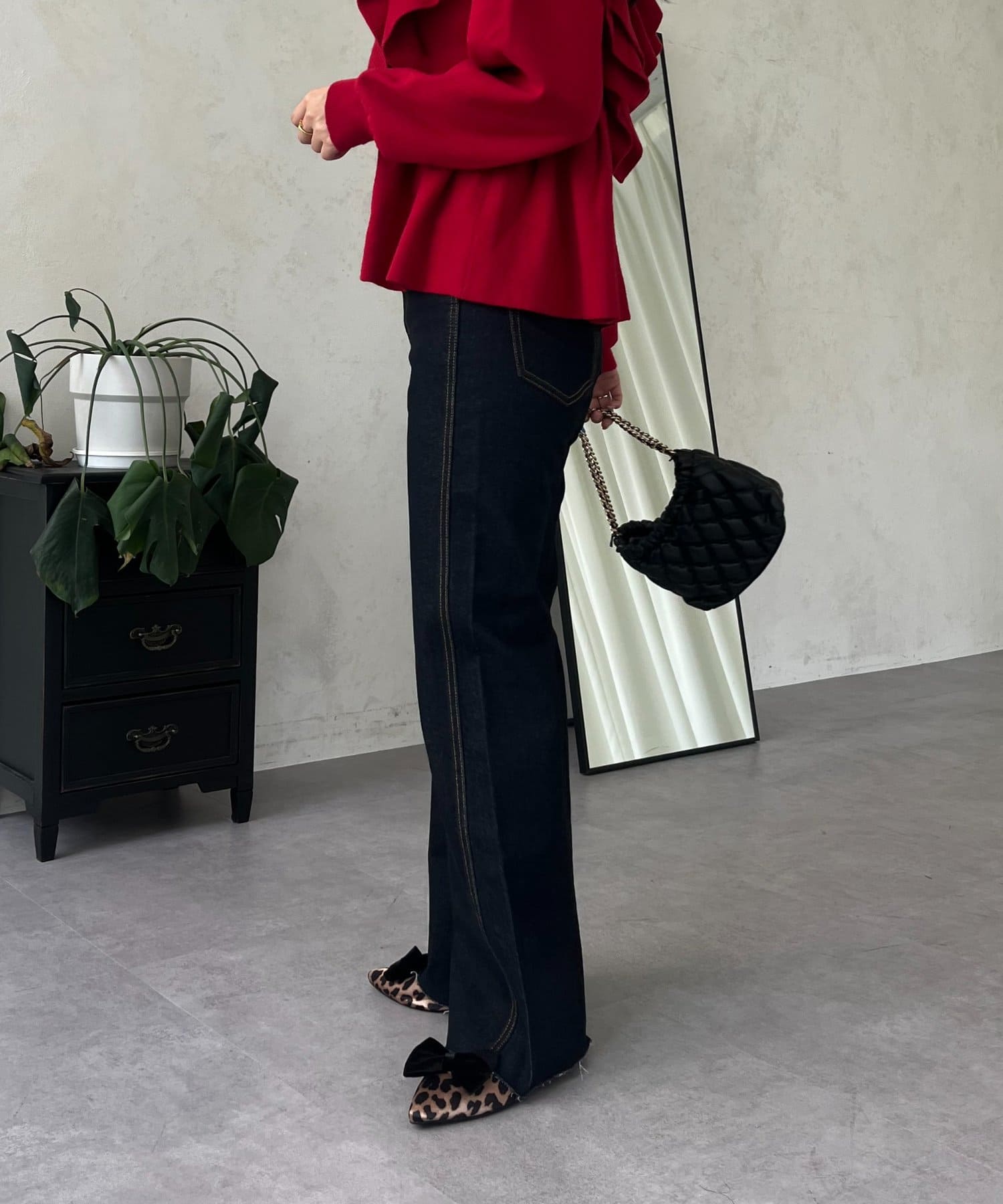 ●深めのセミフレアが脚長に見せてくれる効果も◎