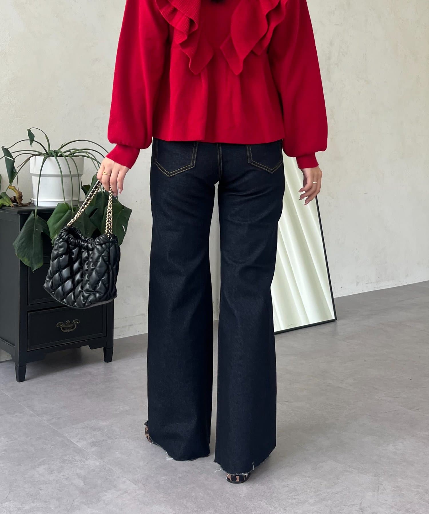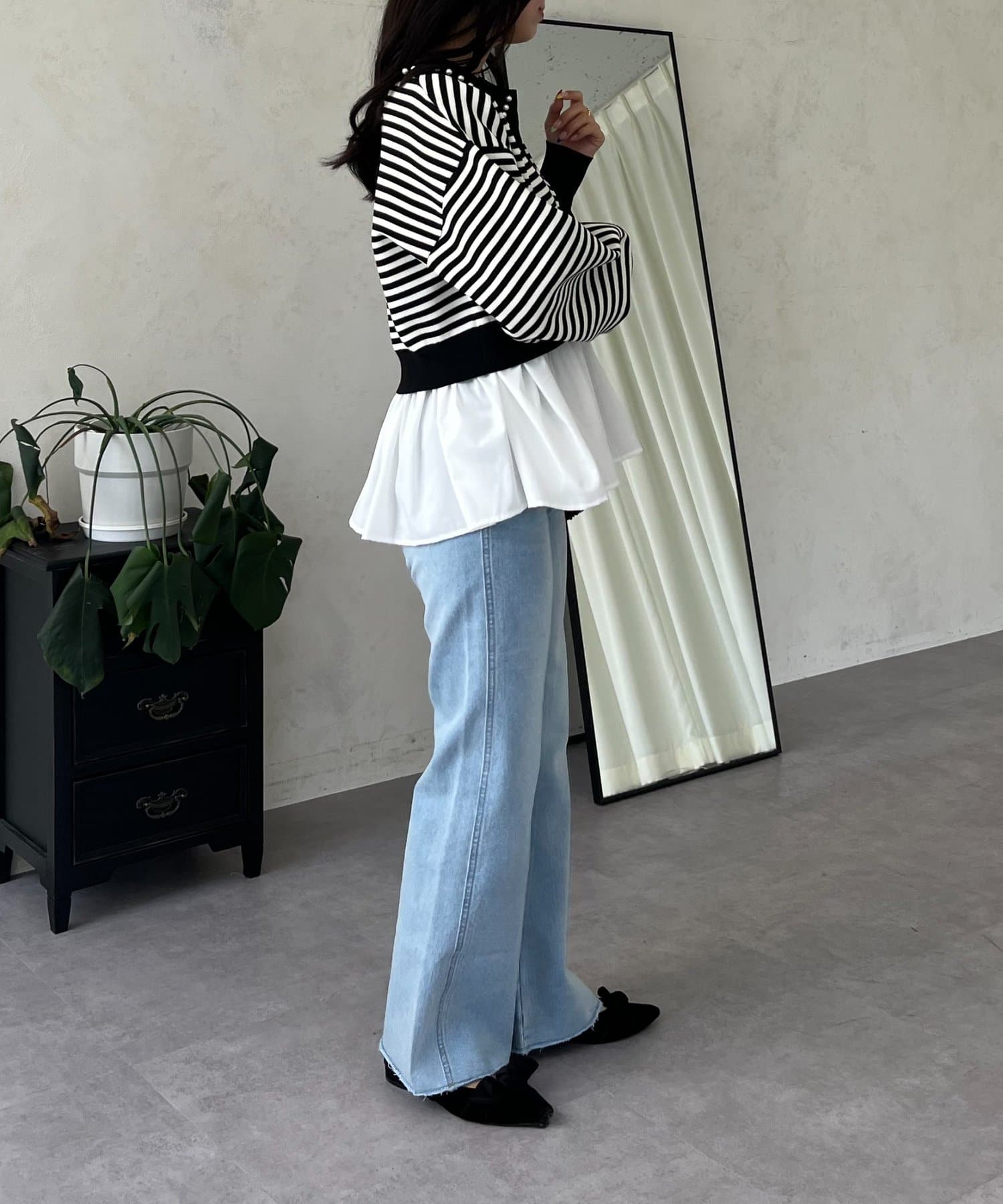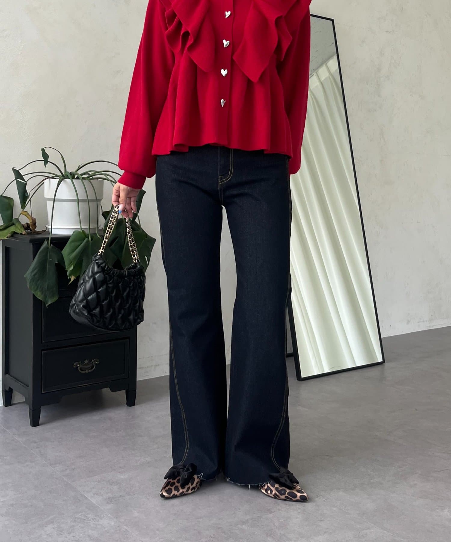 ●深めのセミフレアが脚長に見せてくれる効果も◎
