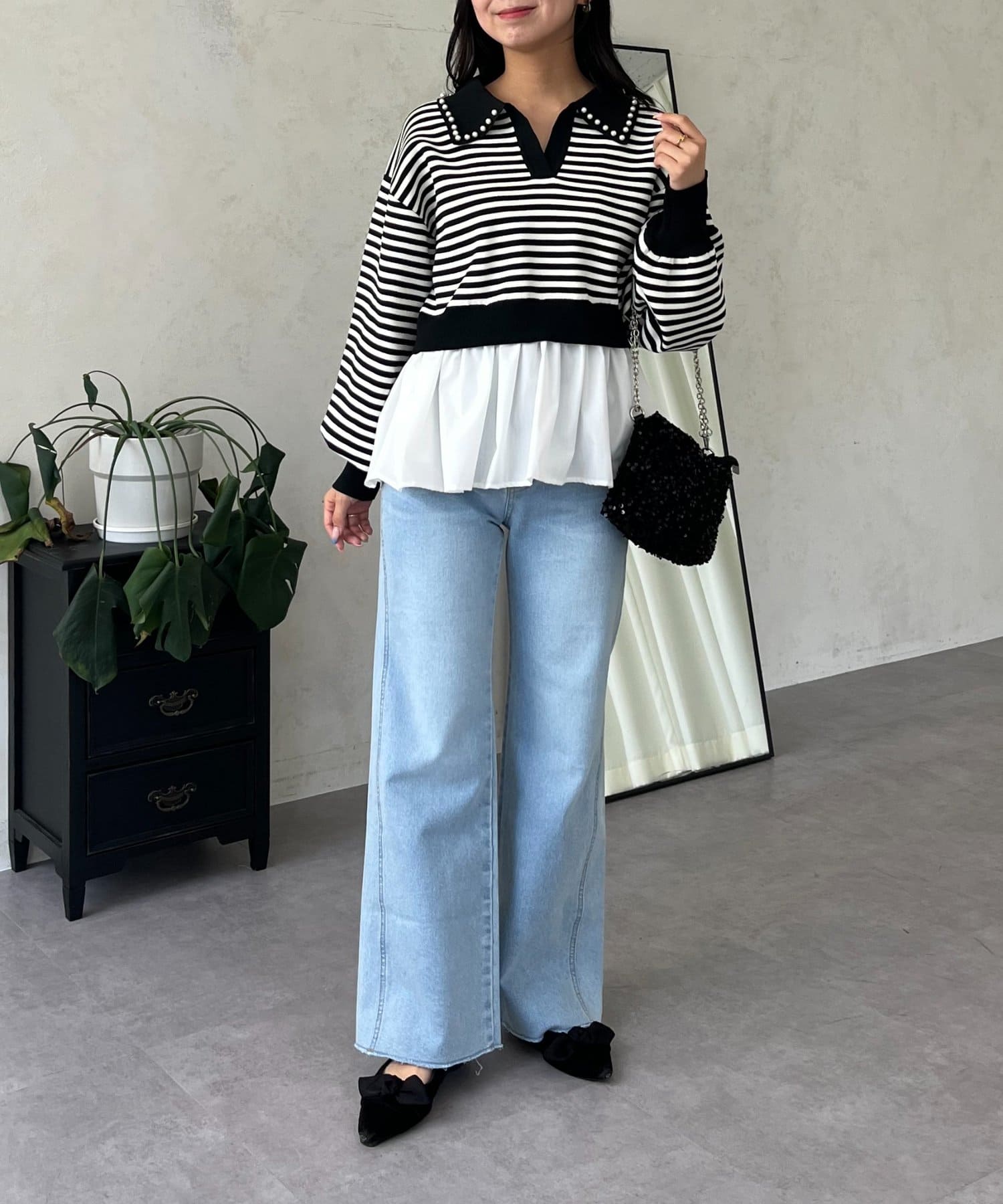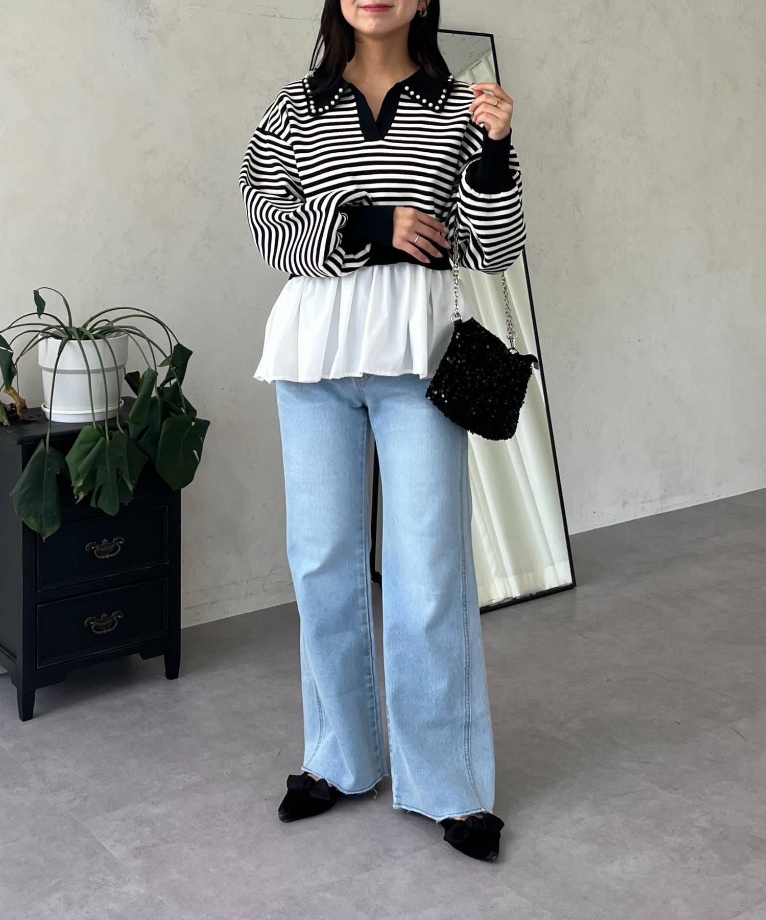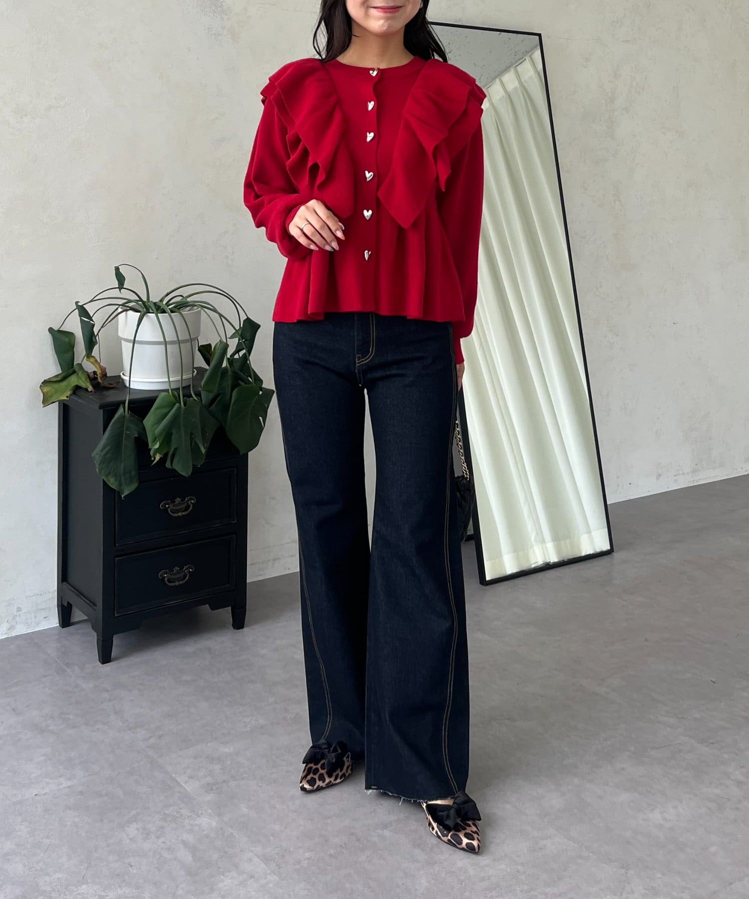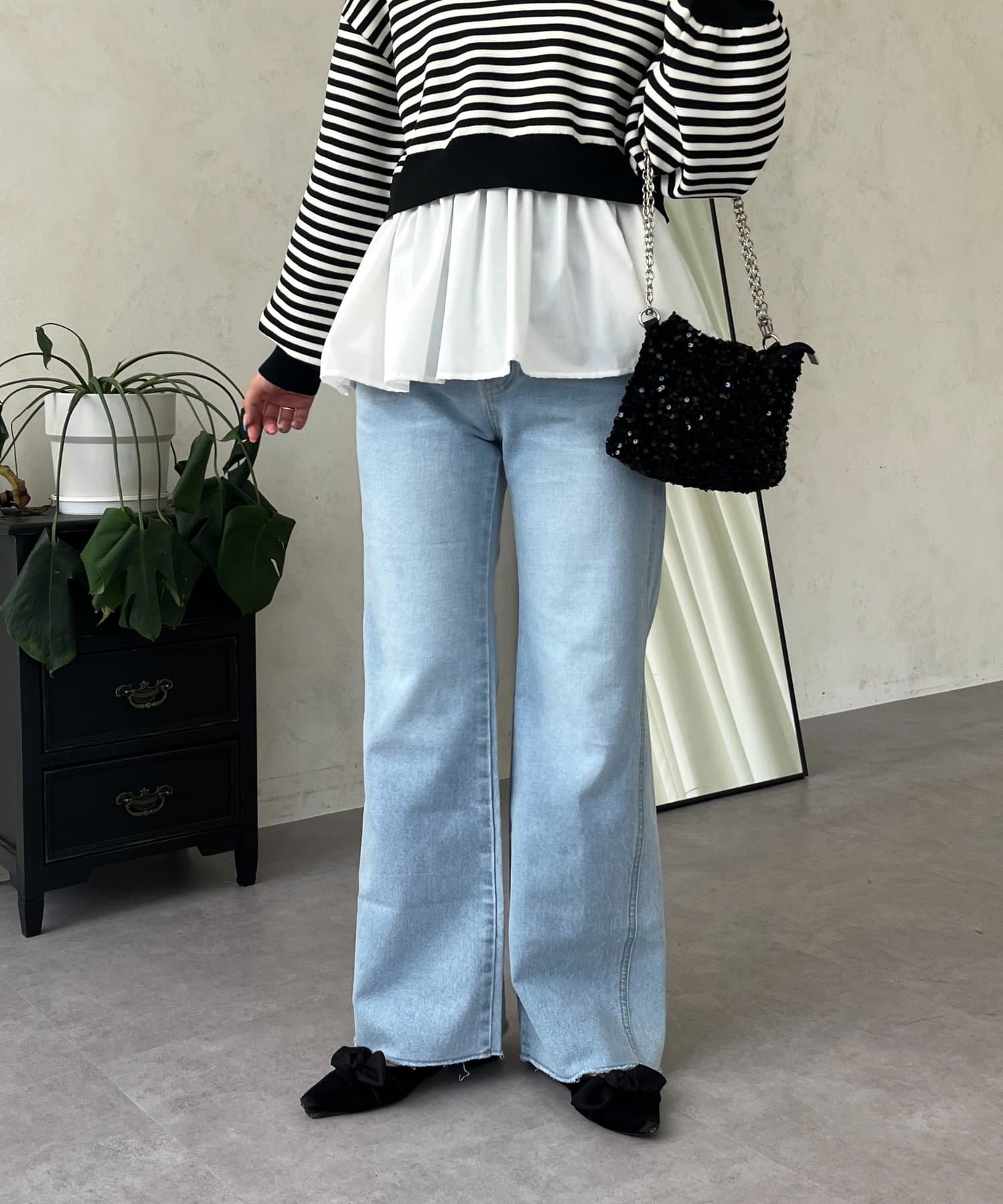 ●深めのセミフレアが脚長に見せてくれる効果も◎