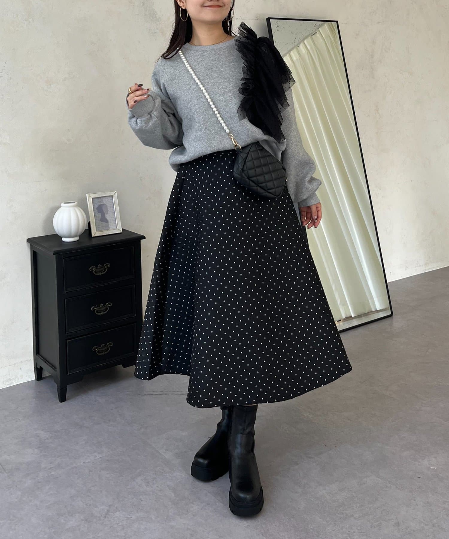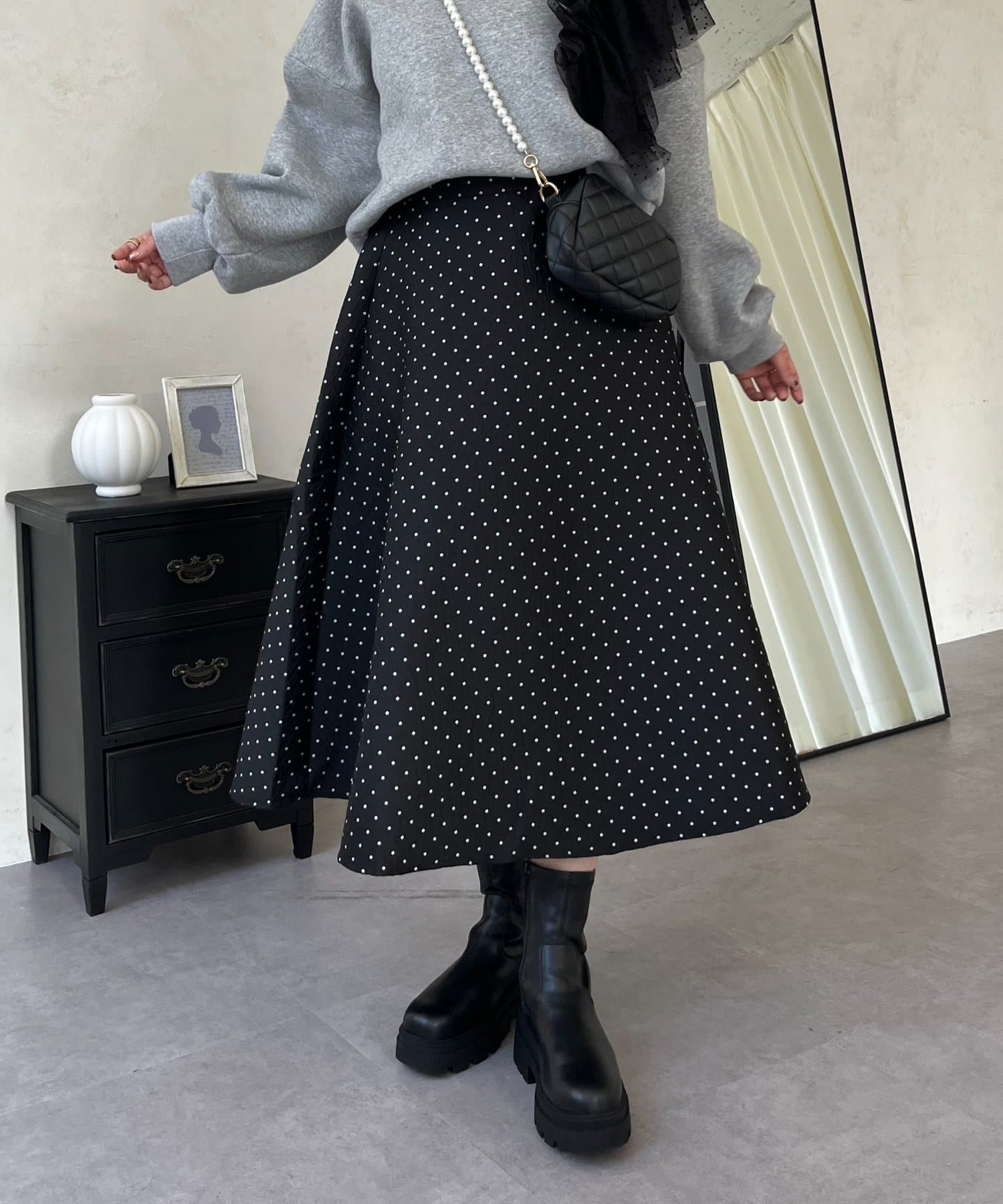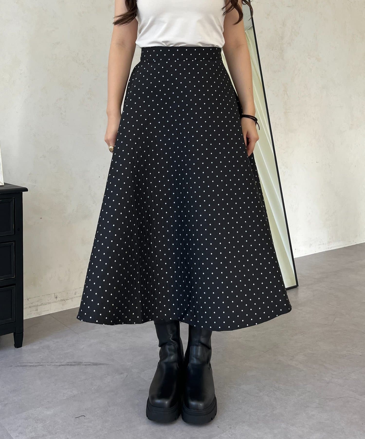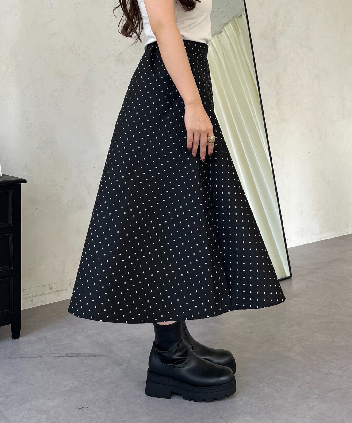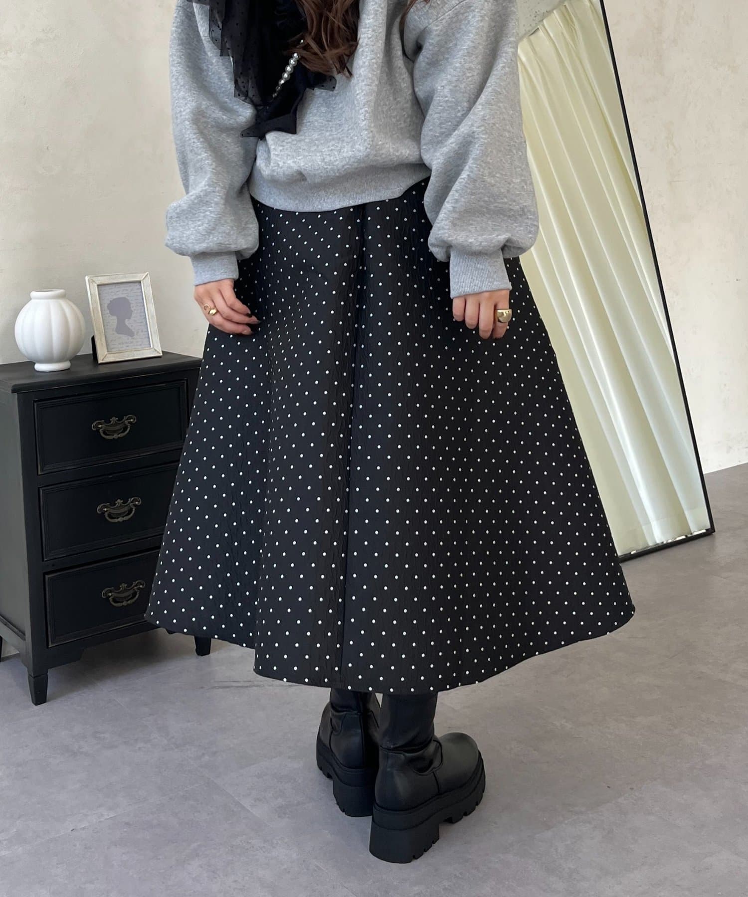 コーデのアクセントになるドットスカート