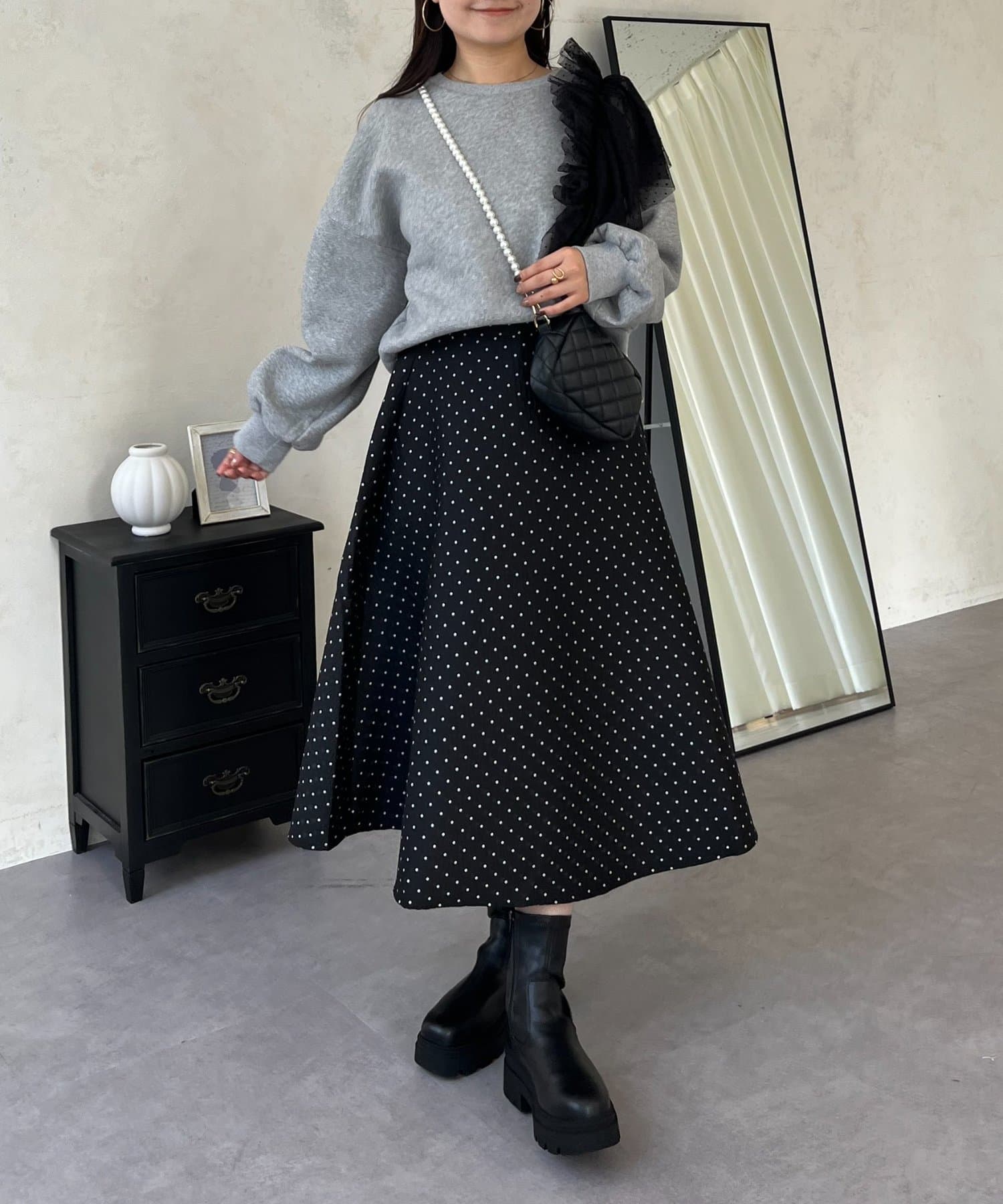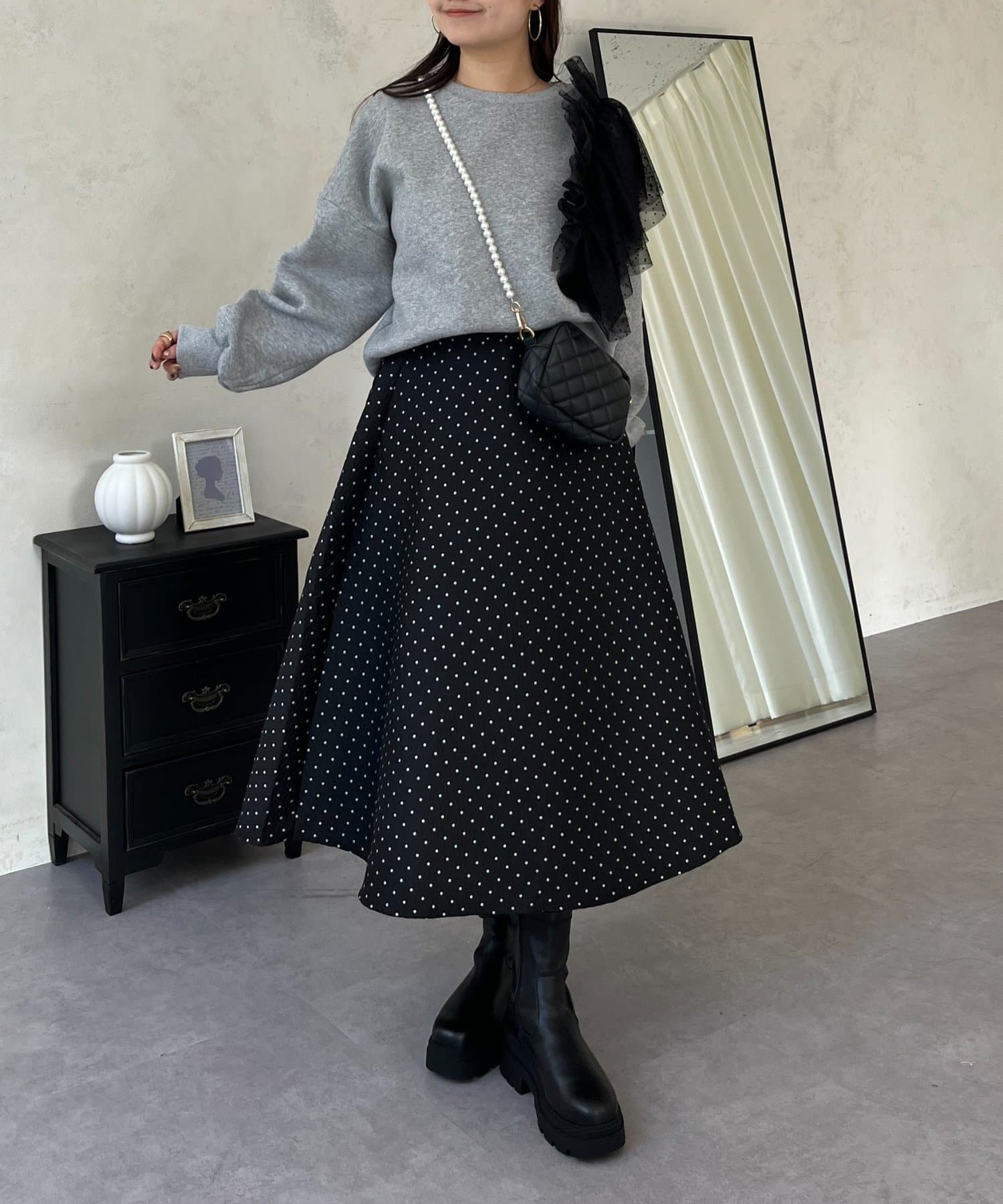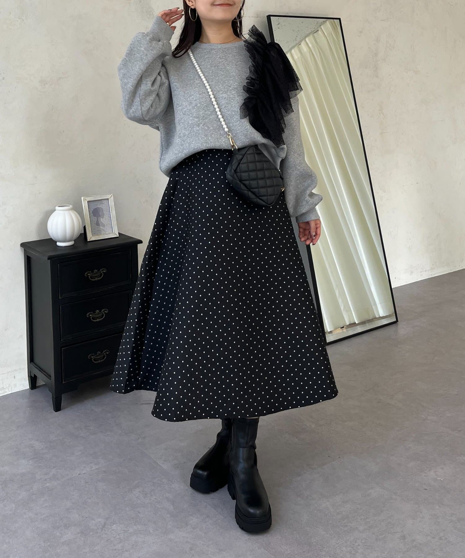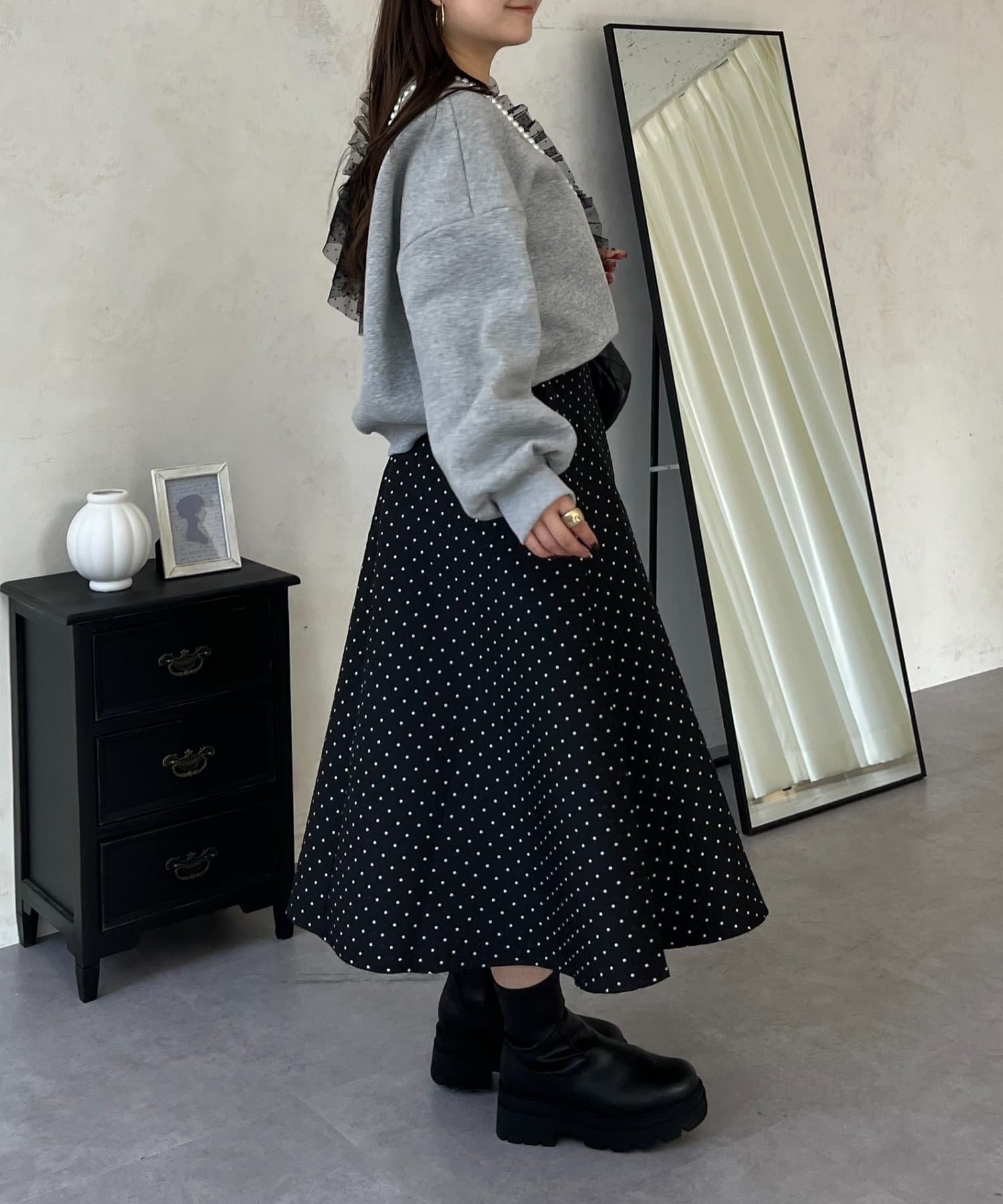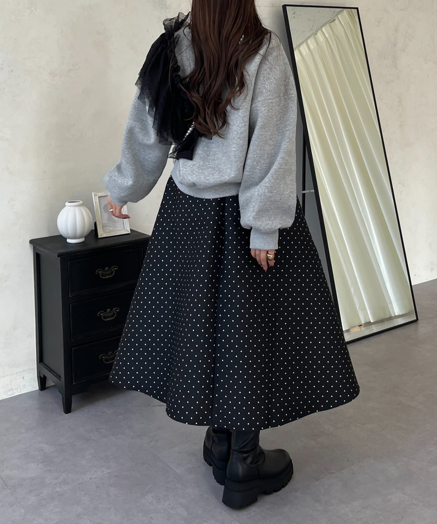 コーデのアクセントになるドットスカート