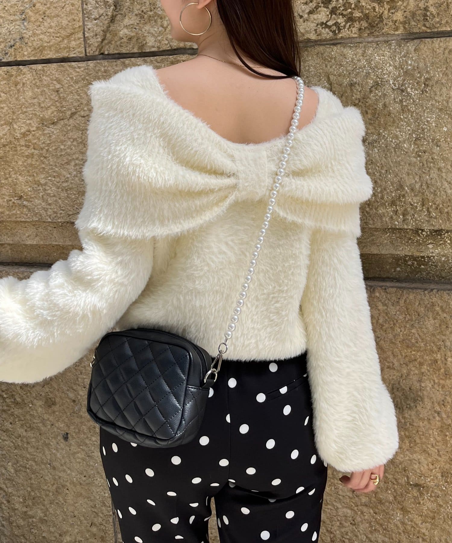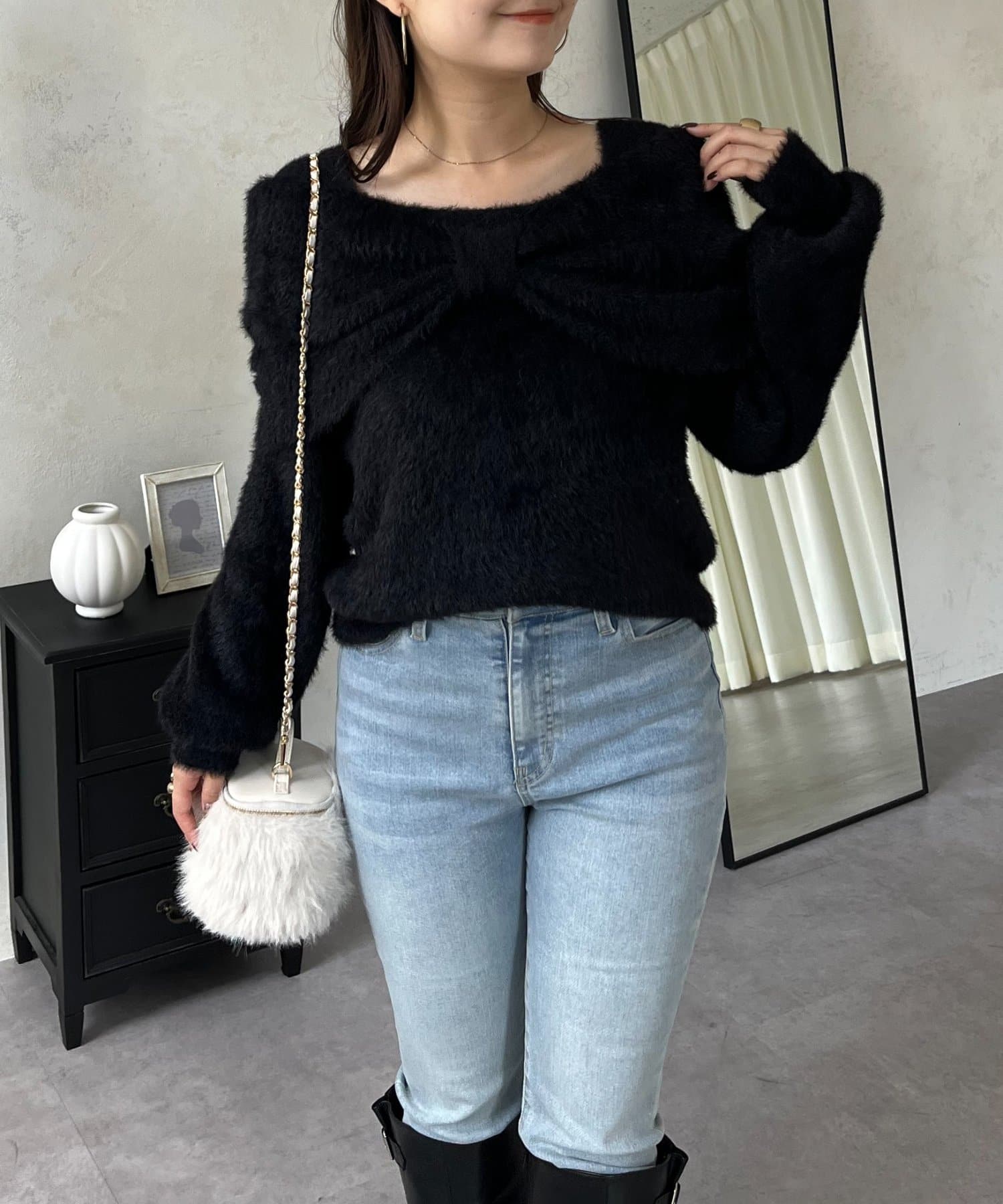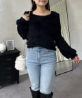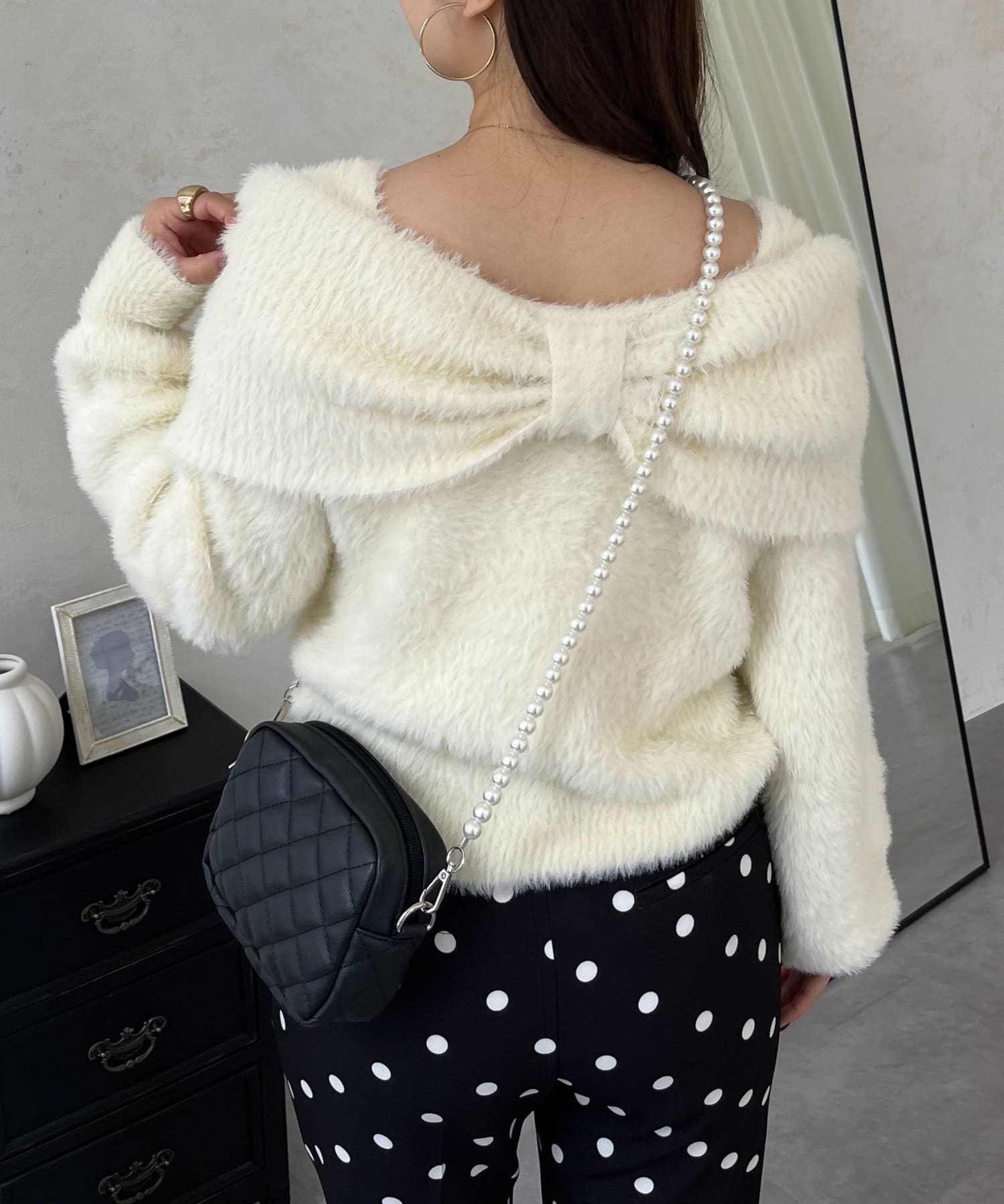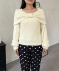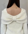 【前後2way】オフショルリボンシャギーニット