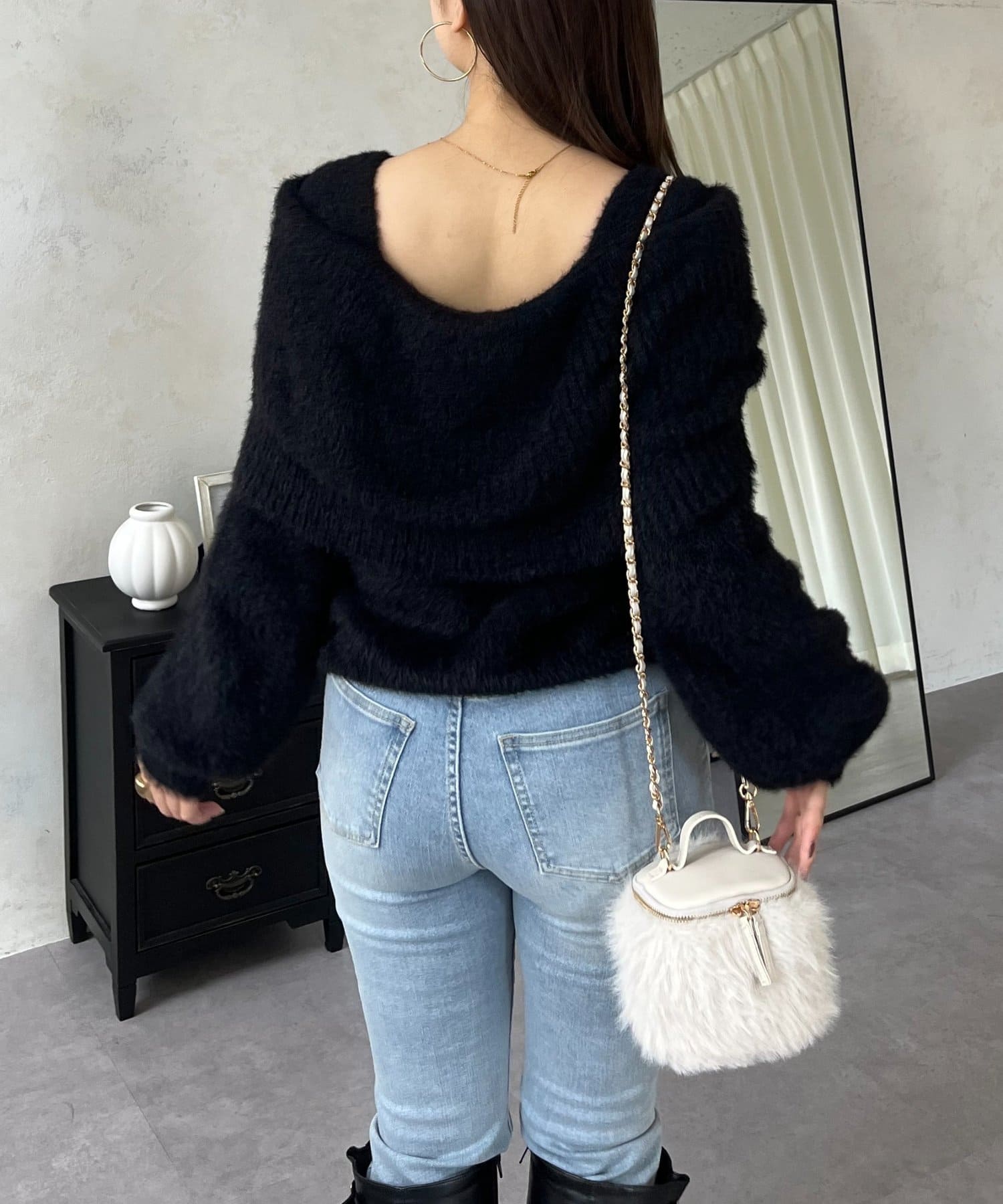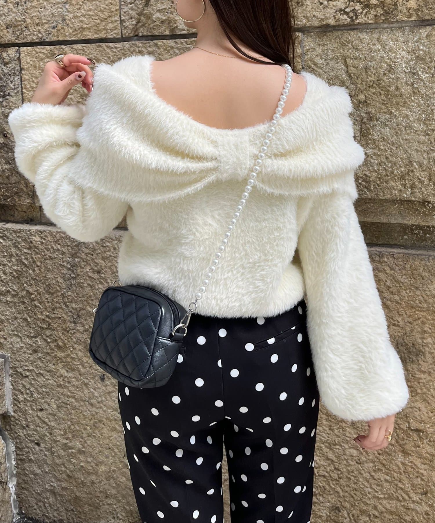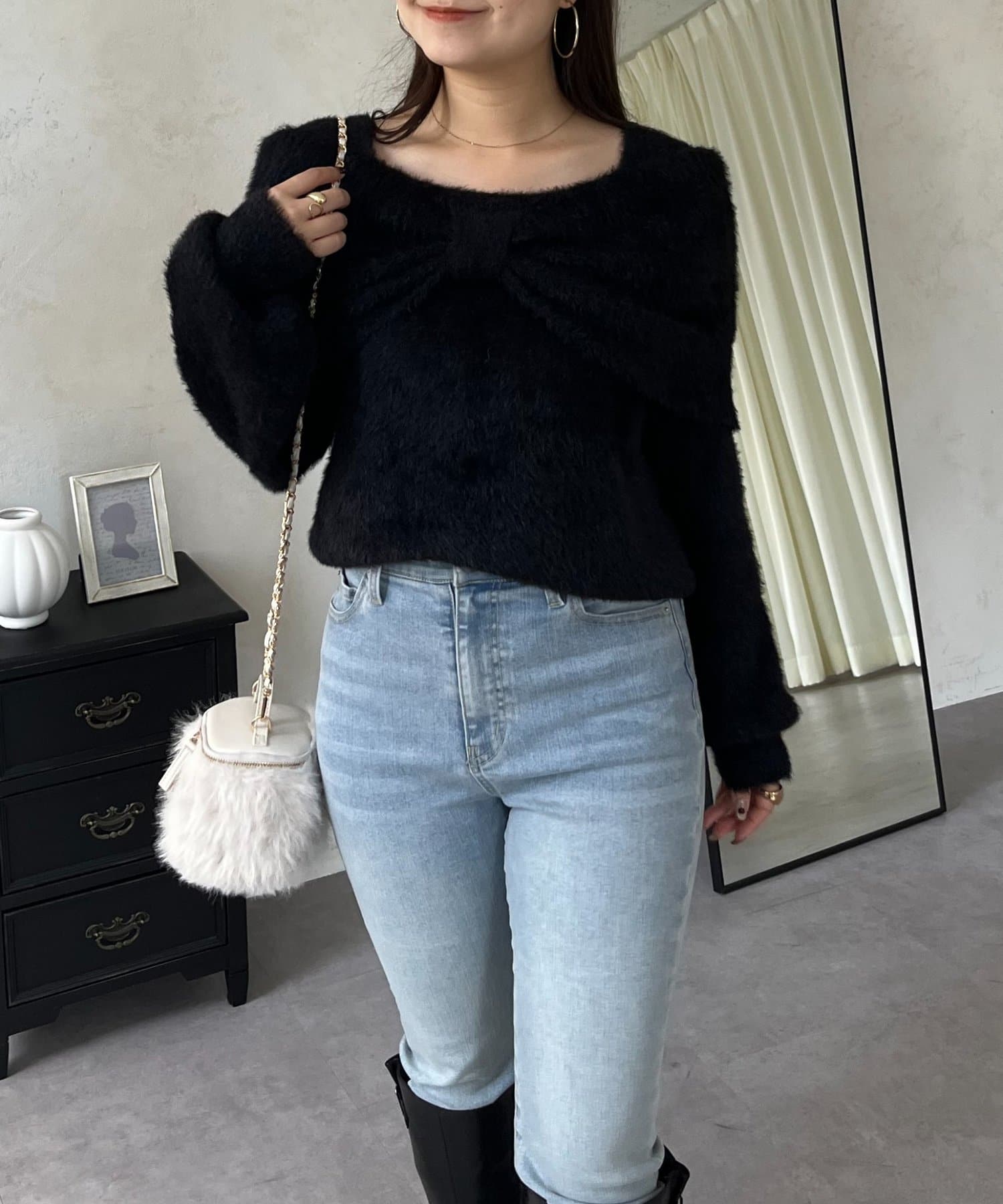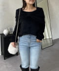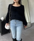 【前後2way】オフショルリボンシャギーニット