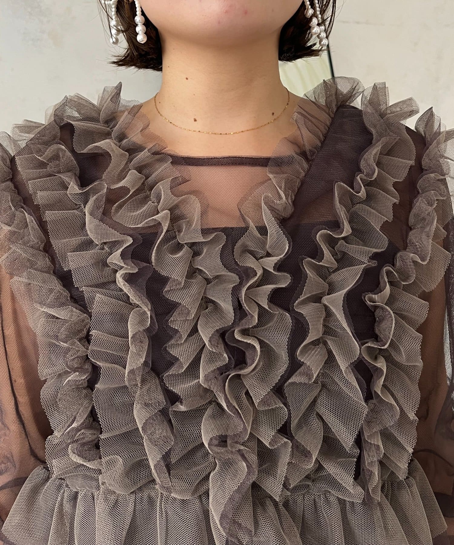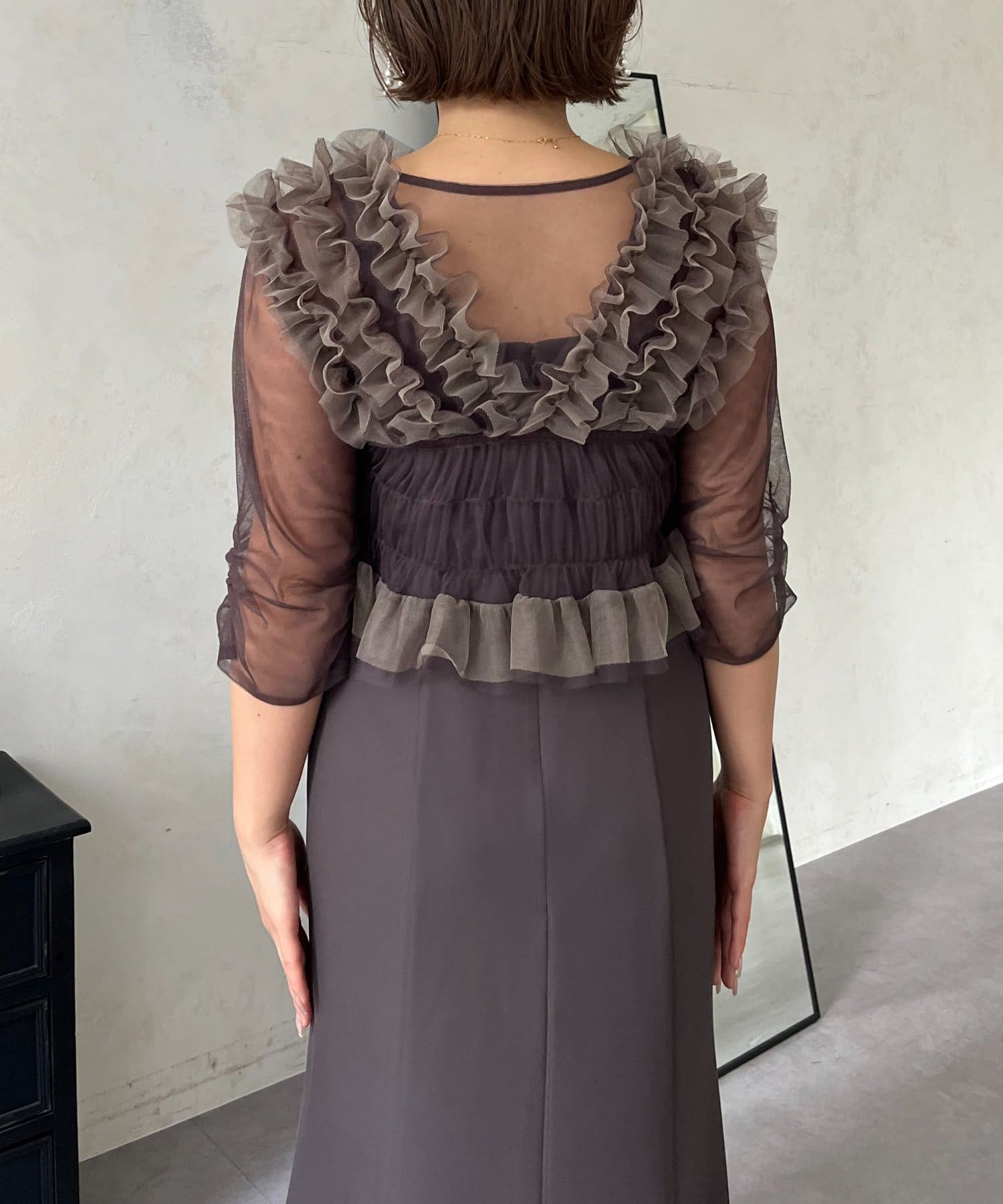 【MOMO】シアーフリルビスチェレイヤードキャミドレス