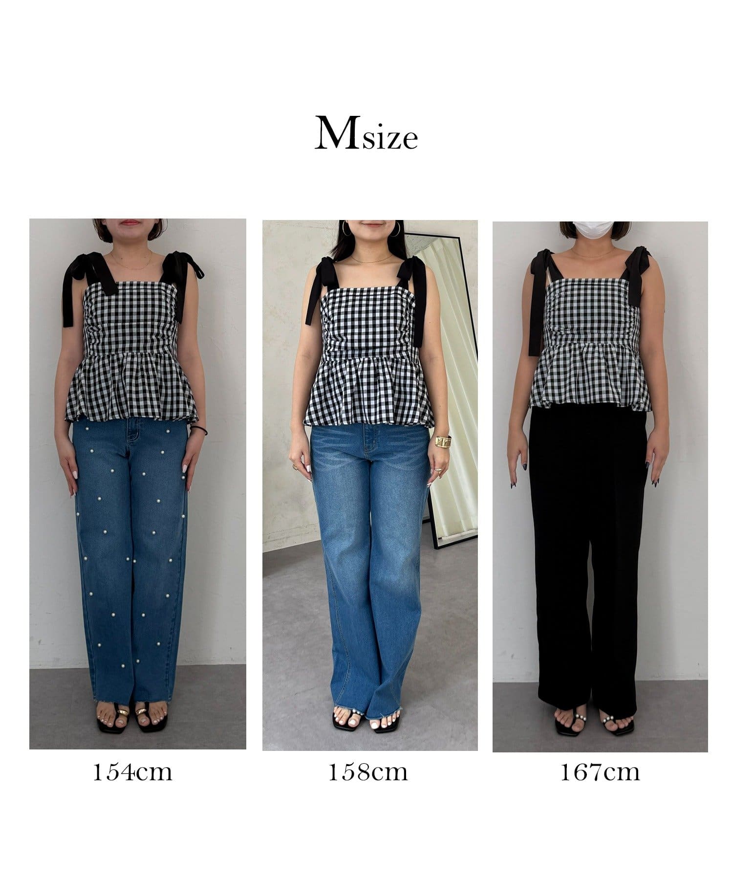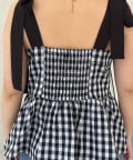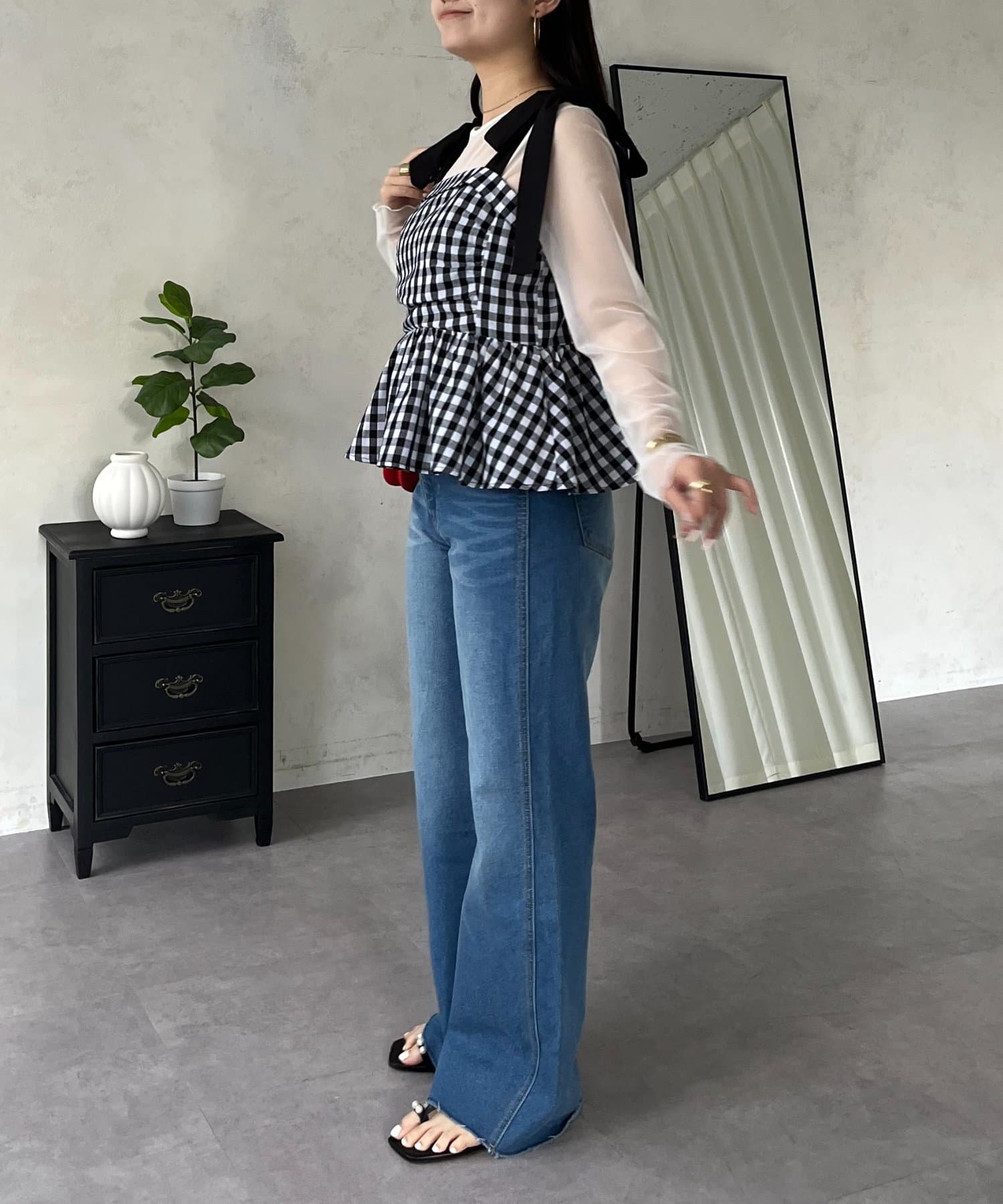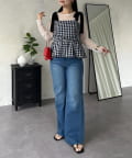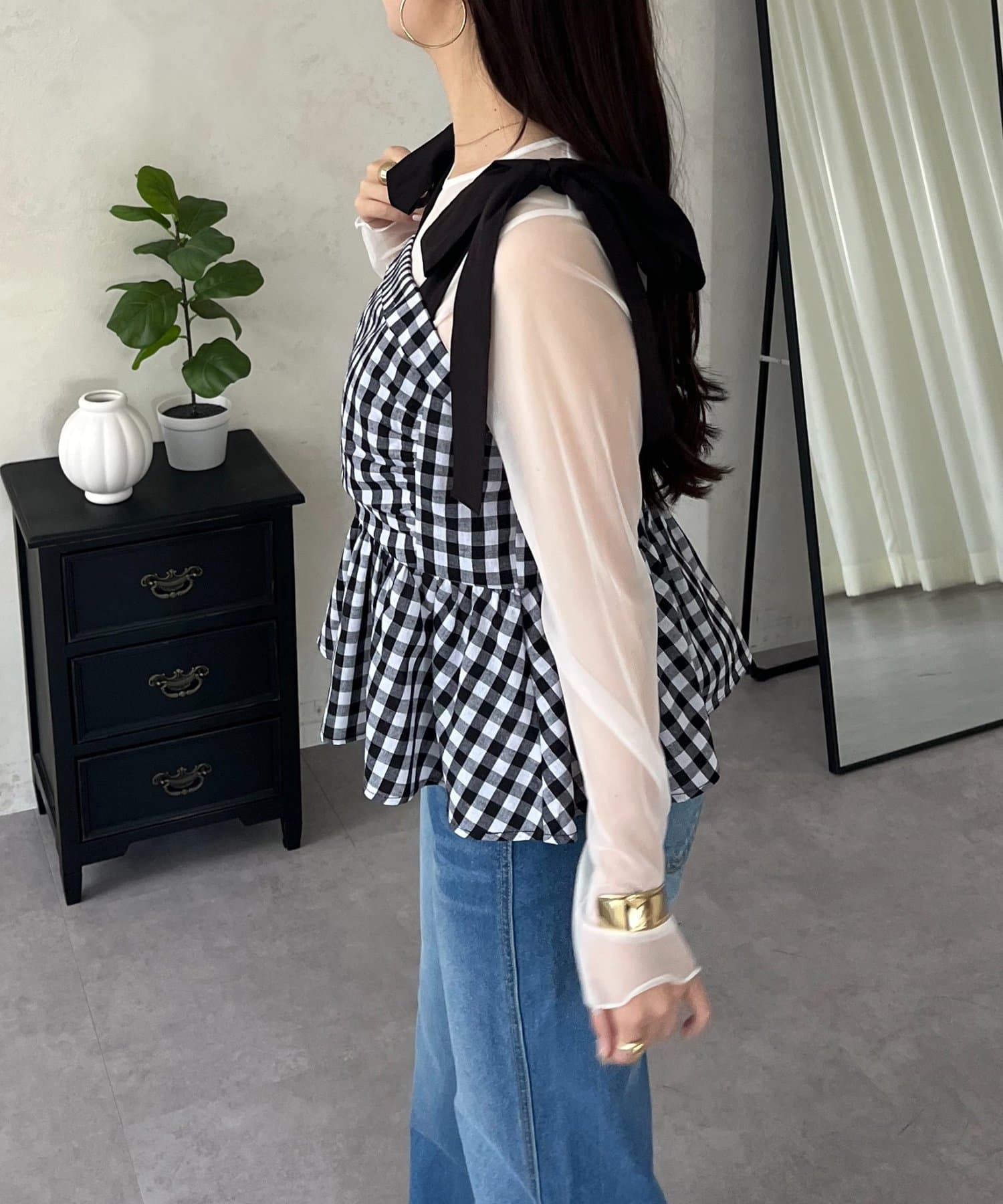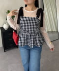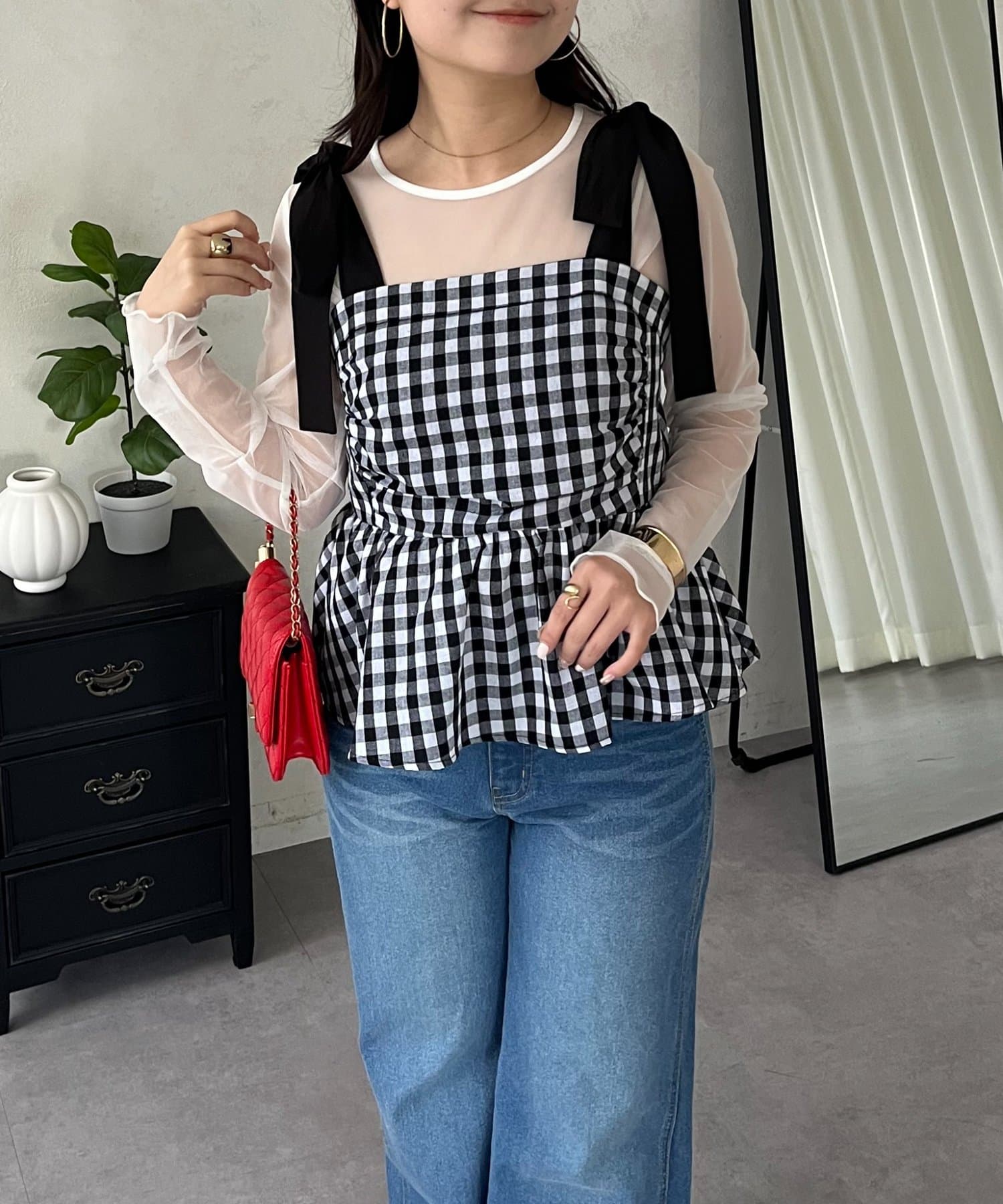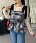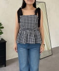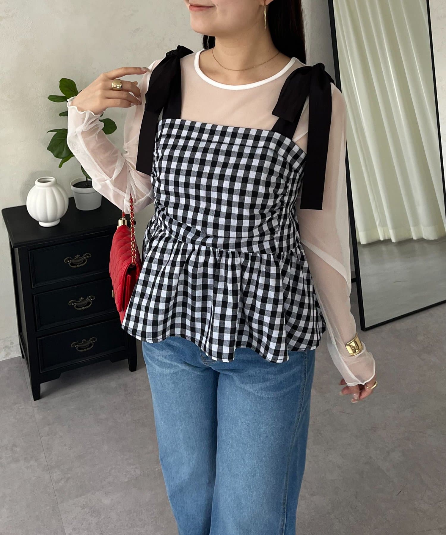 コーデの主役に。肩リボンがアクセントのギンガムチェックビスチェ