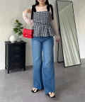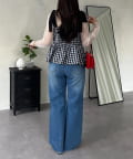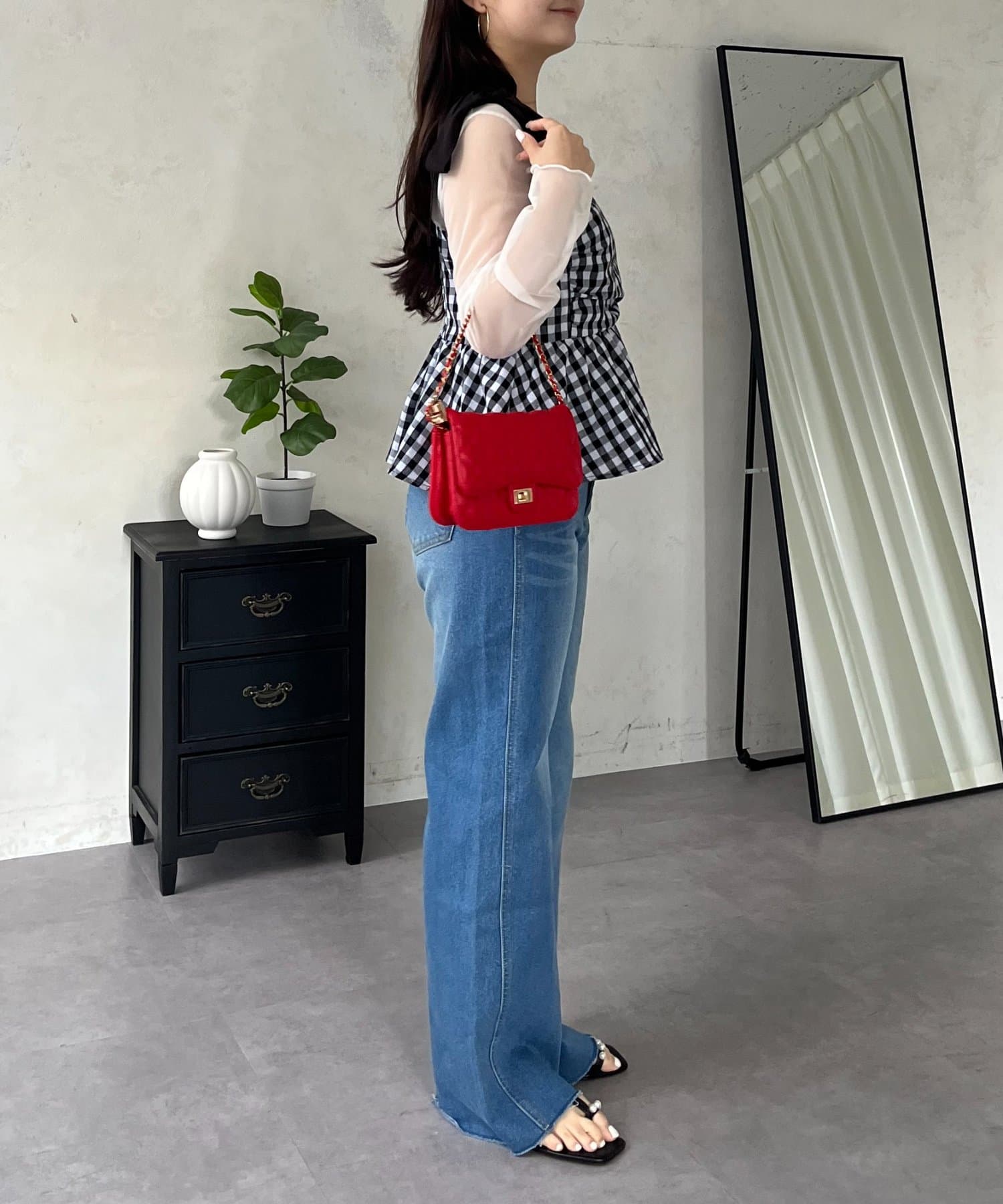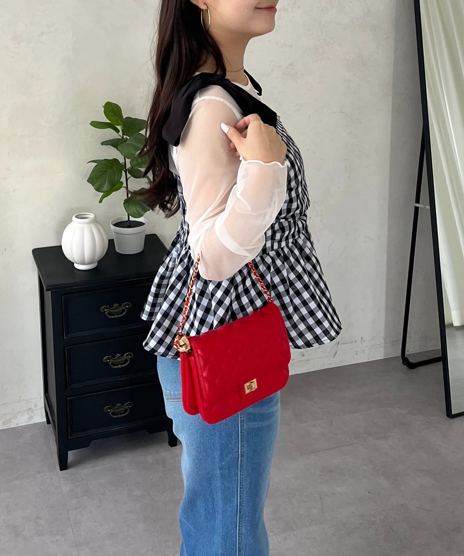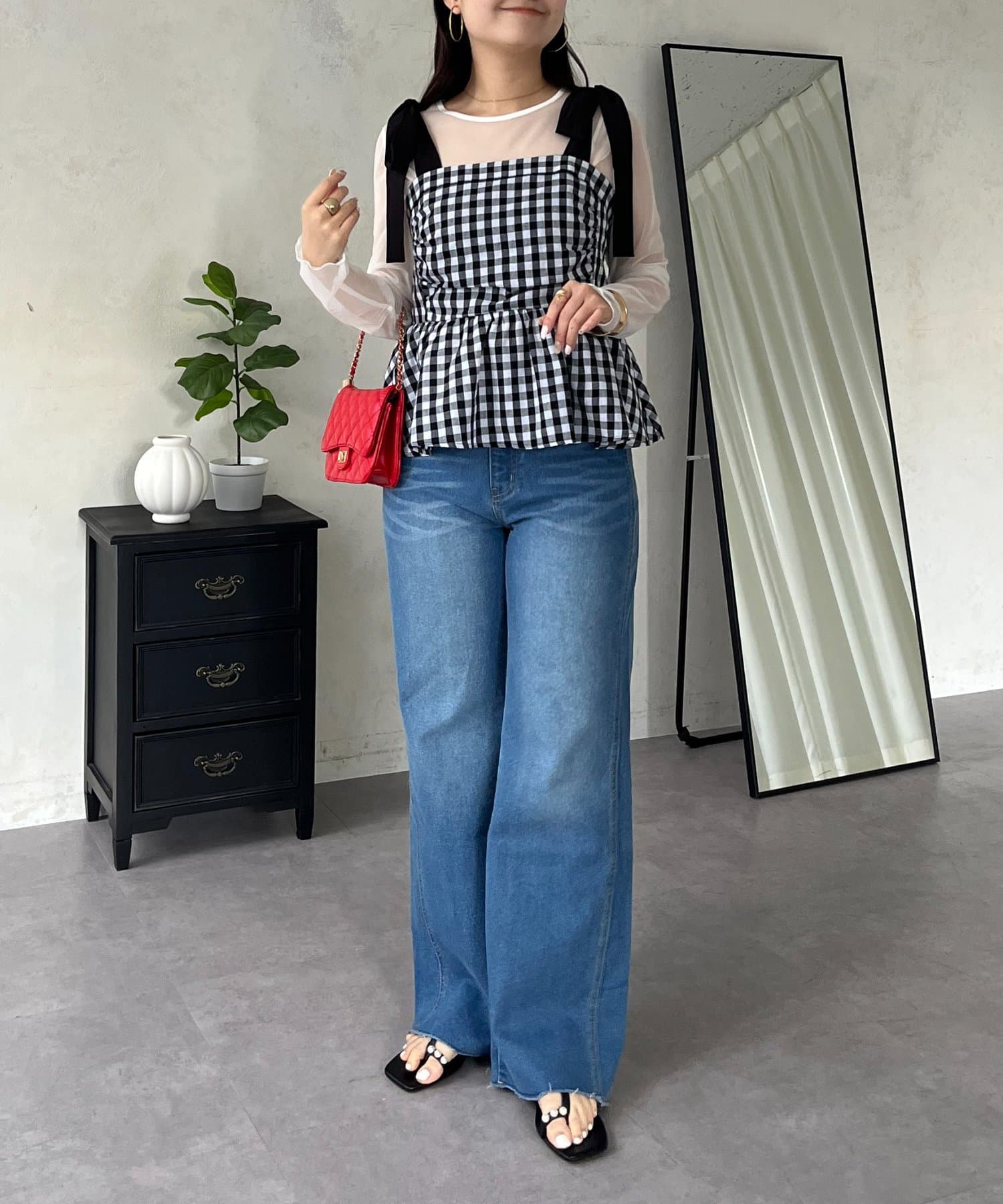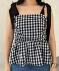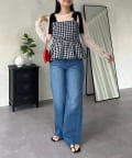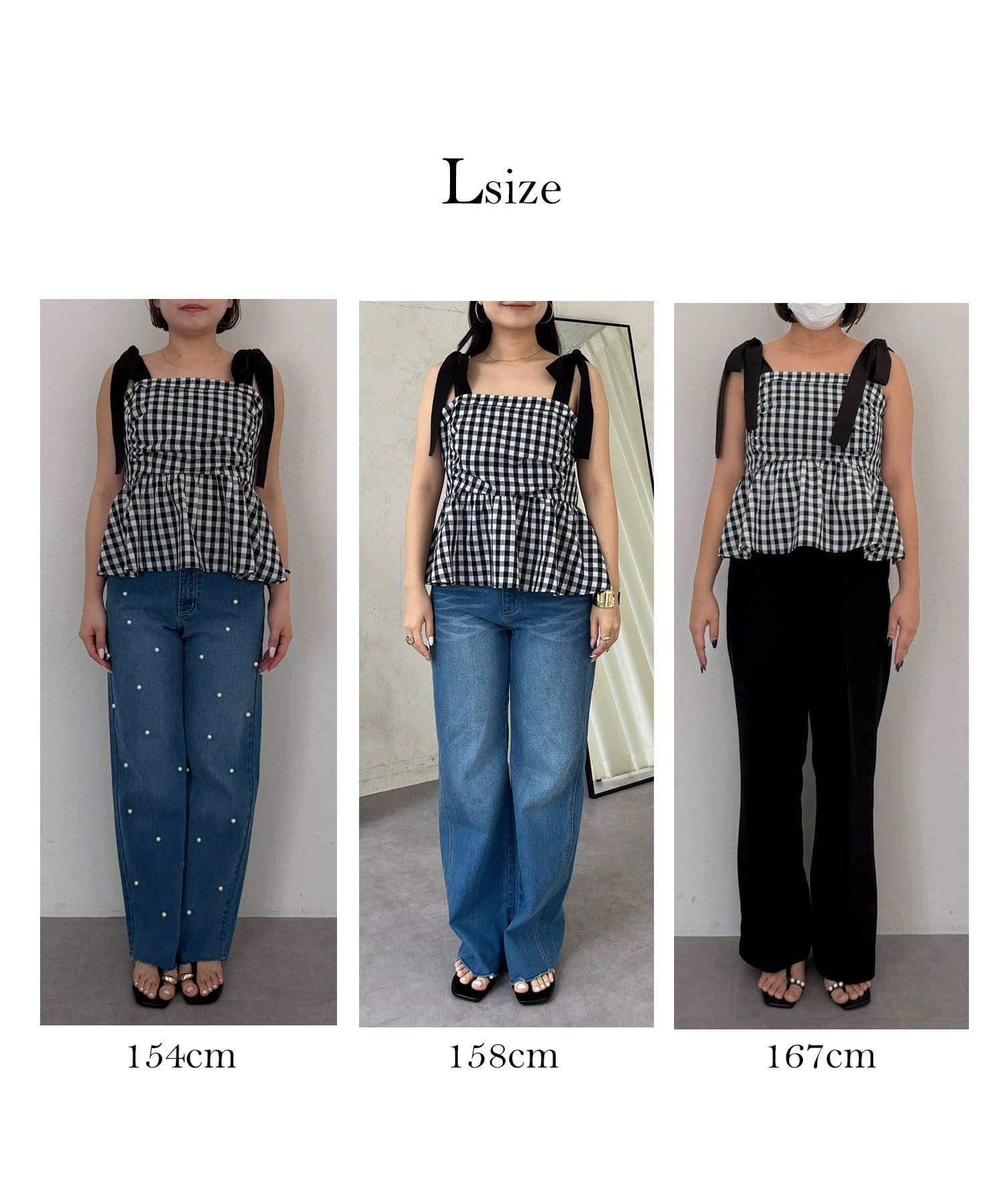 コーデの主役に。肩リボンがアクセントのギンガムチェックビスチェ