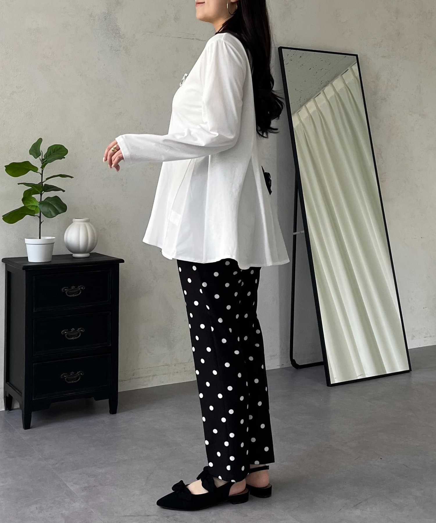 ●ふんわり広がるフレアラインが女性らしく、動くたびにエレガントな印象に