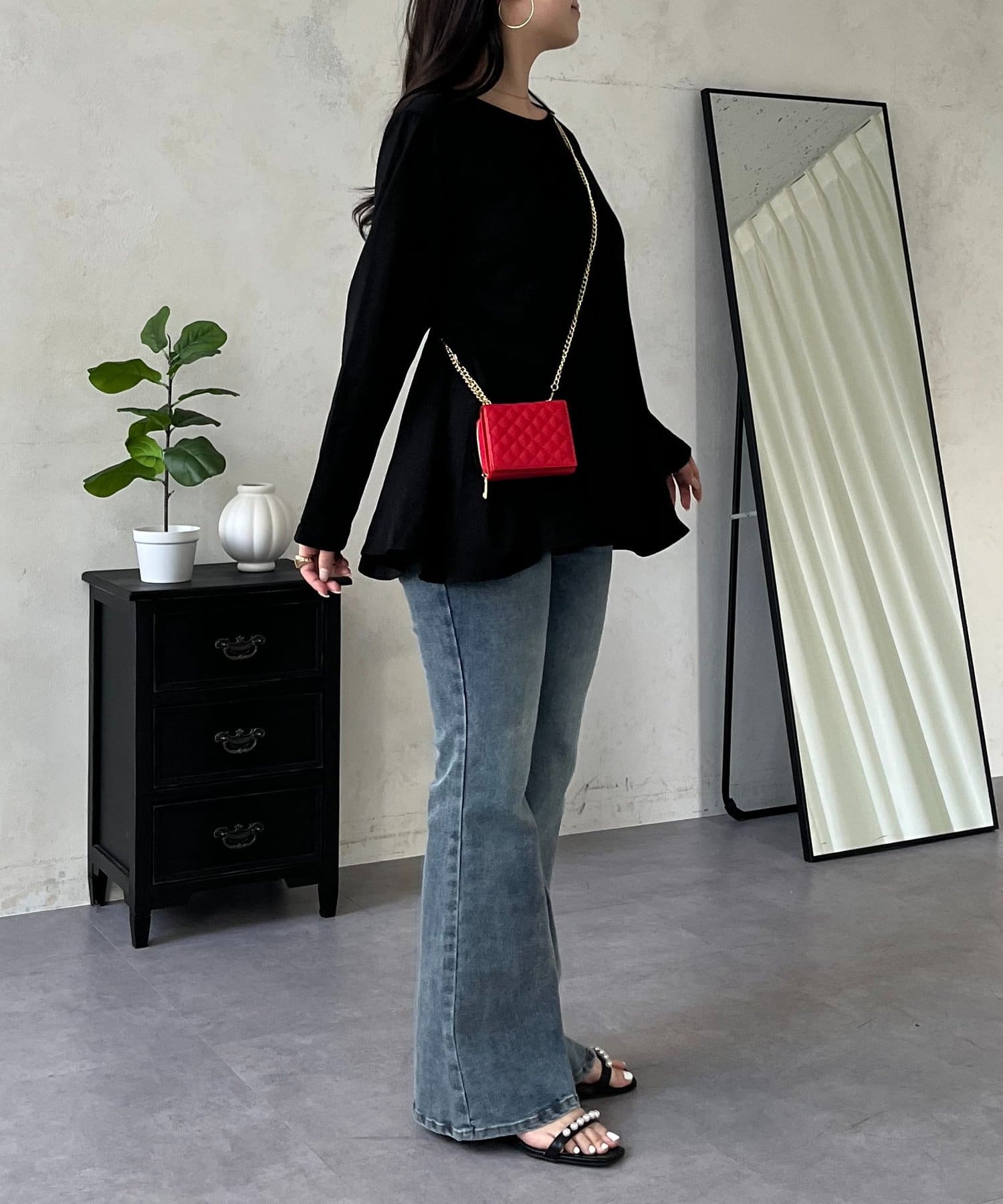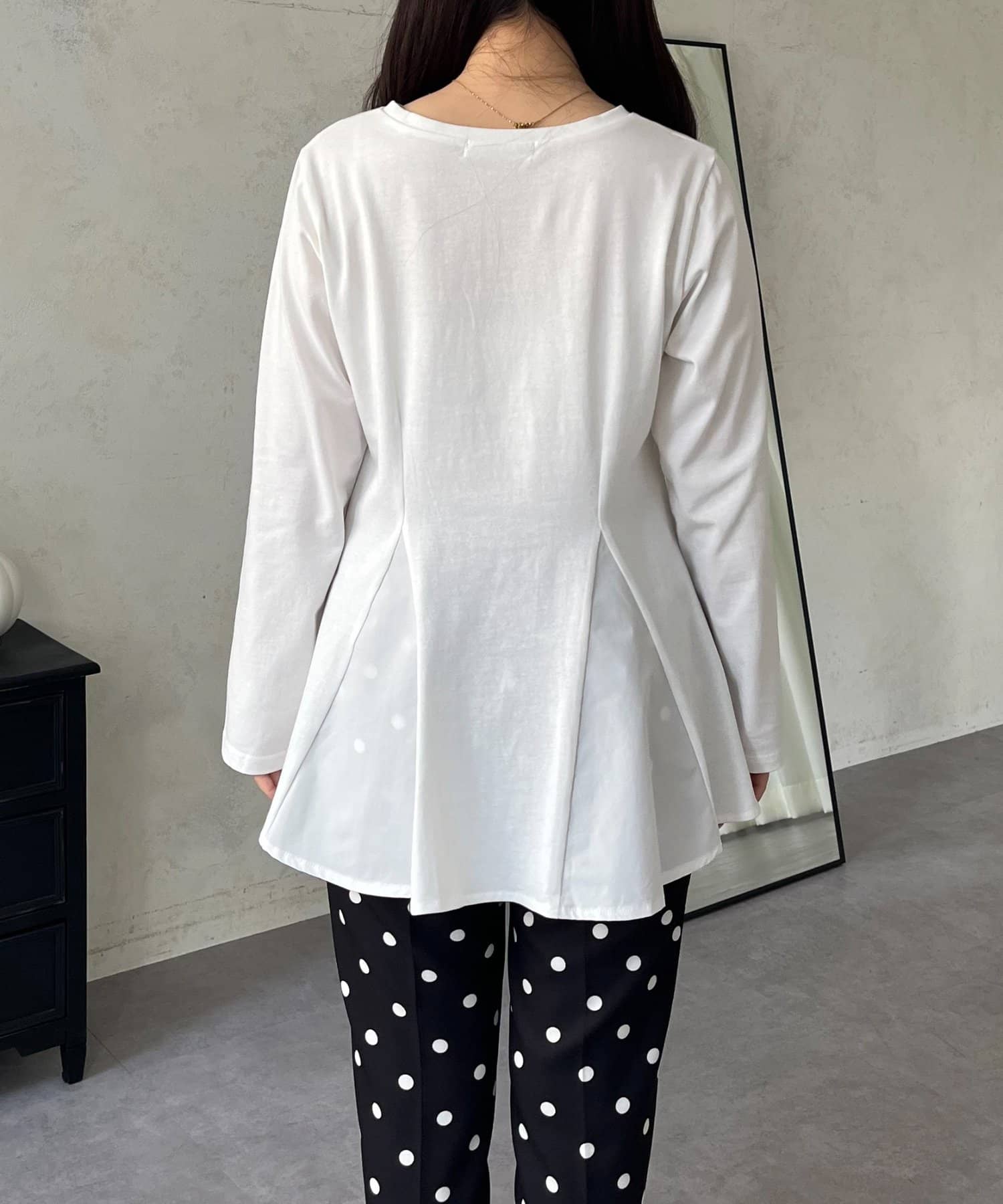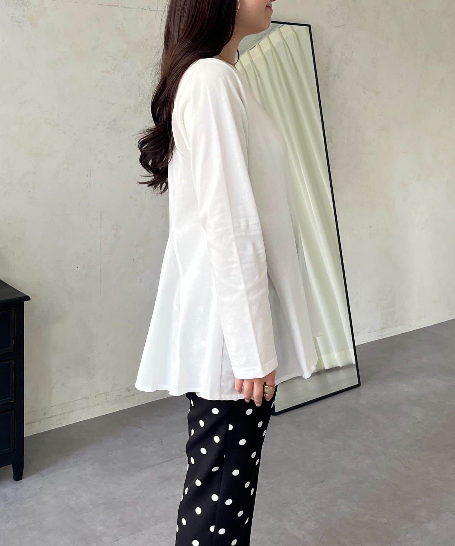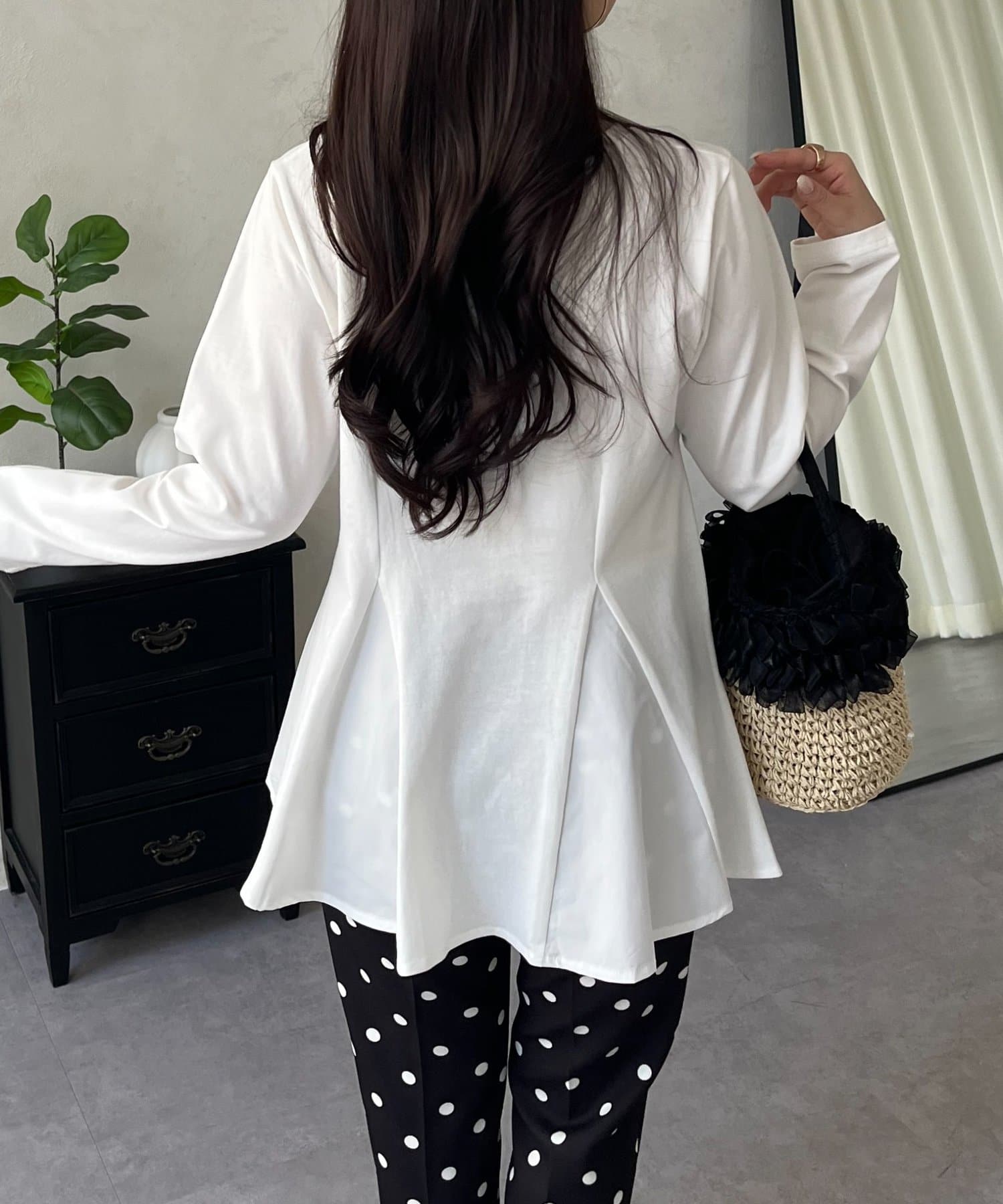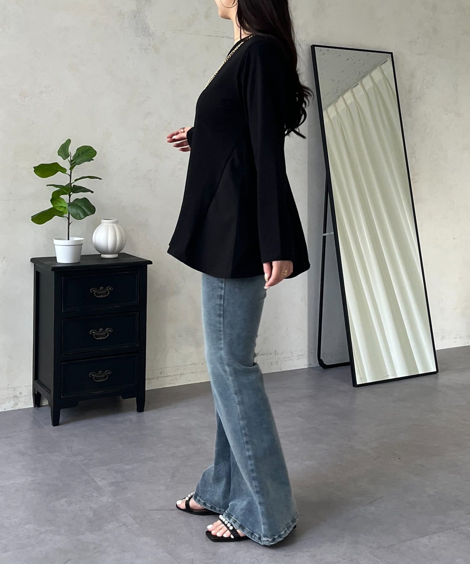 ●ノーカラージャケットやロングコートのインナーとしても、裾のフレアがアクセントに