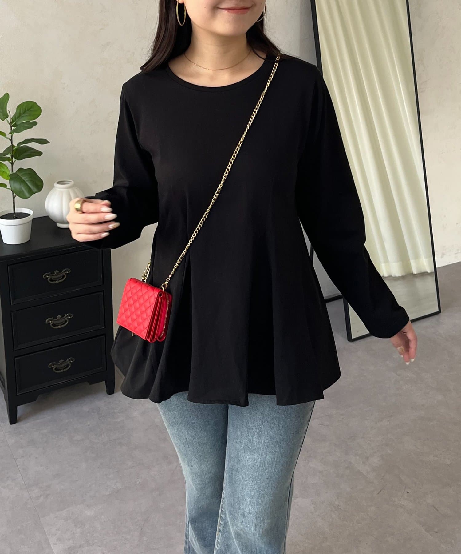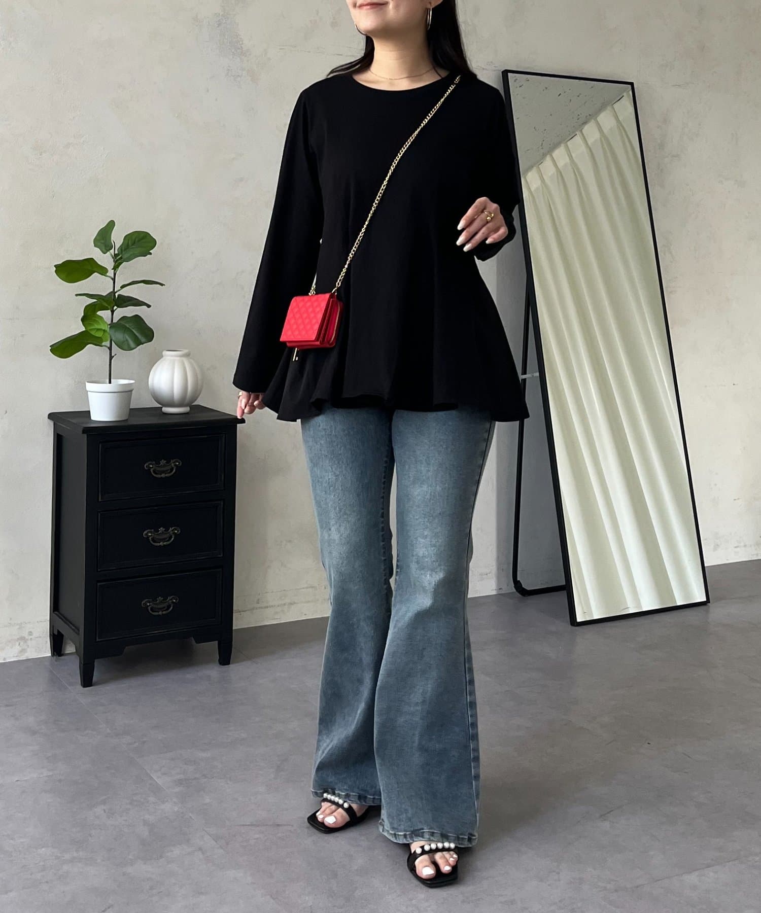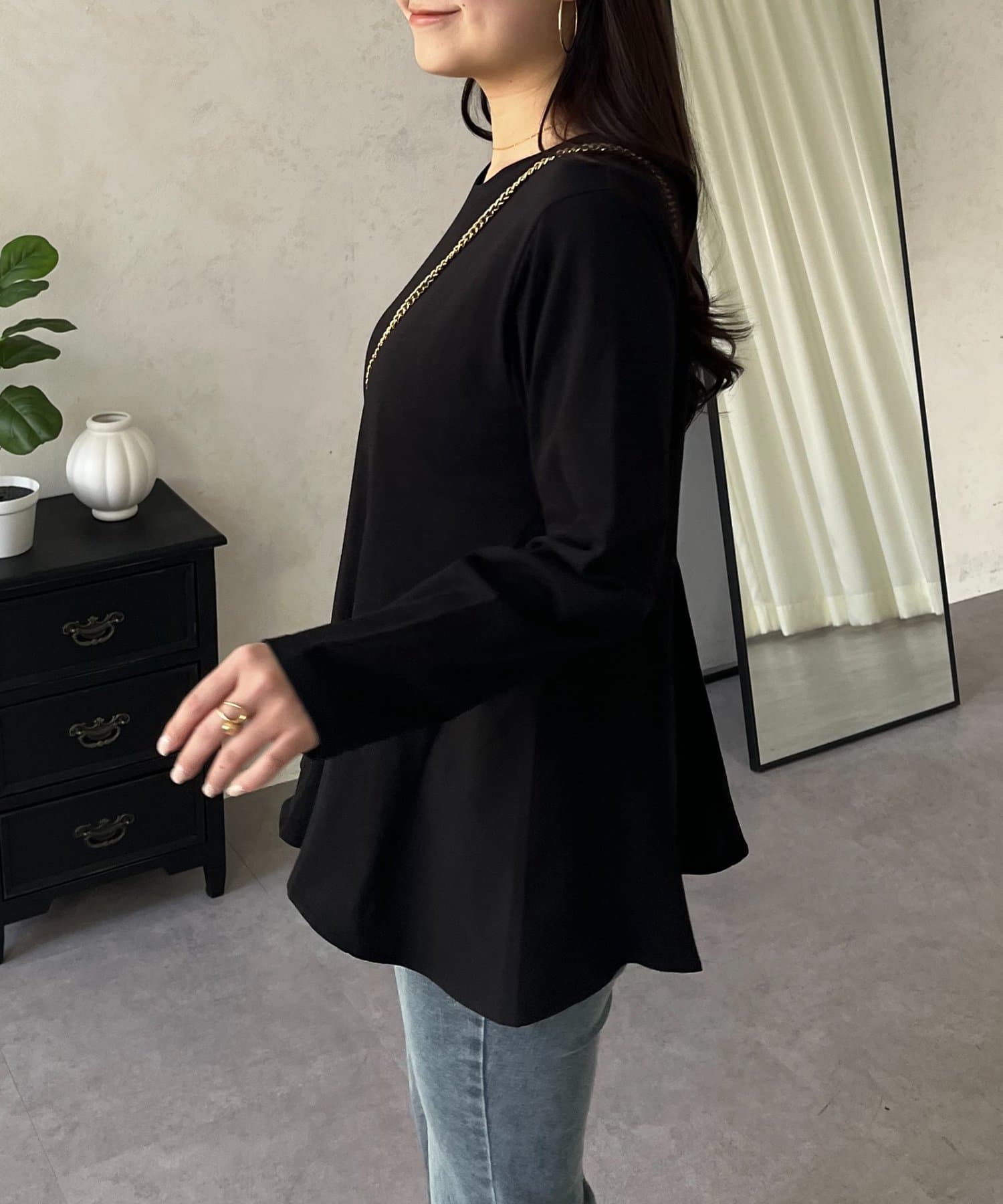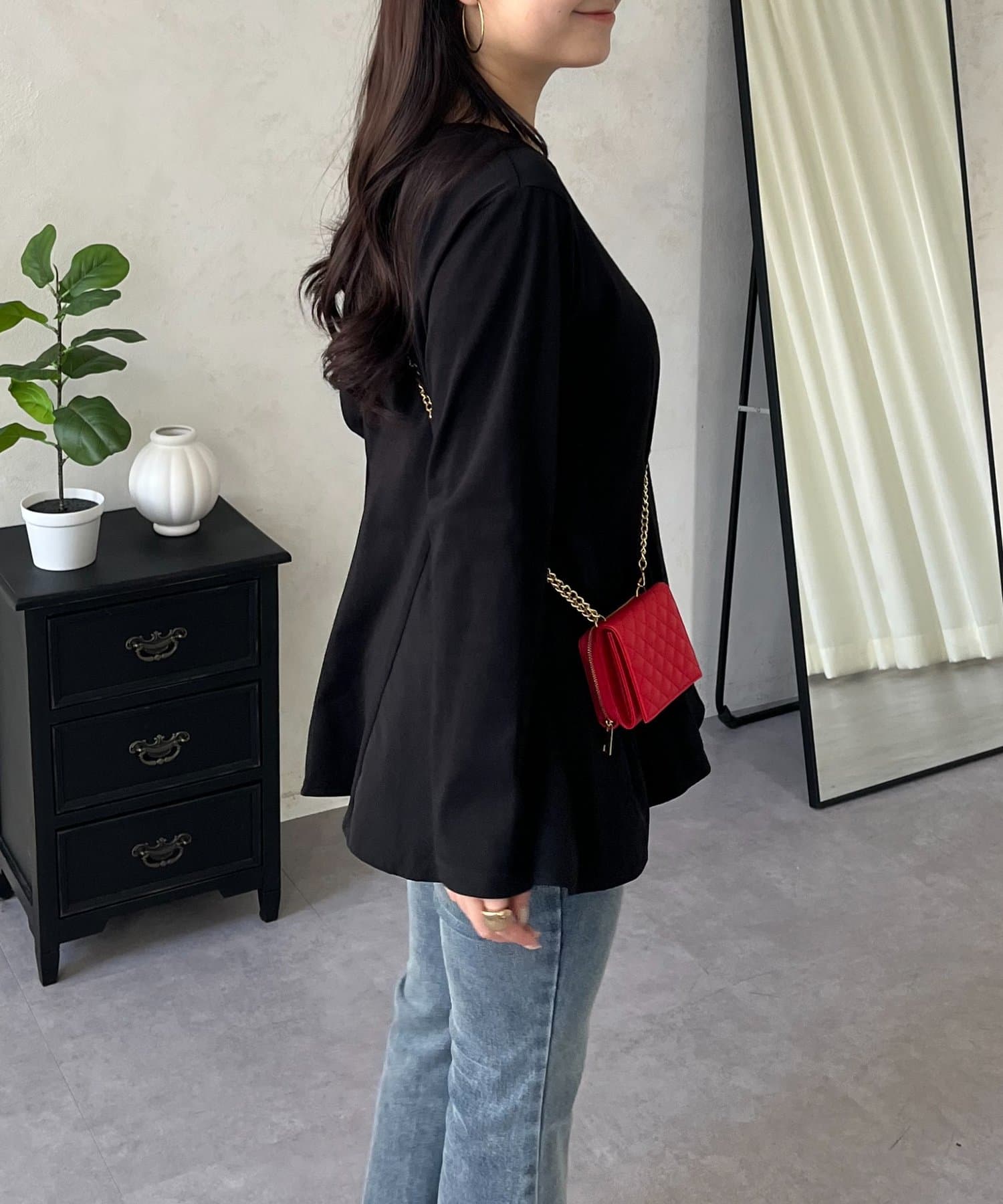 ●ノーカラージャケットやロングコートのインナーとしても、裾のフレアがアクセントに