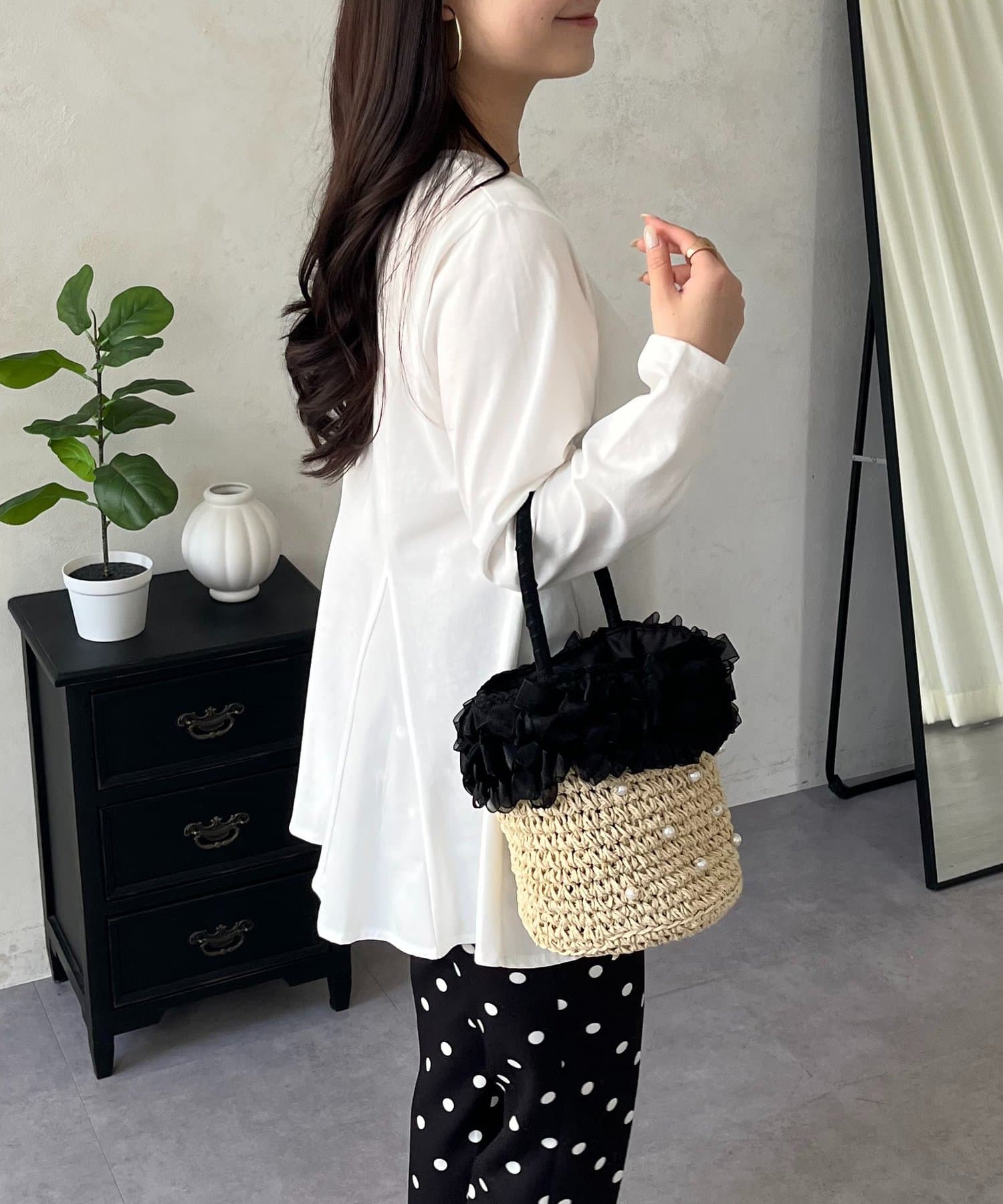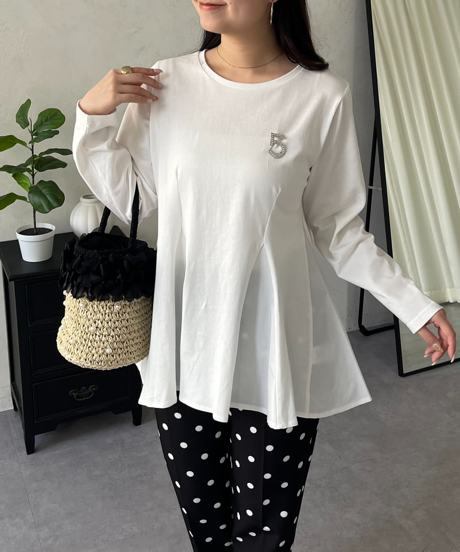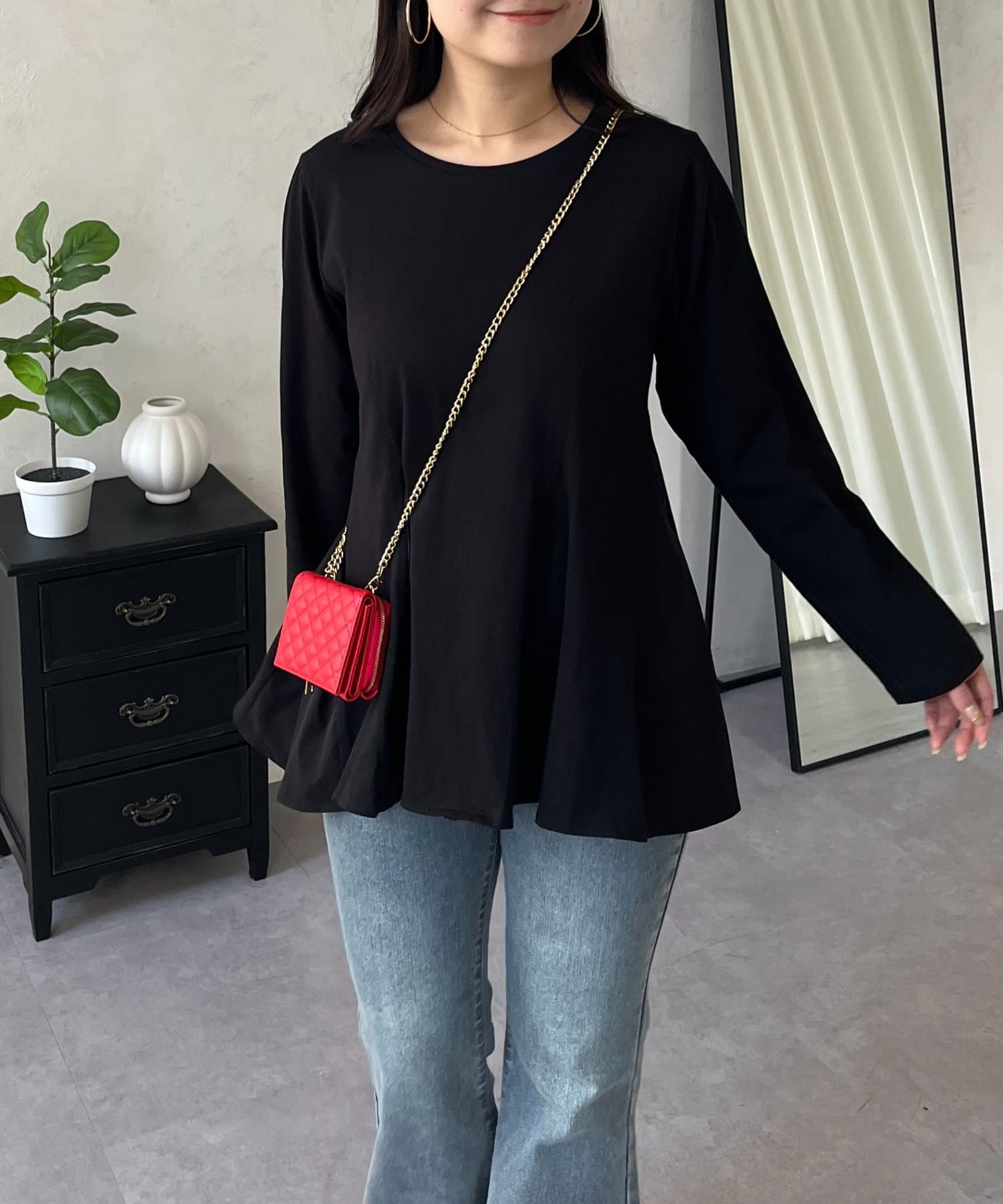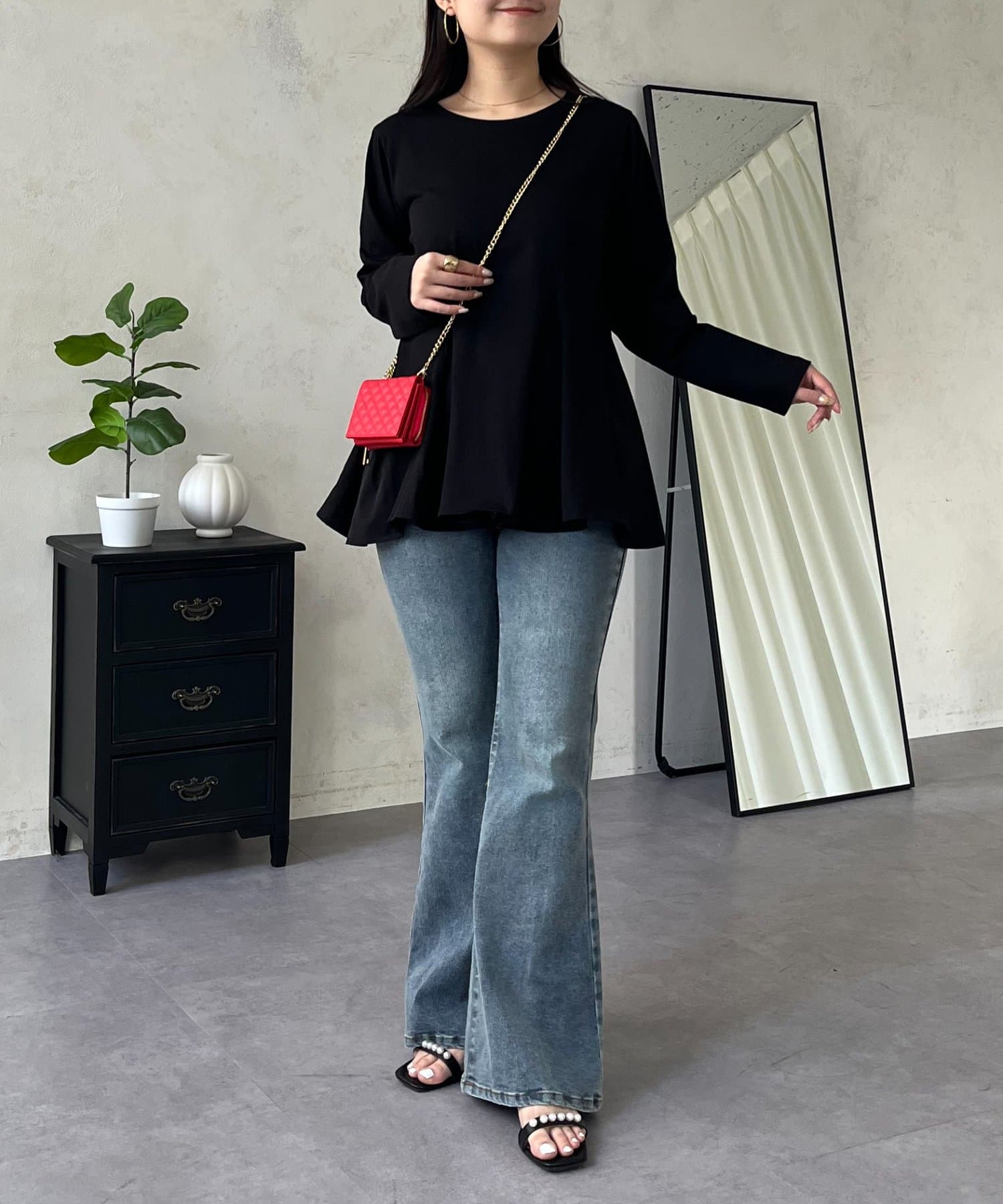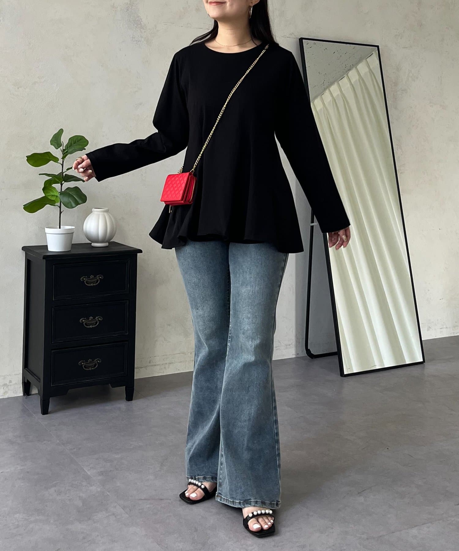 ●ノーカラージャケットやロングコートのインナーとしても、裾のフレアがアクセントに
