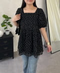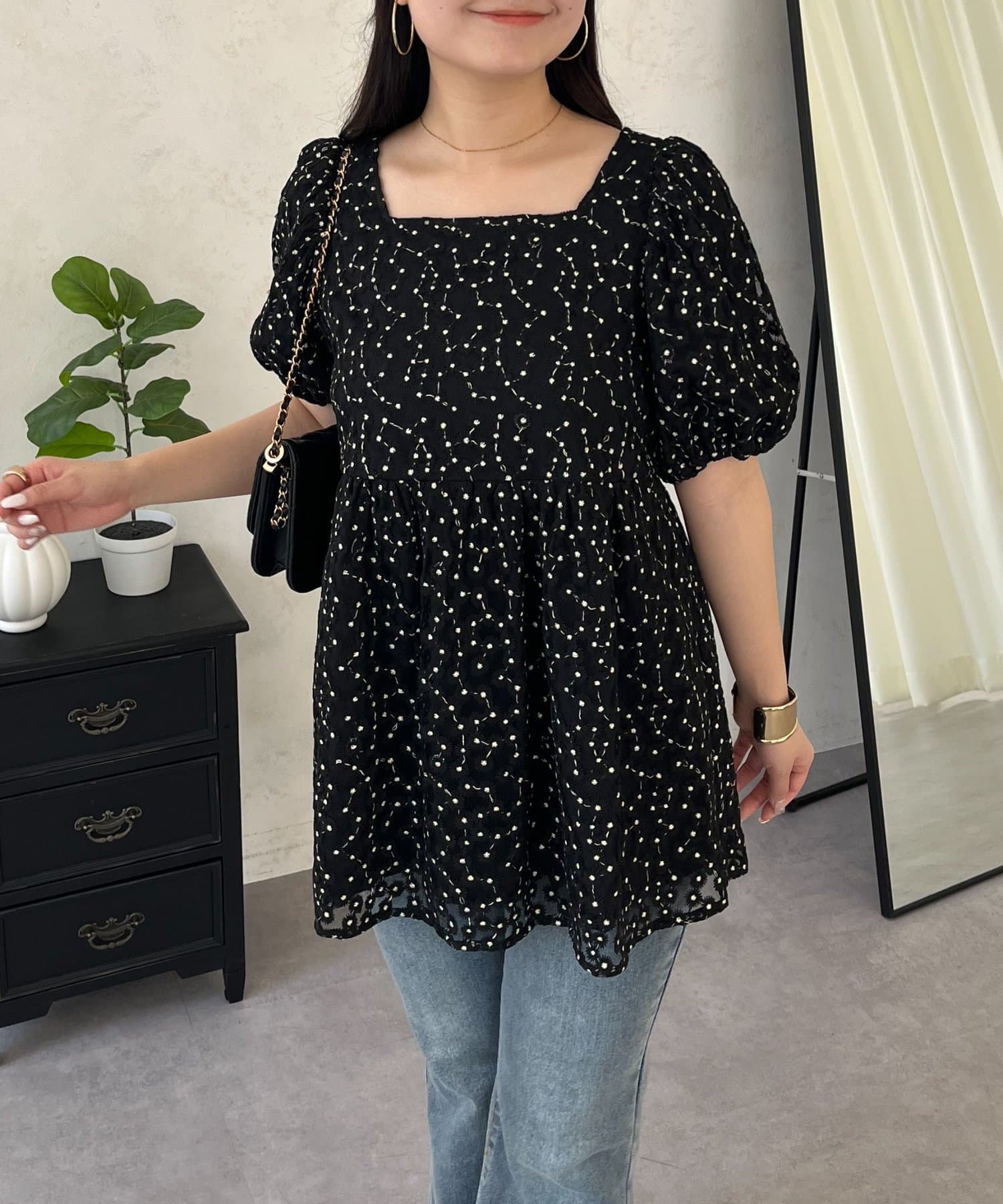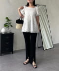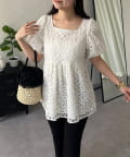 ペプラムブラウス/レーストップス/大人可愛い/体型カバー