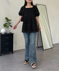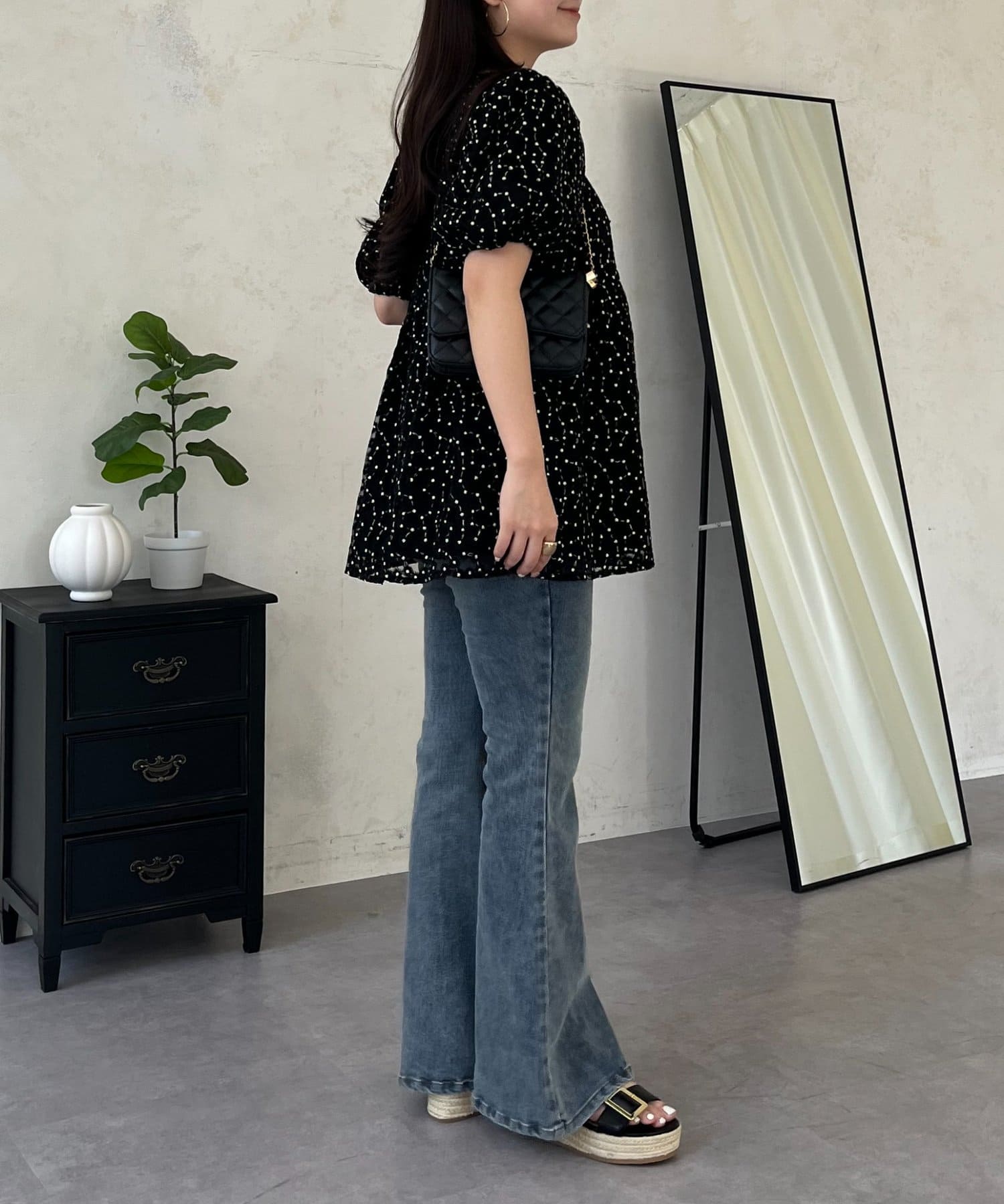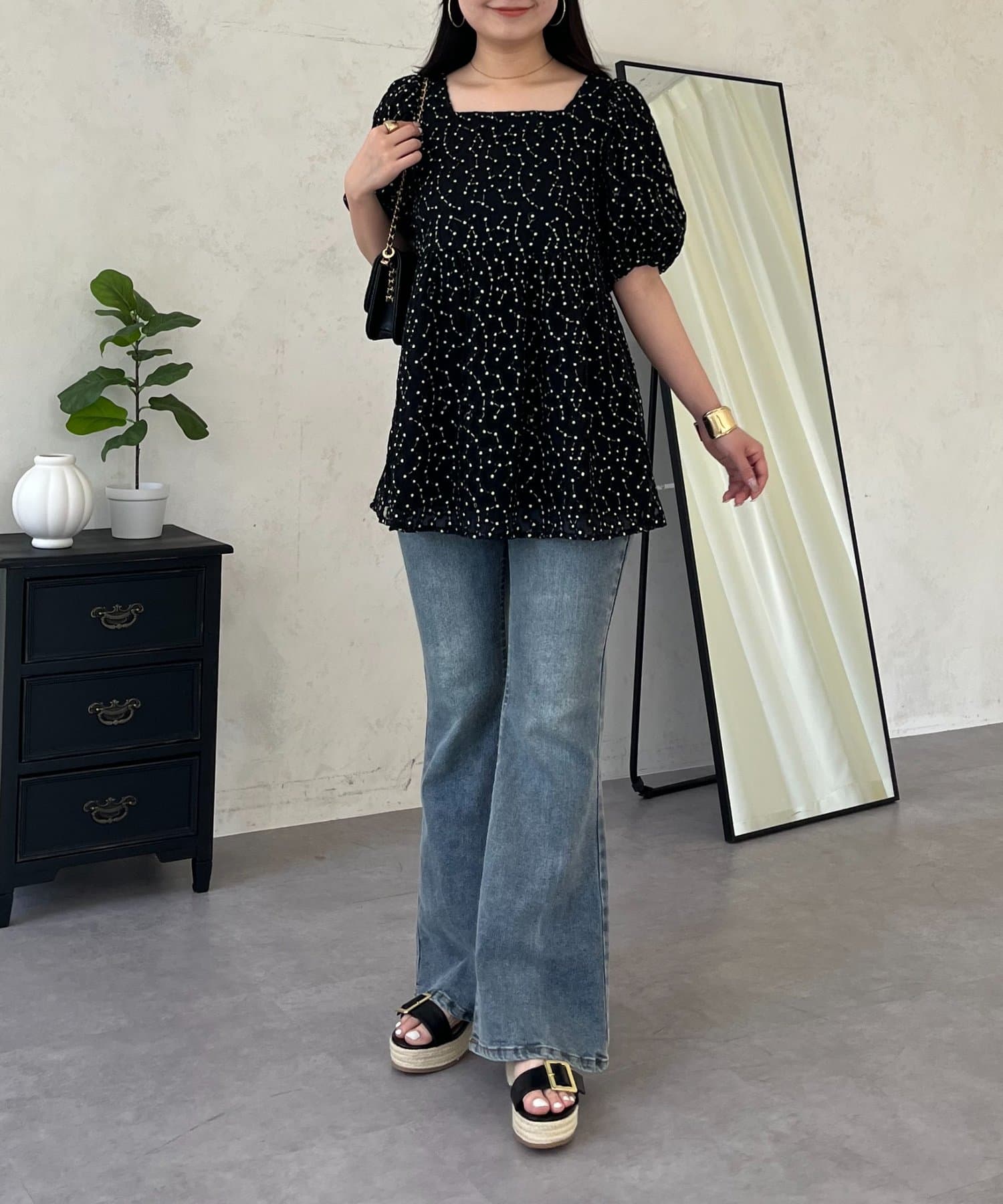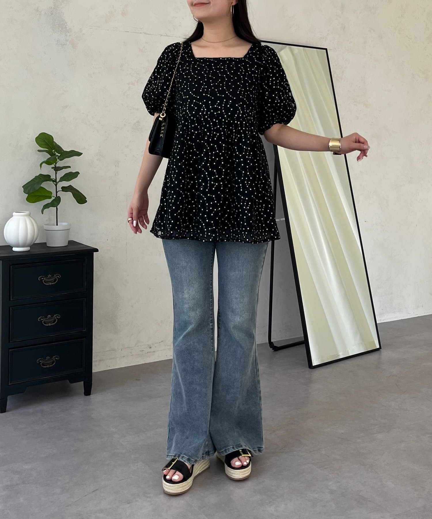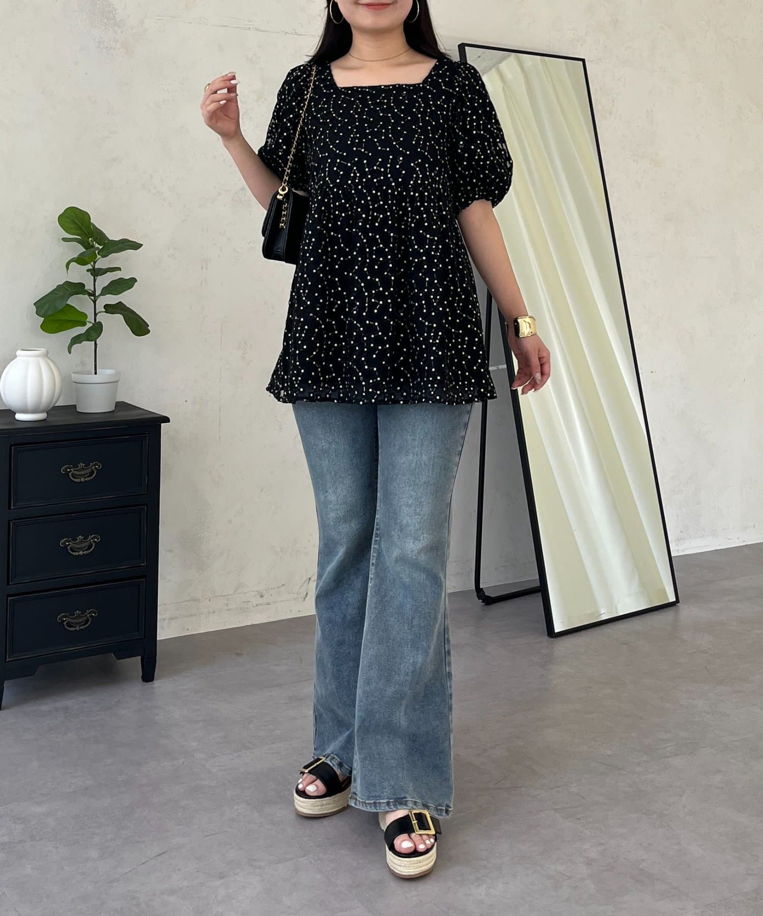 ●ウエストからふんわりと広がるペプラムシルエットが、