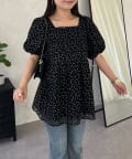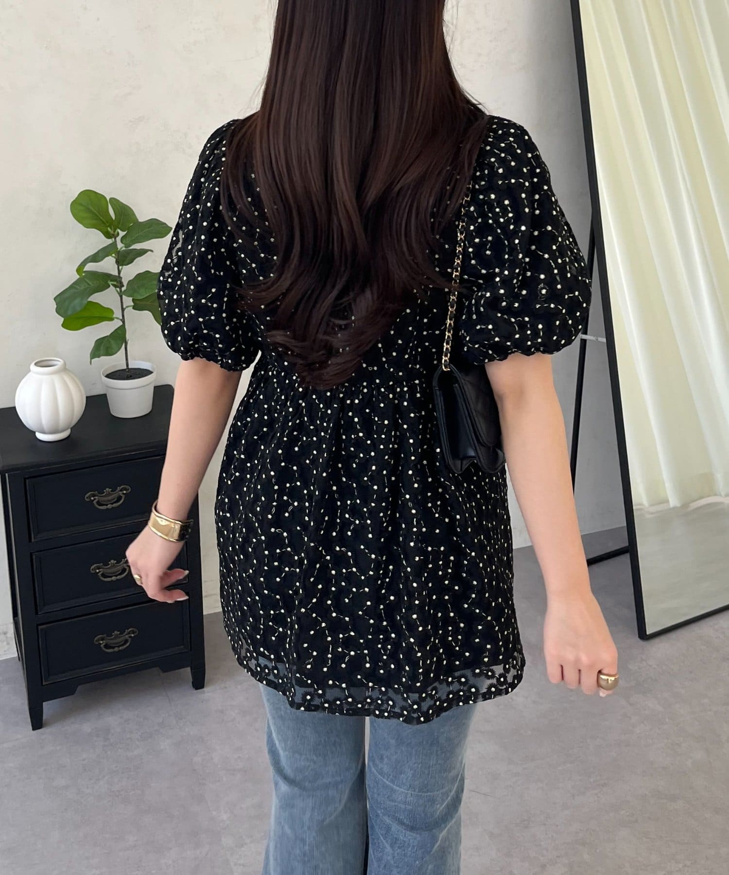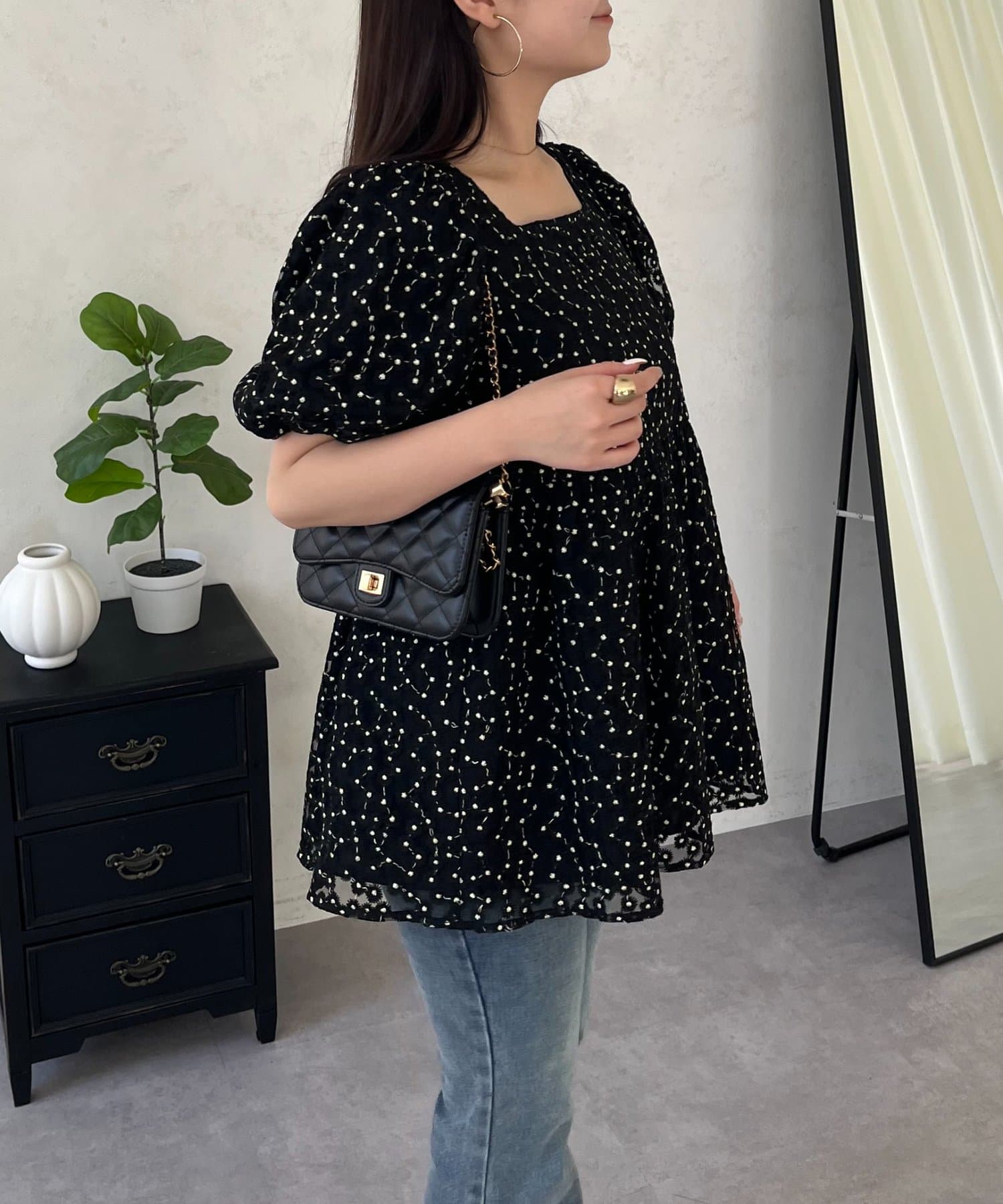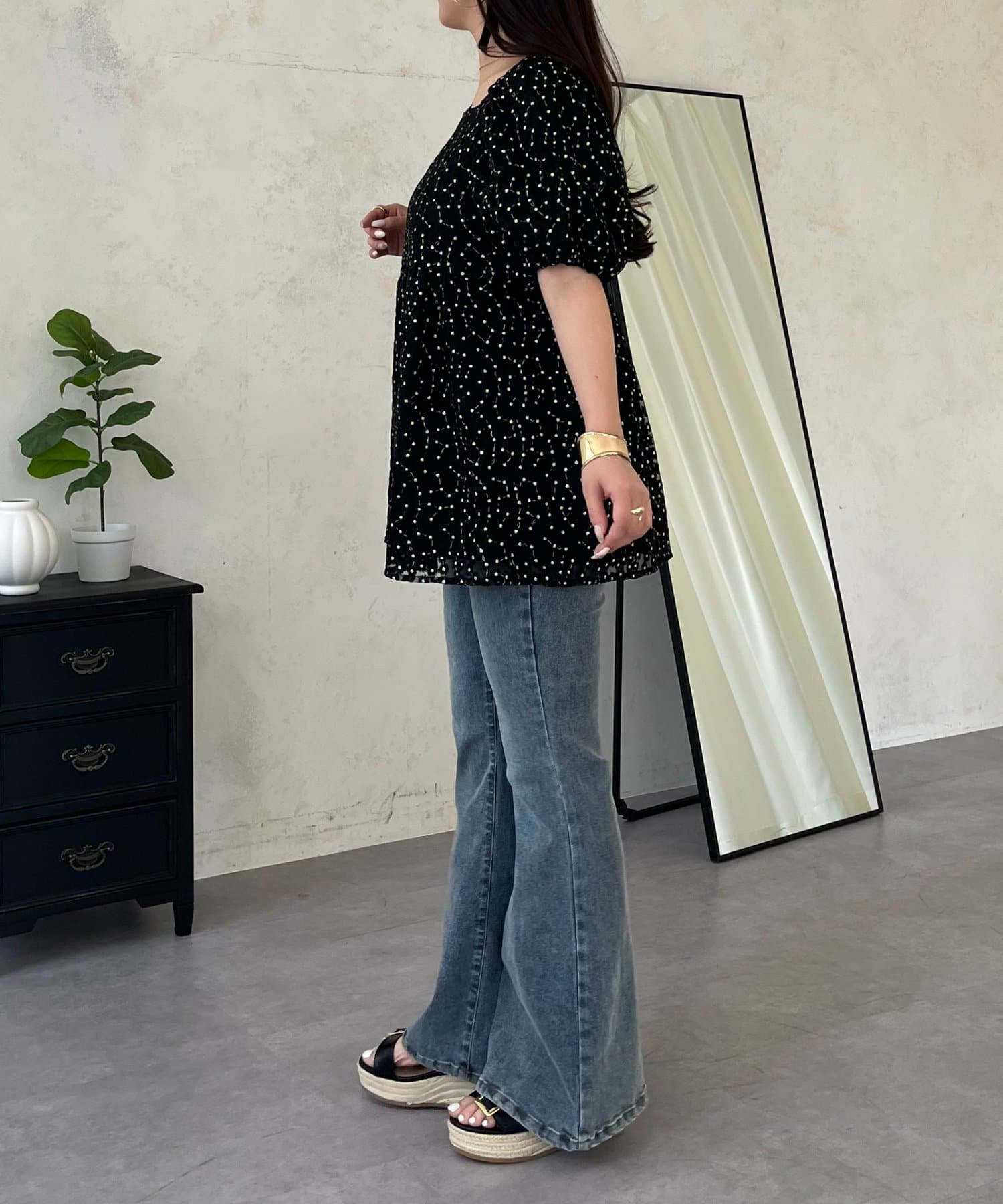 ●ぽわんとしたパフスリーブが二の腕をさりげなく隠し、フ