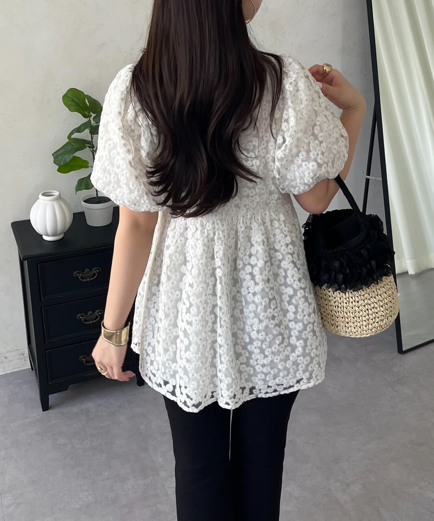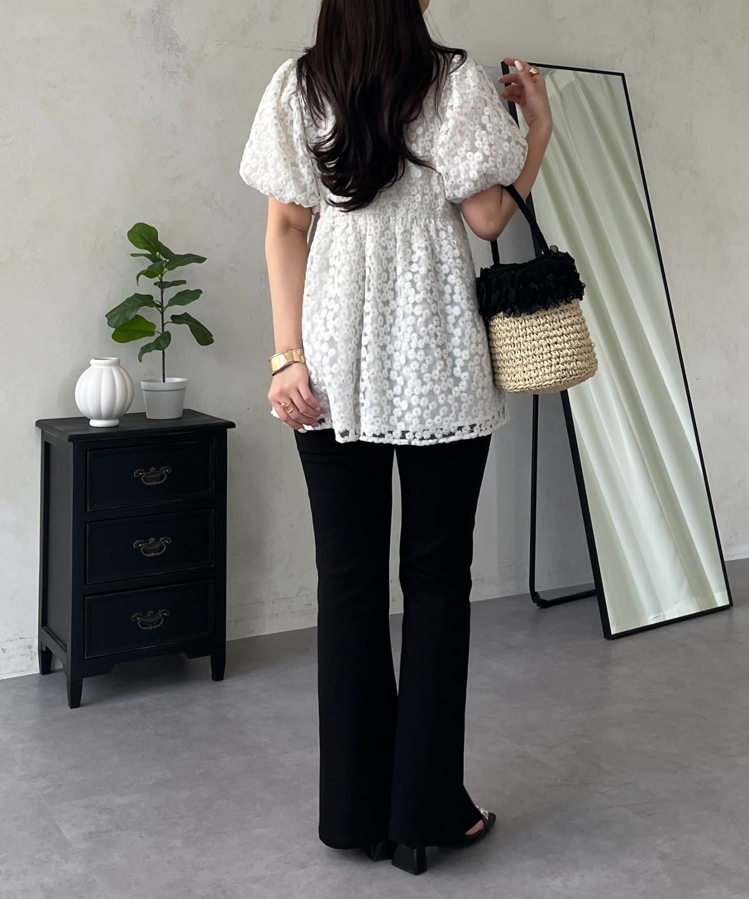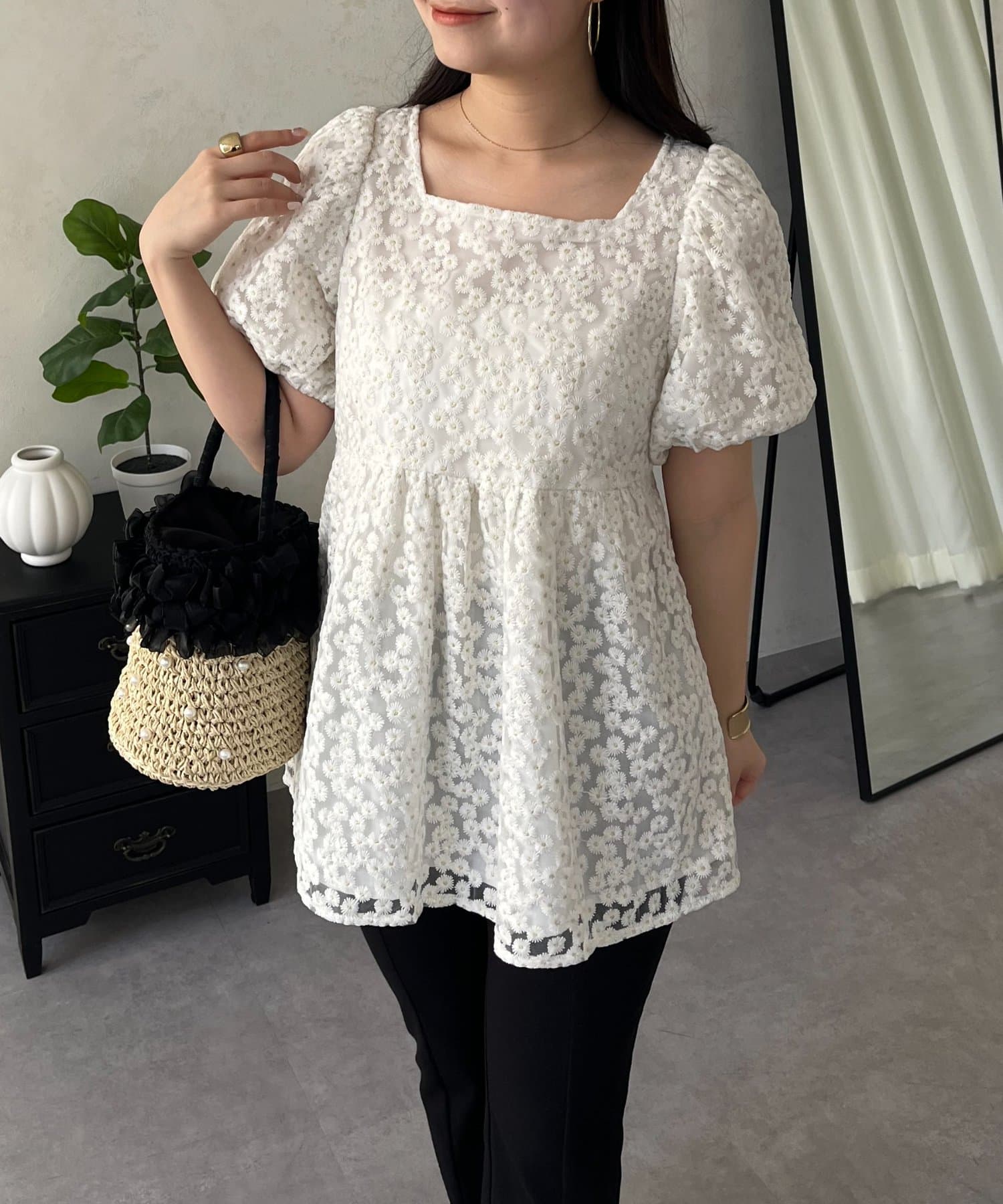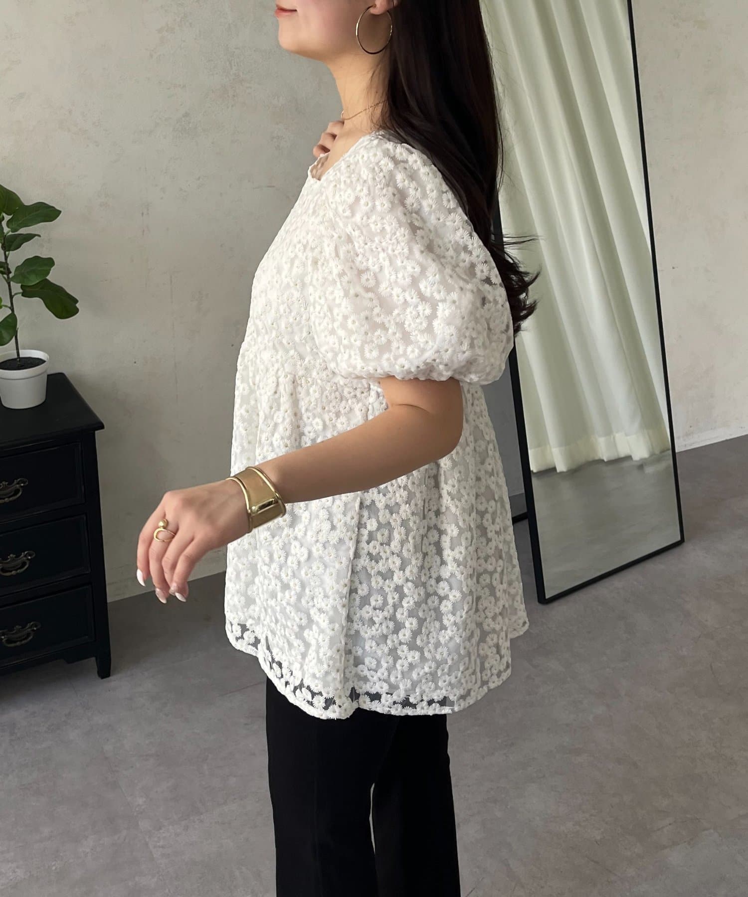 • prose verse(プロズヴェール) フラワーチュールレースペプラムブラウス