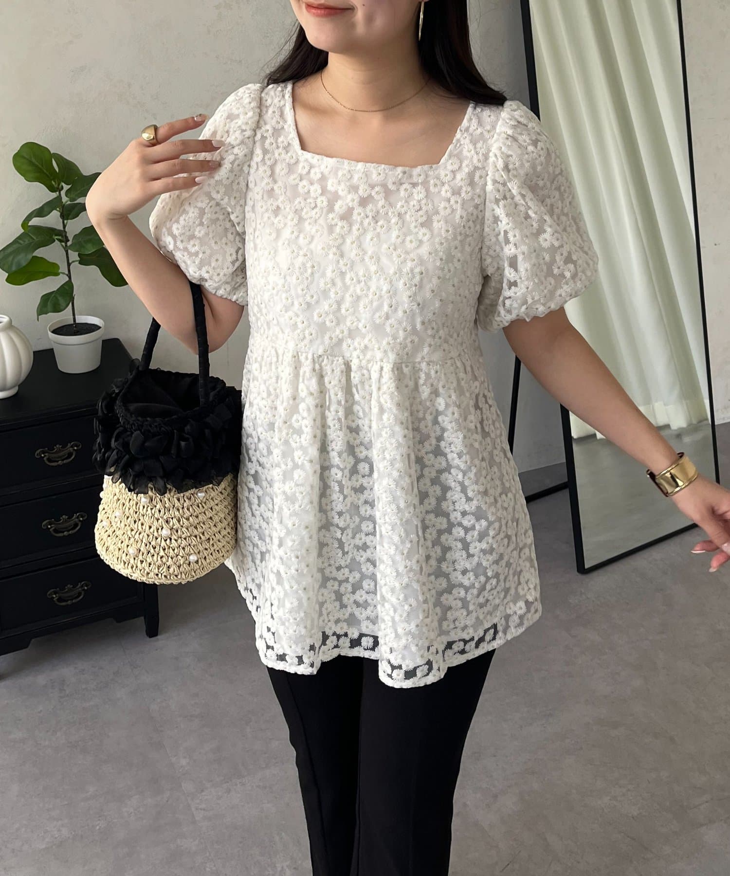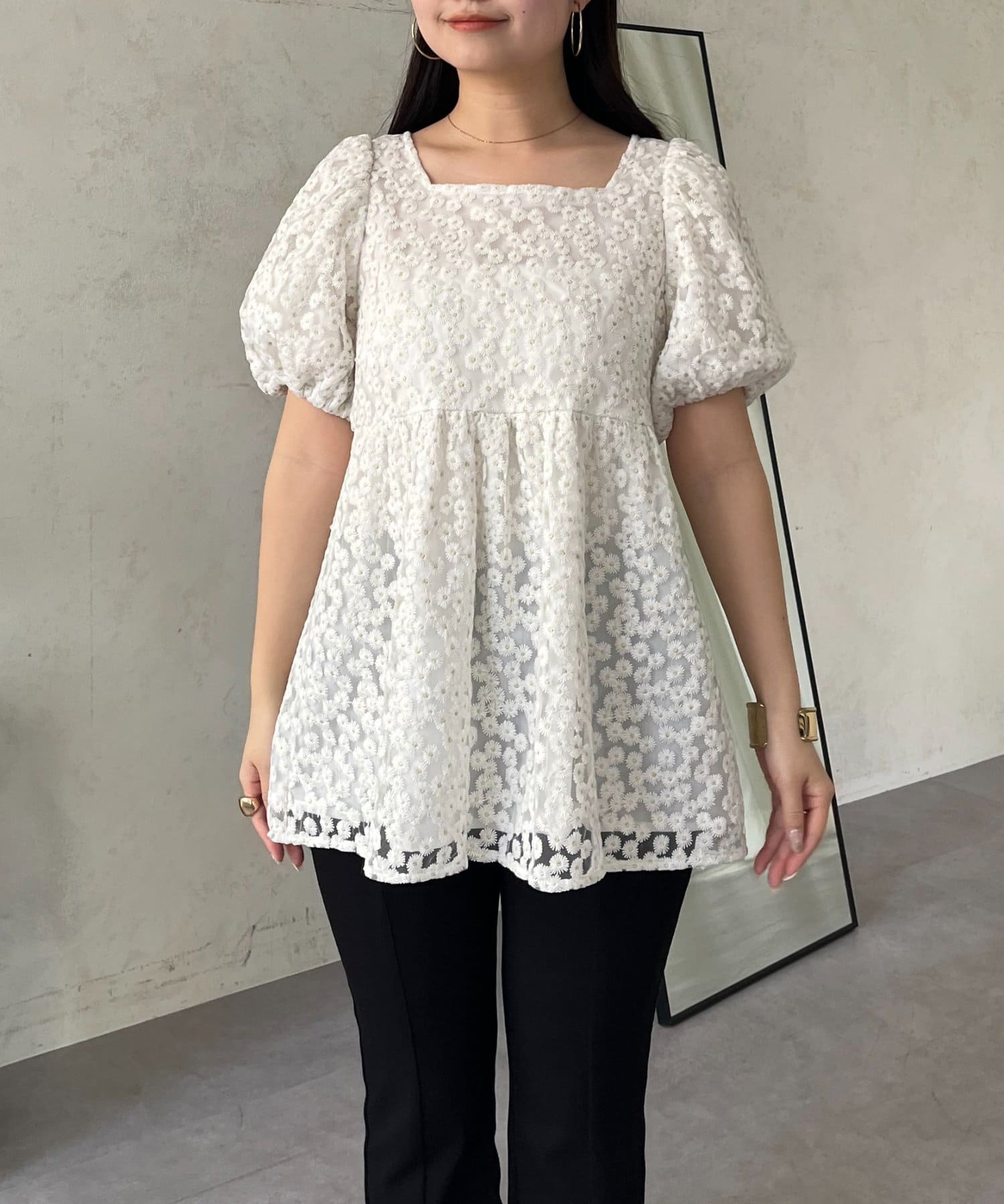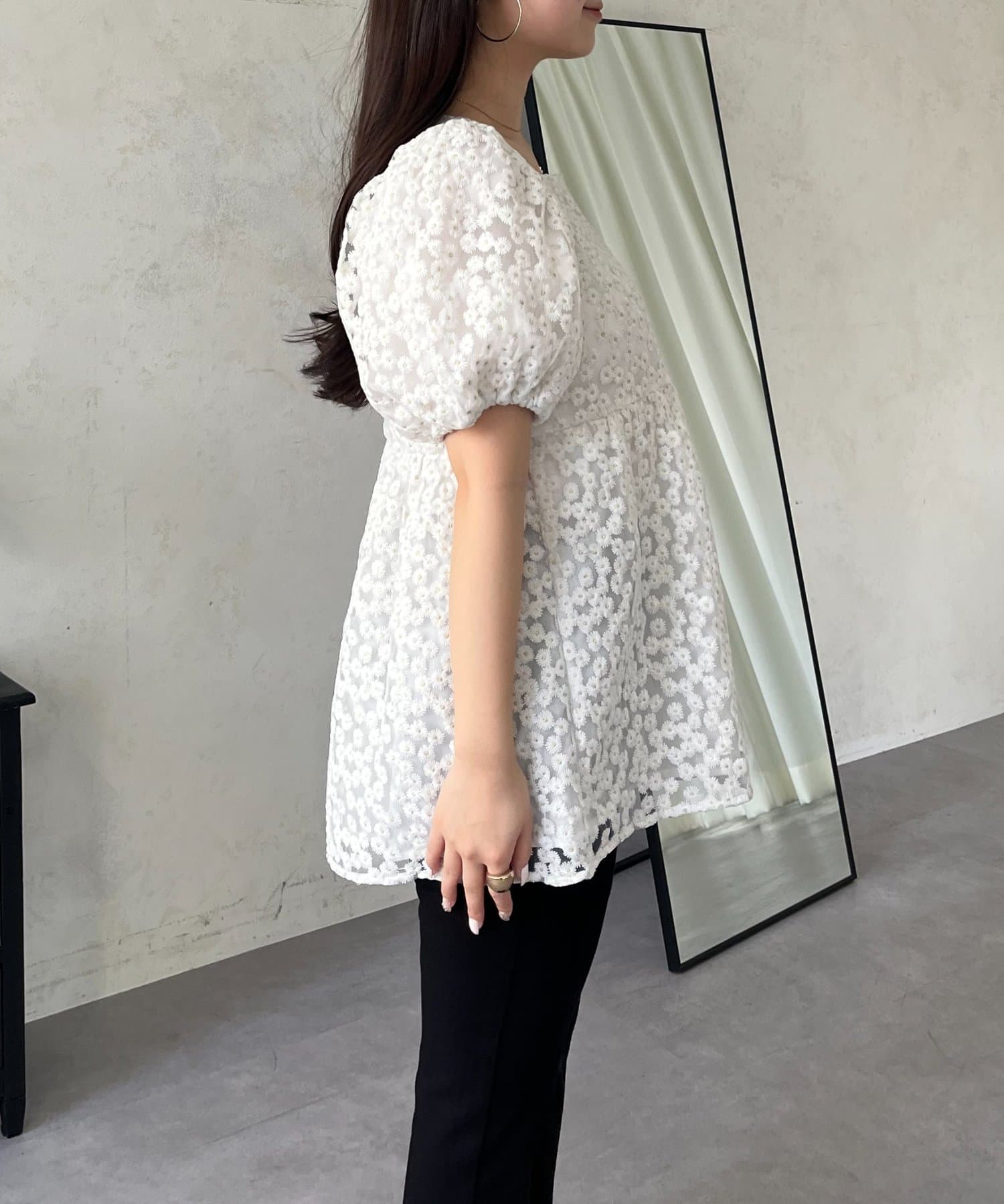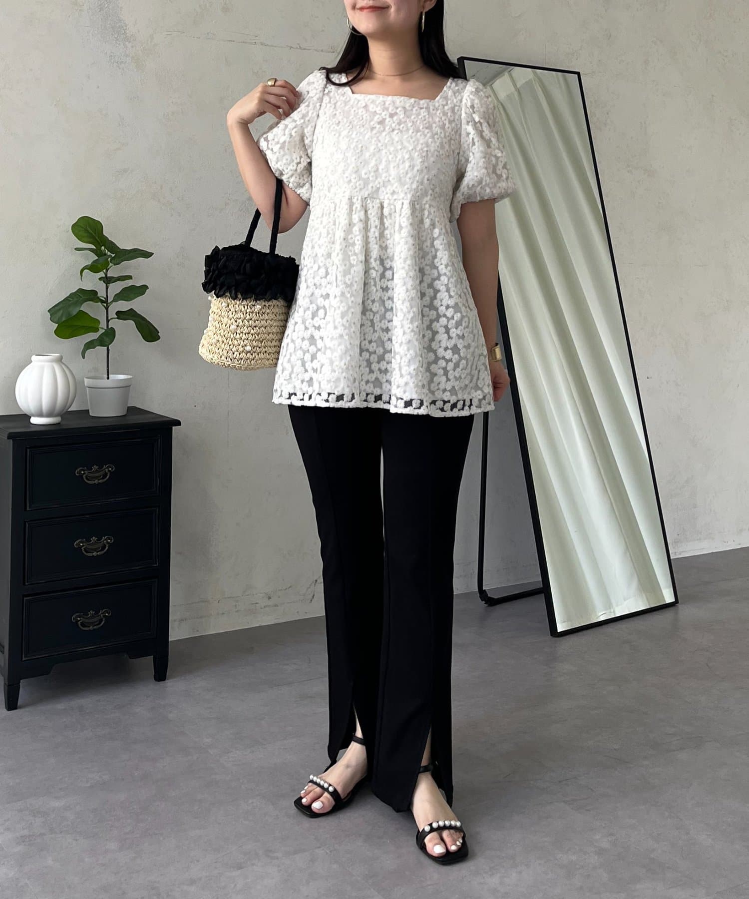 • prose verse(プロズヴェール) フラワーチュールレースペプラムブラウス