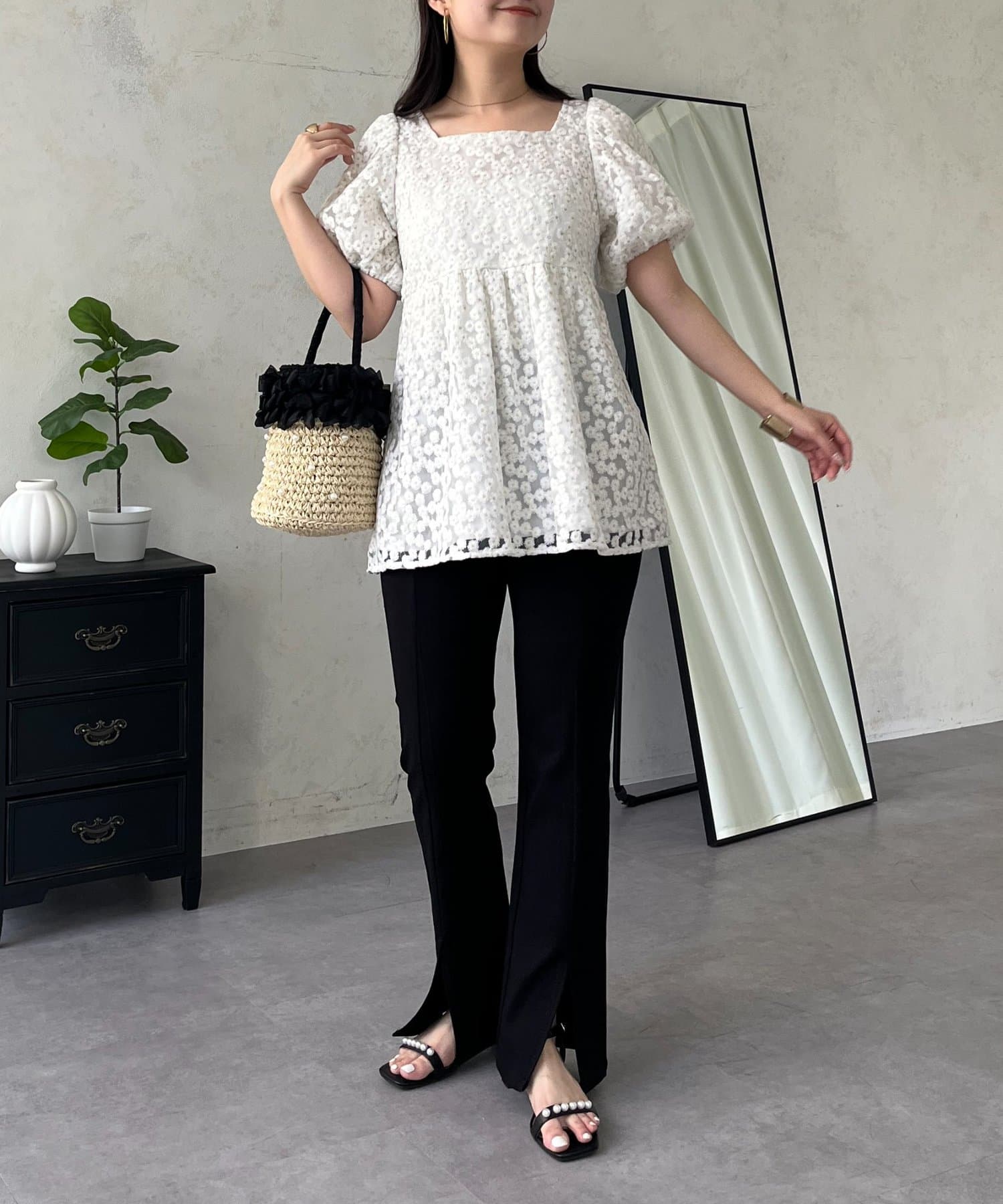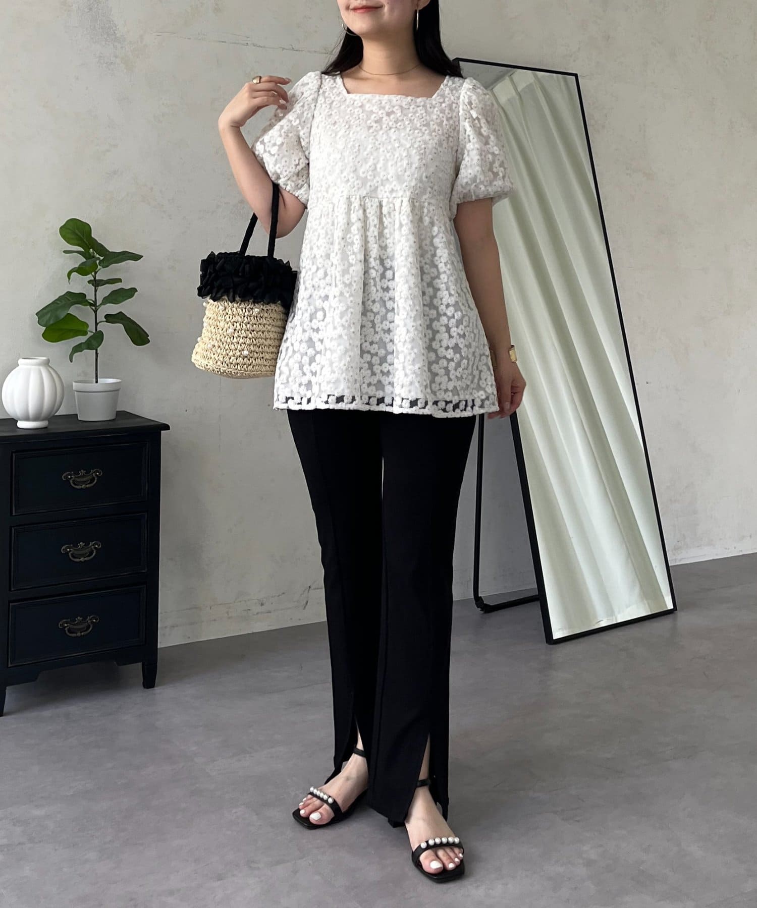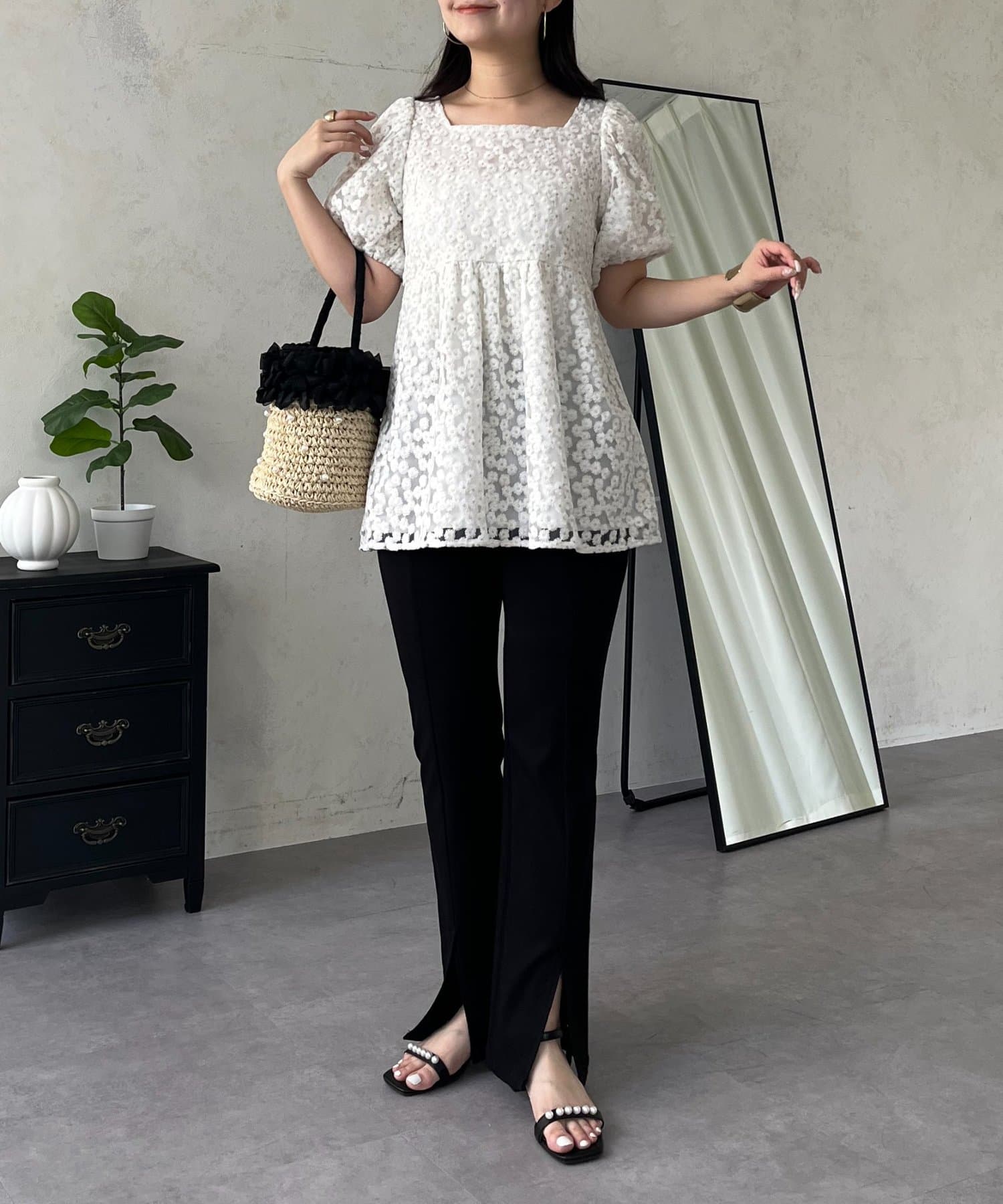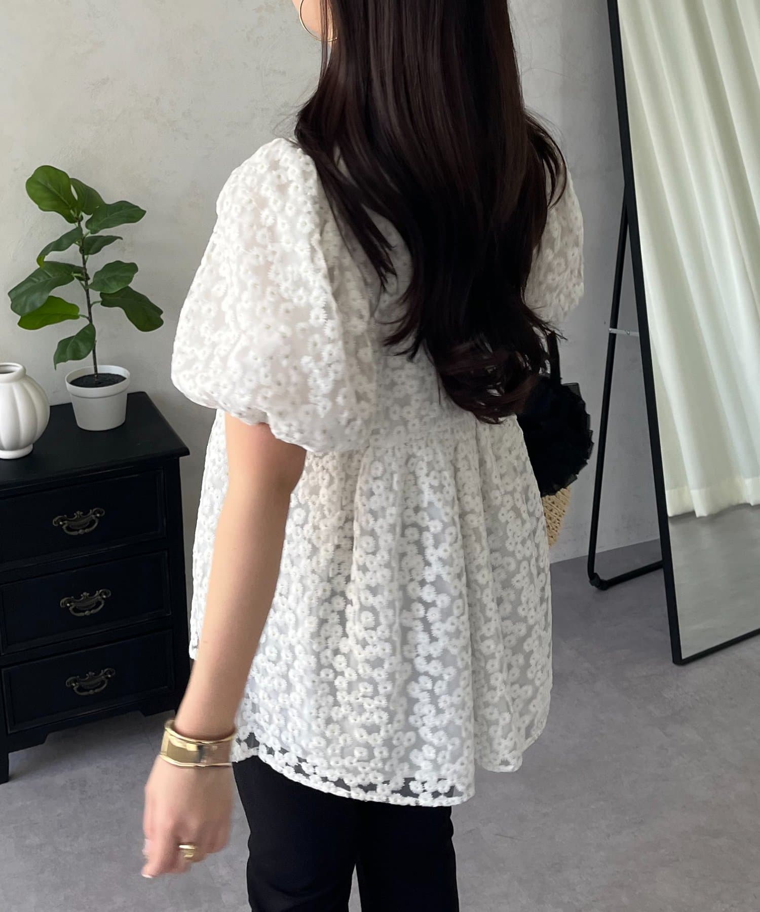 • prose verse(プロズヴェール) フラワーチュールレースペプラムブラウス
