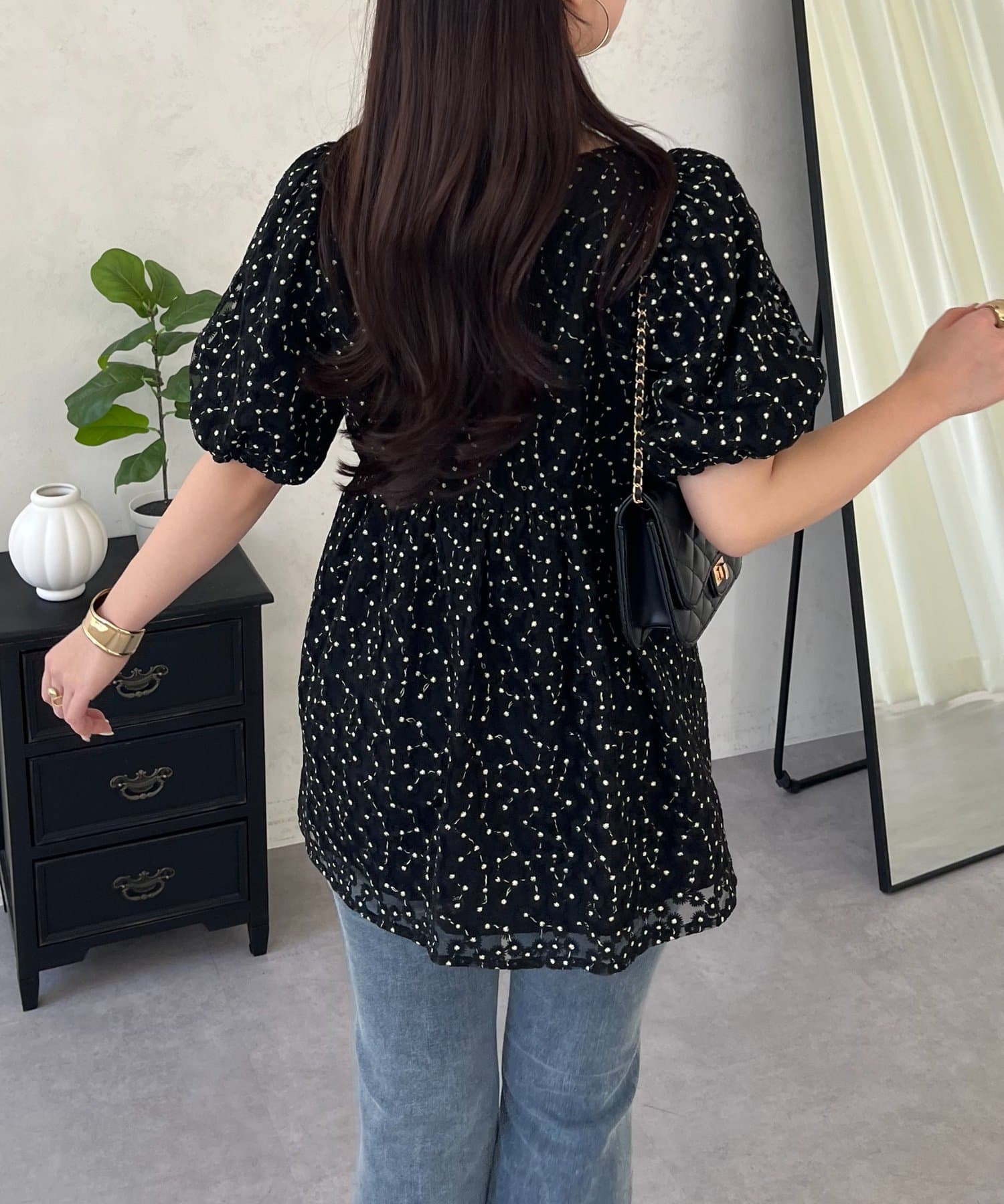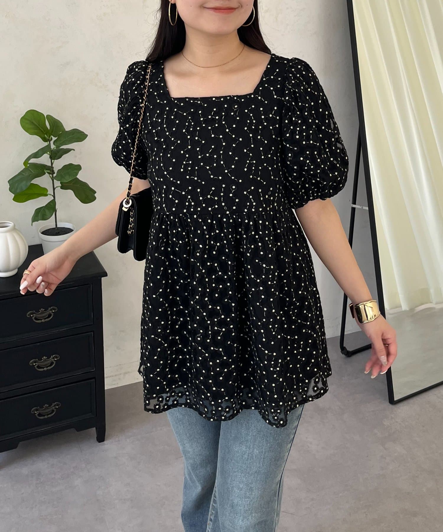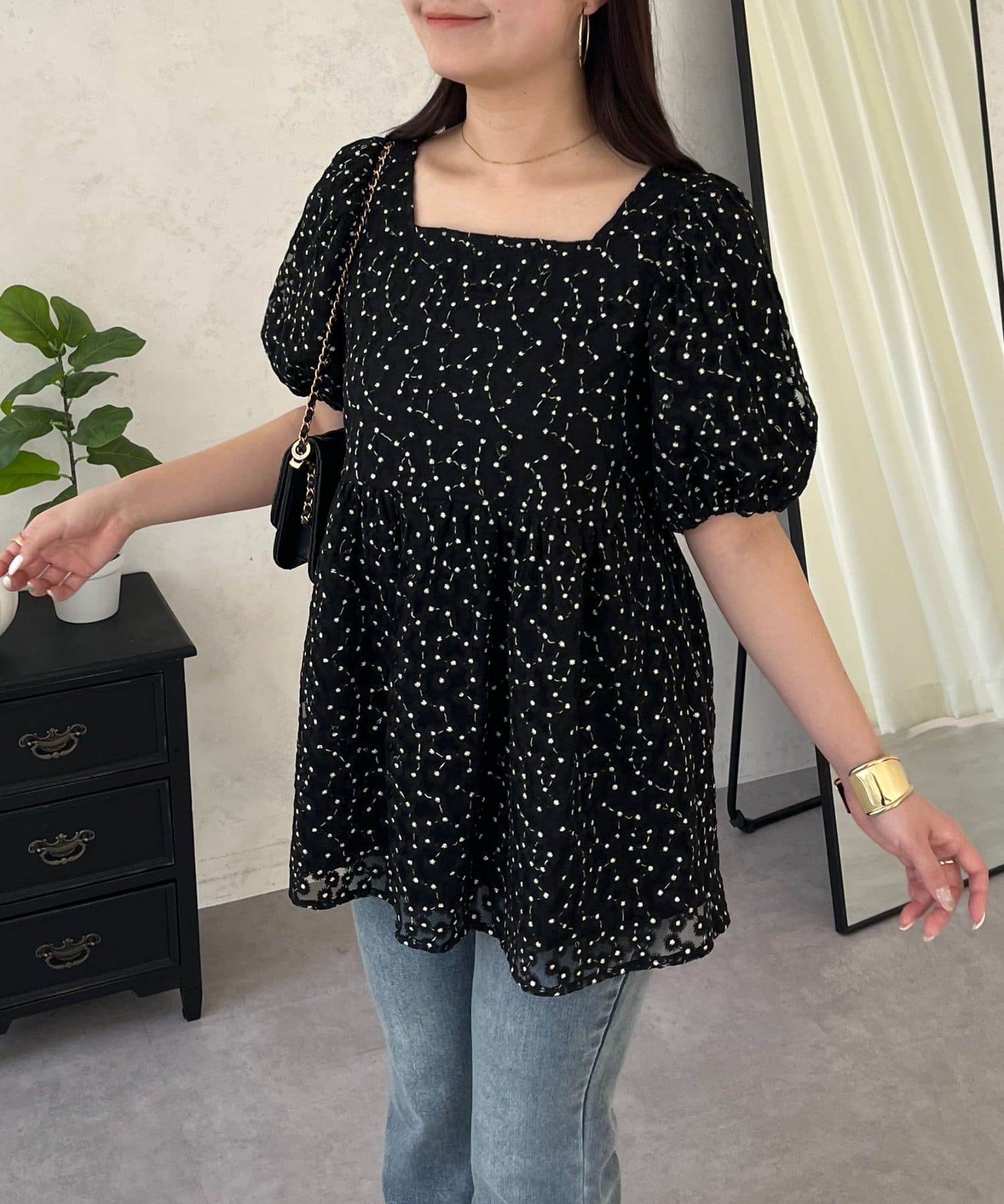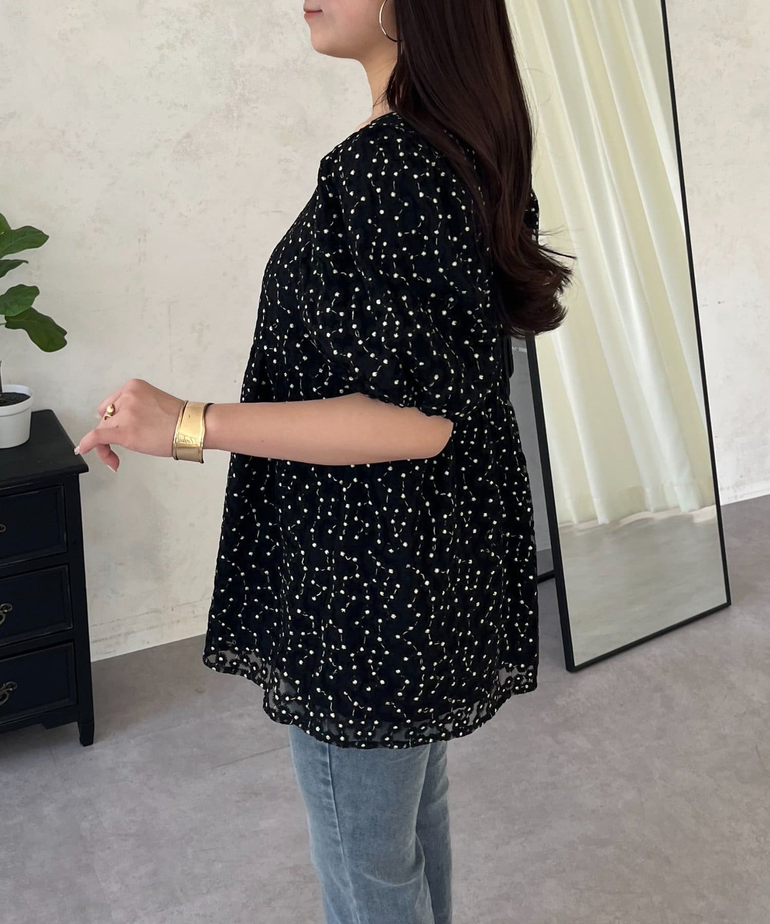 • prose verse(プロズヴェール) フラワーチュールレースペプラムブラウス