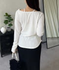 ●首元の美しいドレープが、顔周りを華やかでエレガントな印象に演出
