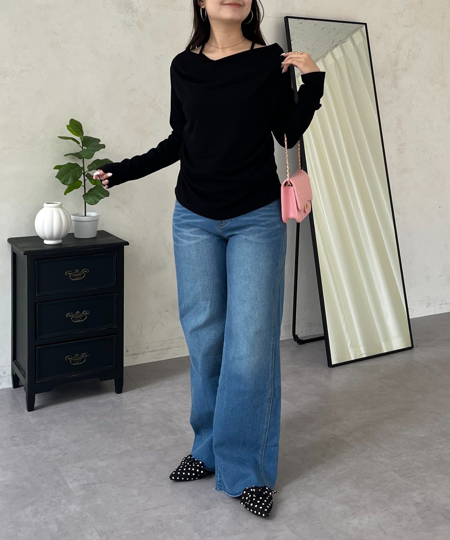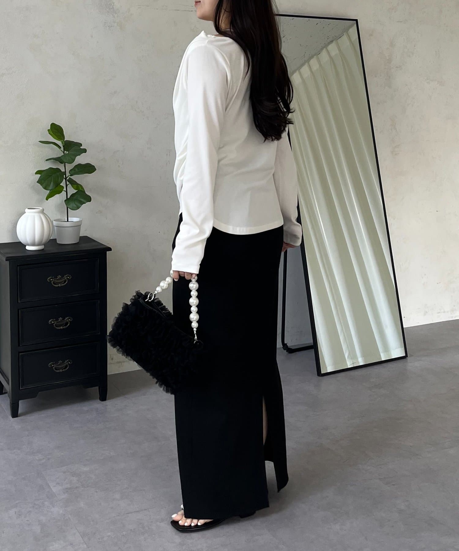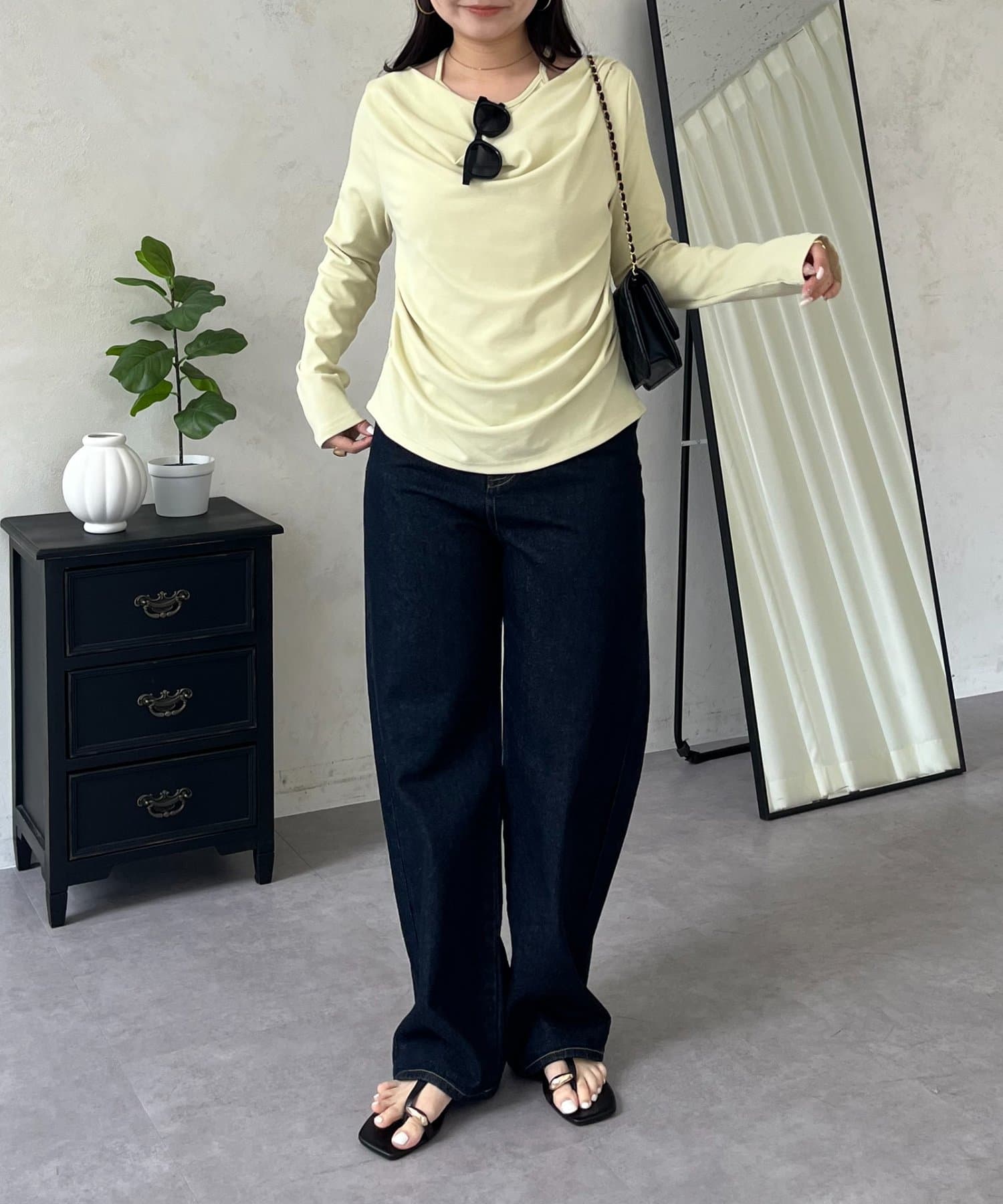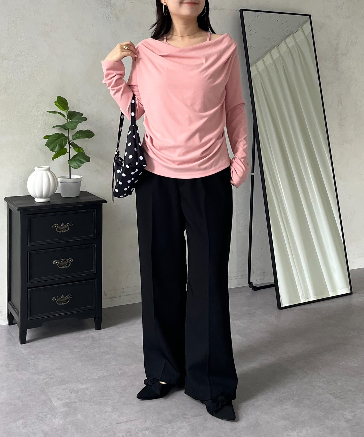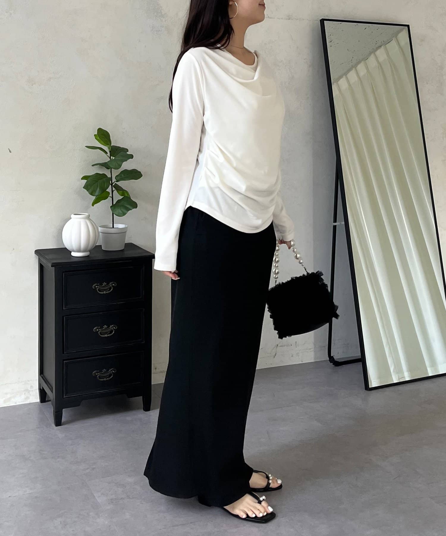 ●フロントのドレープが気になるボディラインを自然にカバーしてくれるのも嬉しいポイントです♩