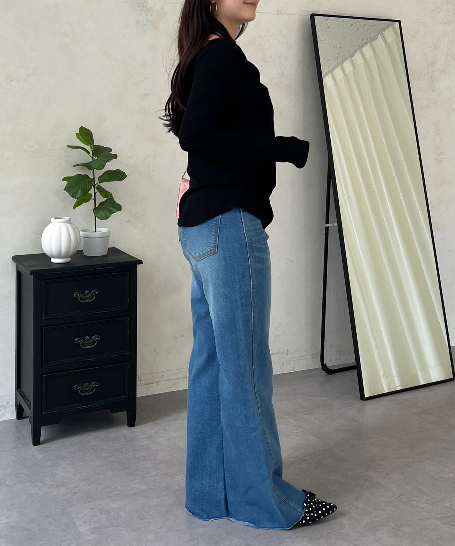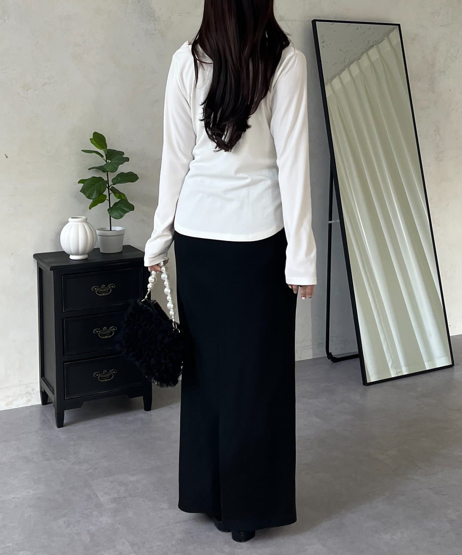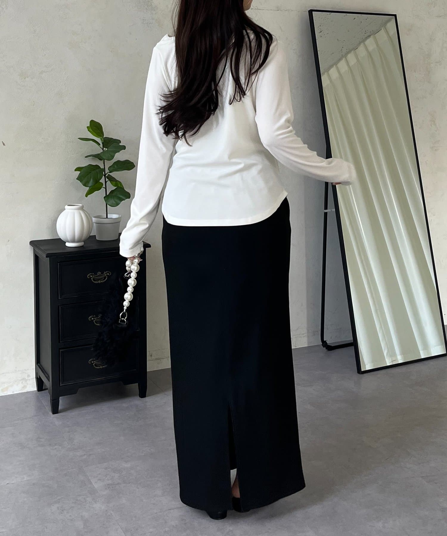 ●きれいめスカートでオフィス仕様に、デニムと合わせてカジュアルダウンにと、オンオフ問わず活躍する一枚