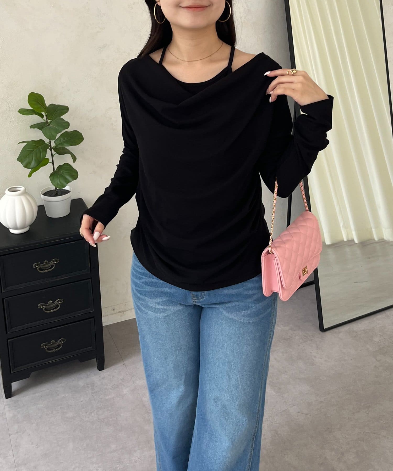 prose verse(プロズヴェール) レイヤードドレープネックトップス