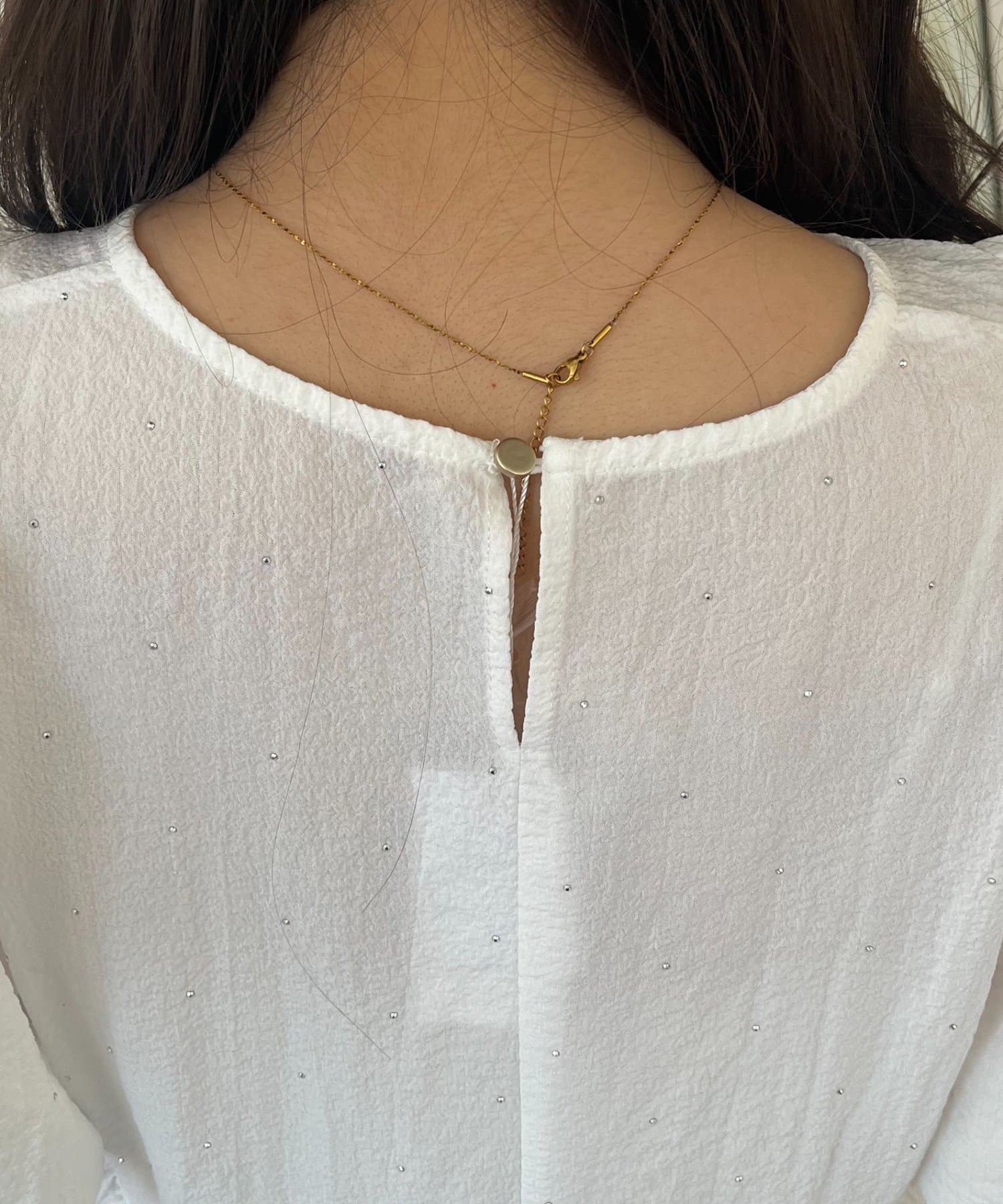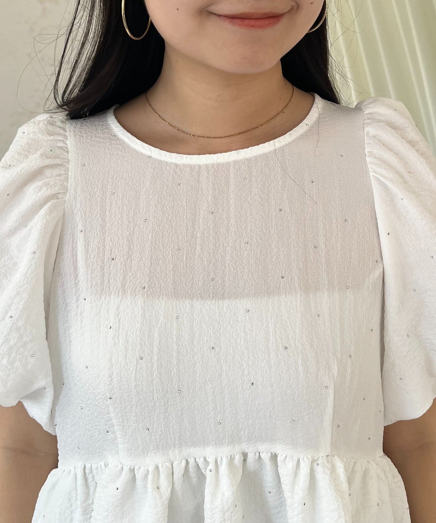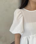 ●ふんわりとしたパフスリーブが二の腕を自然にカバーし、女性らしいシルエットを演出