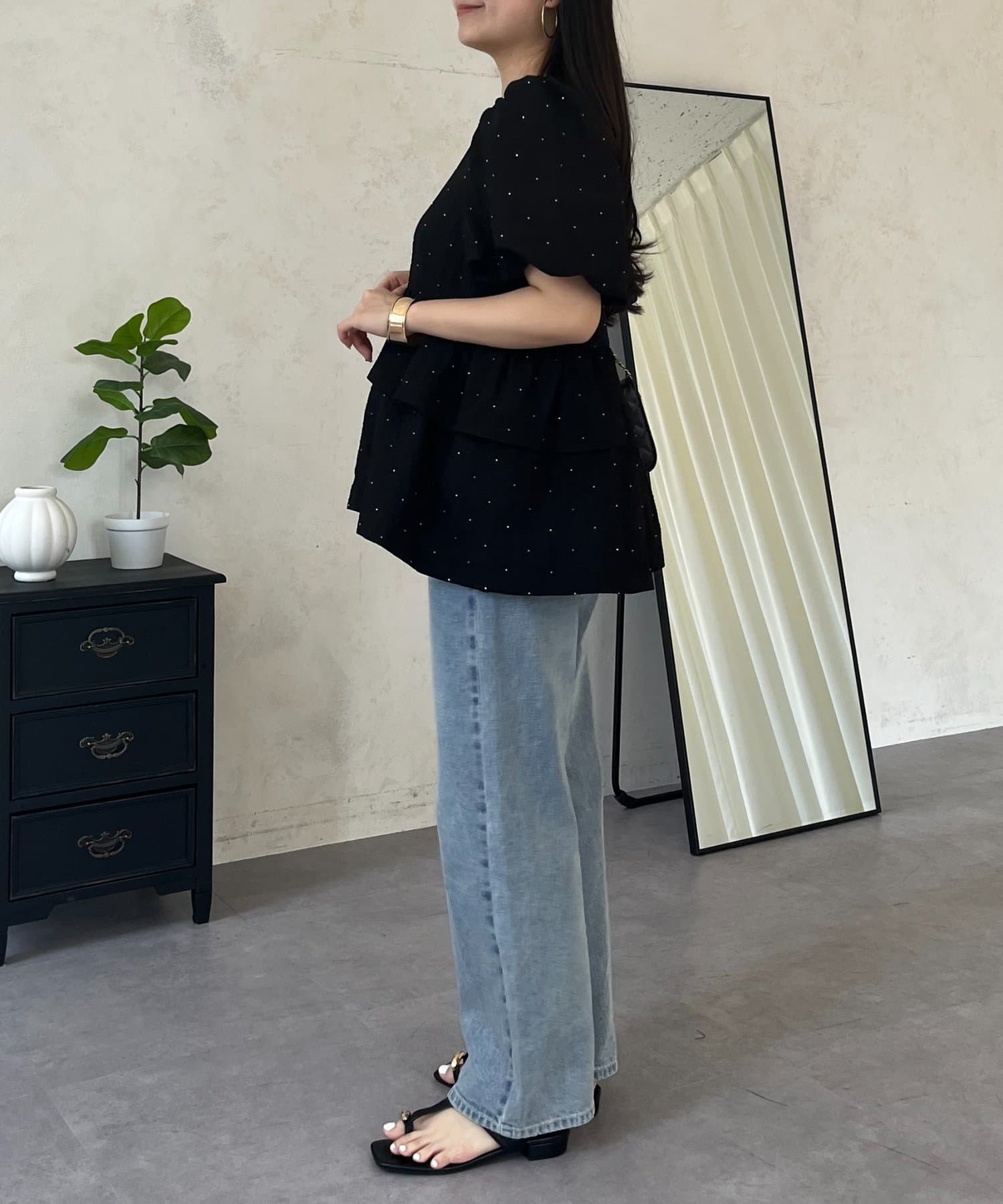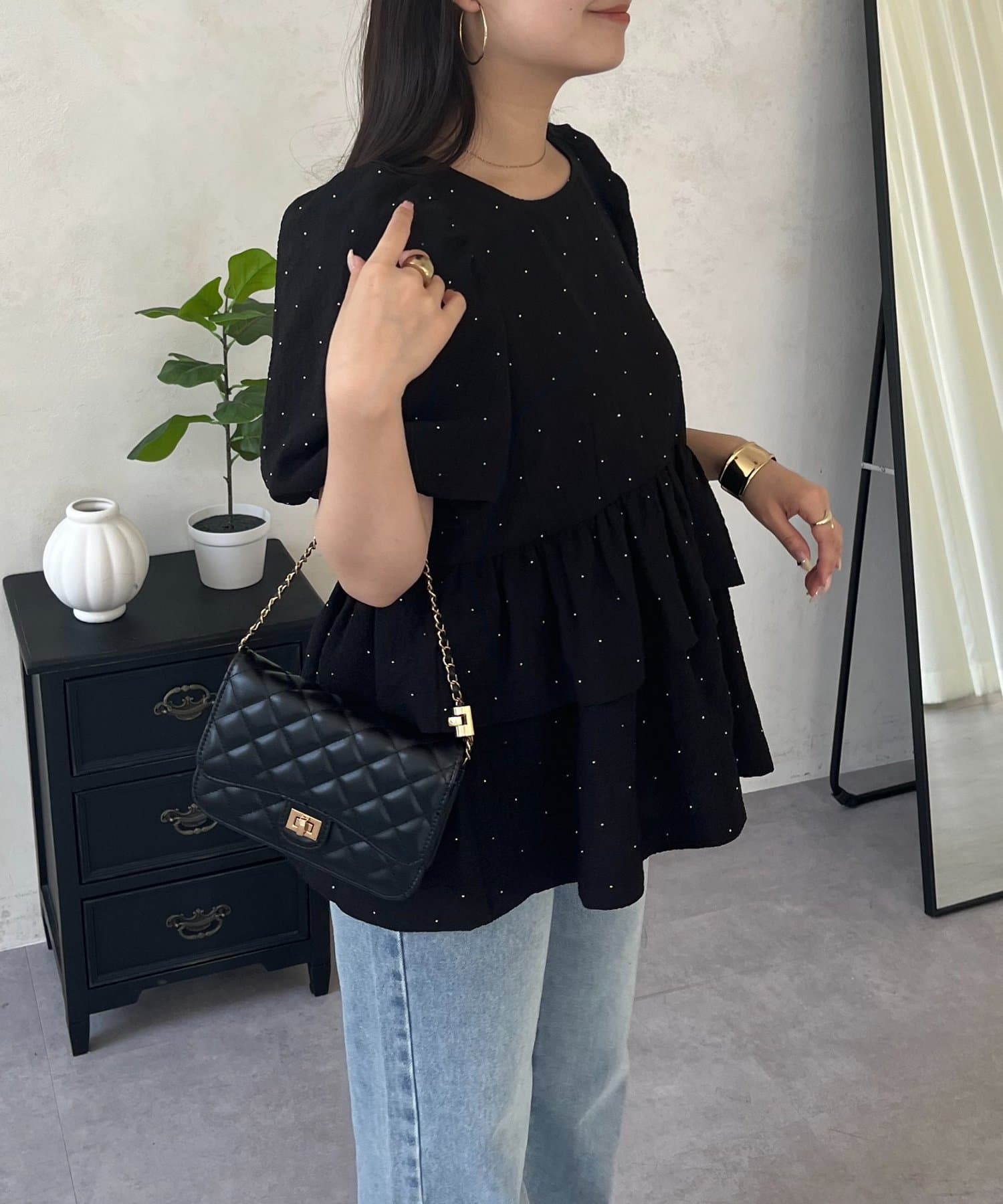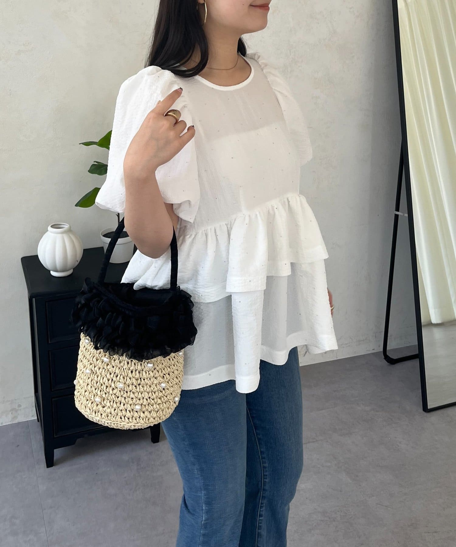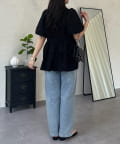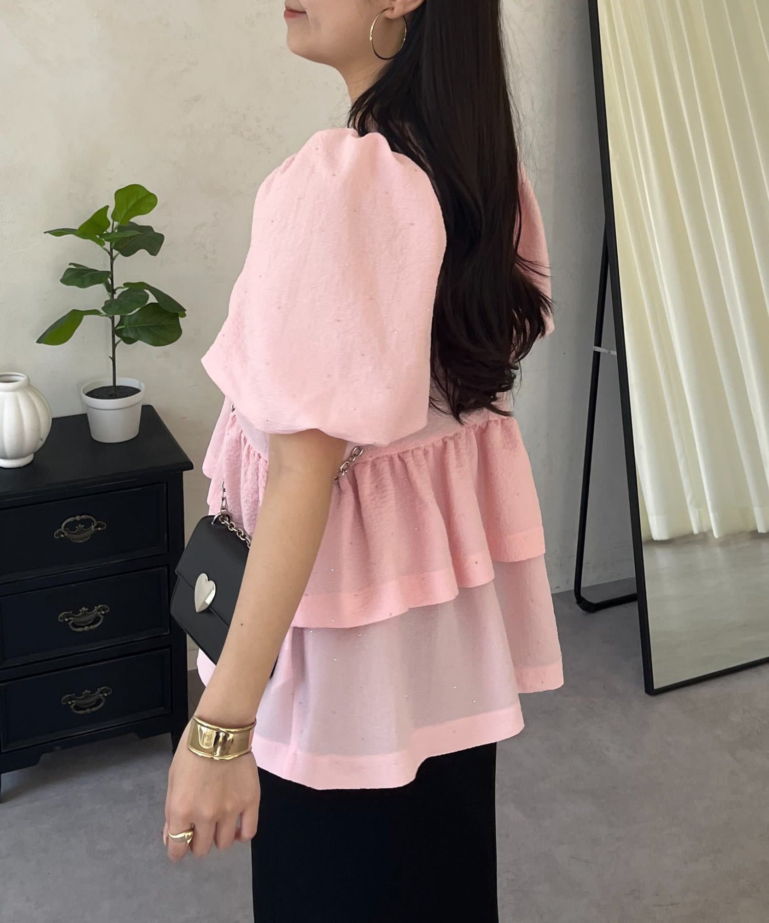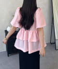 • prose verse(プロズヴェール) Wフリルキラキラペプラムパフスリーブブラウス