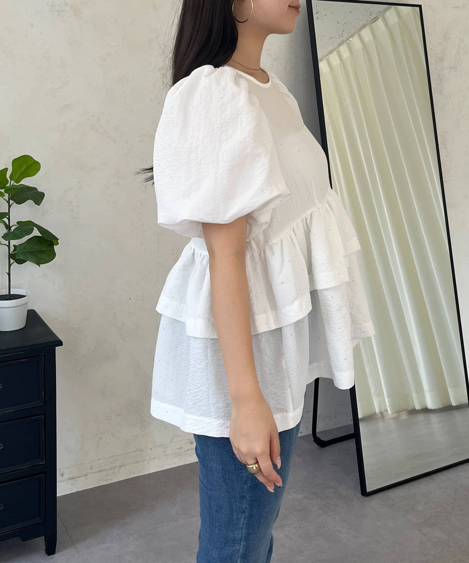prose verse(プロズヴェール) Wフリルキラキラペプラムパフスリーブブラウス