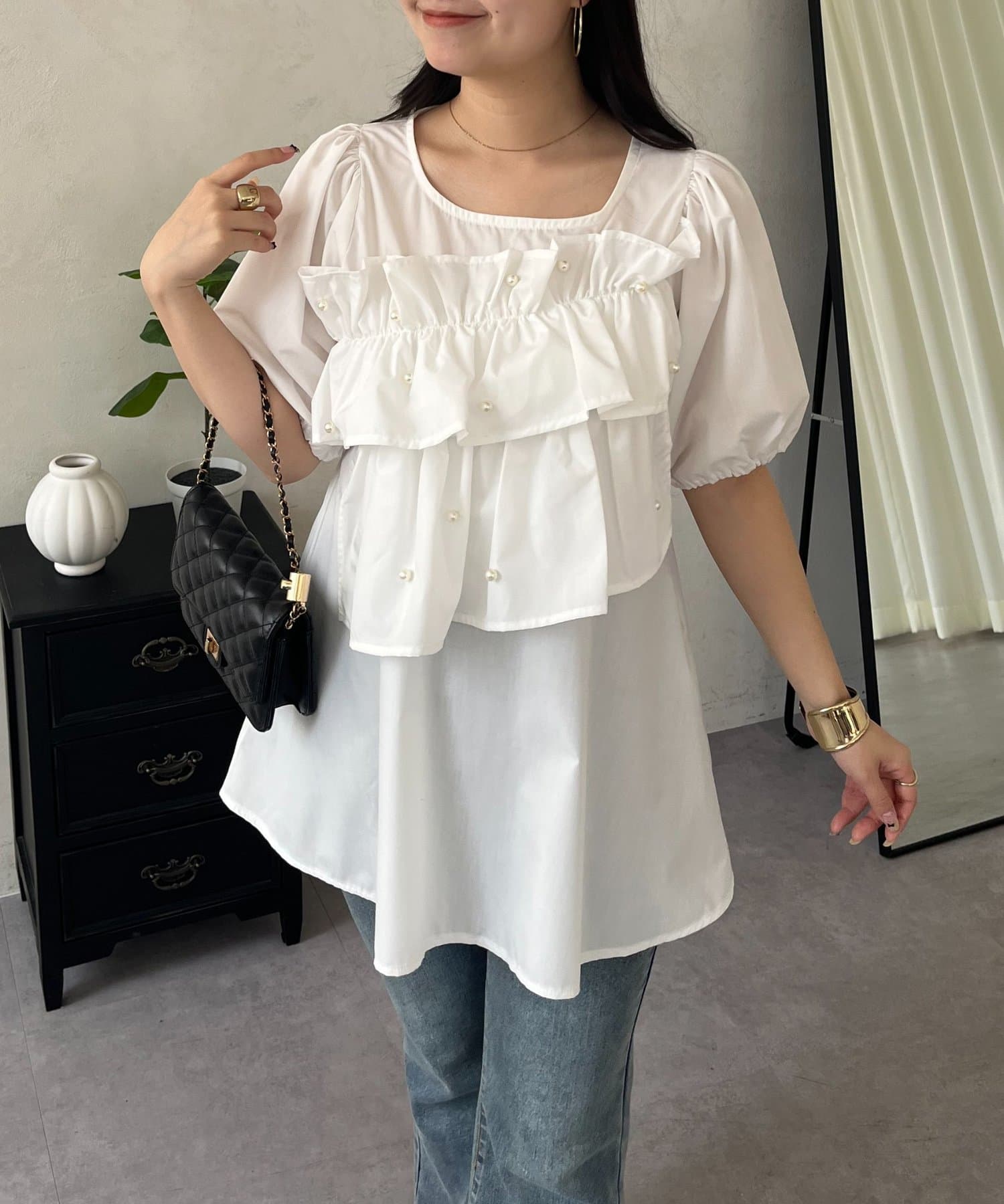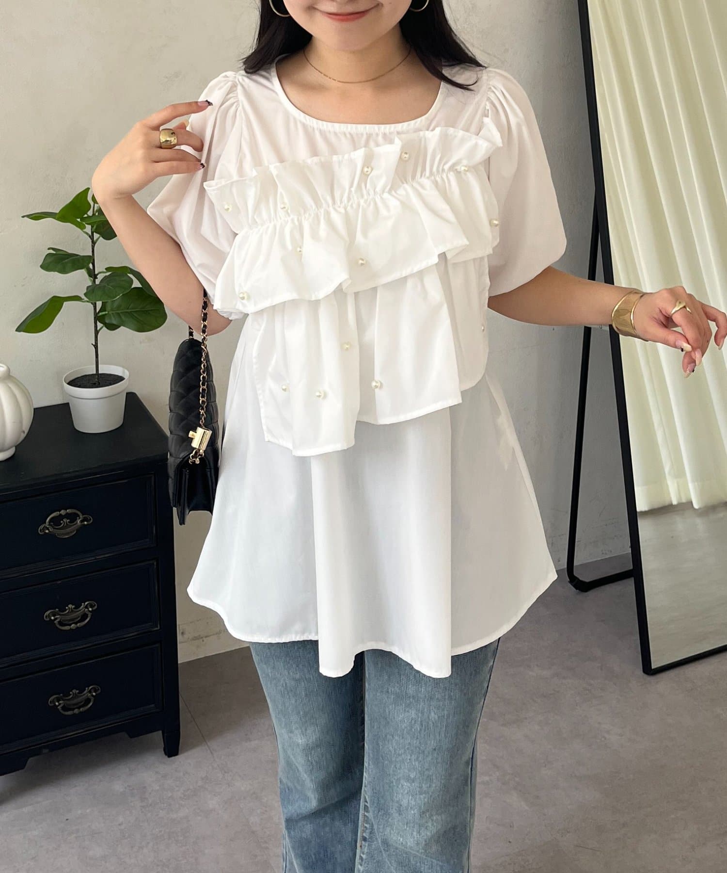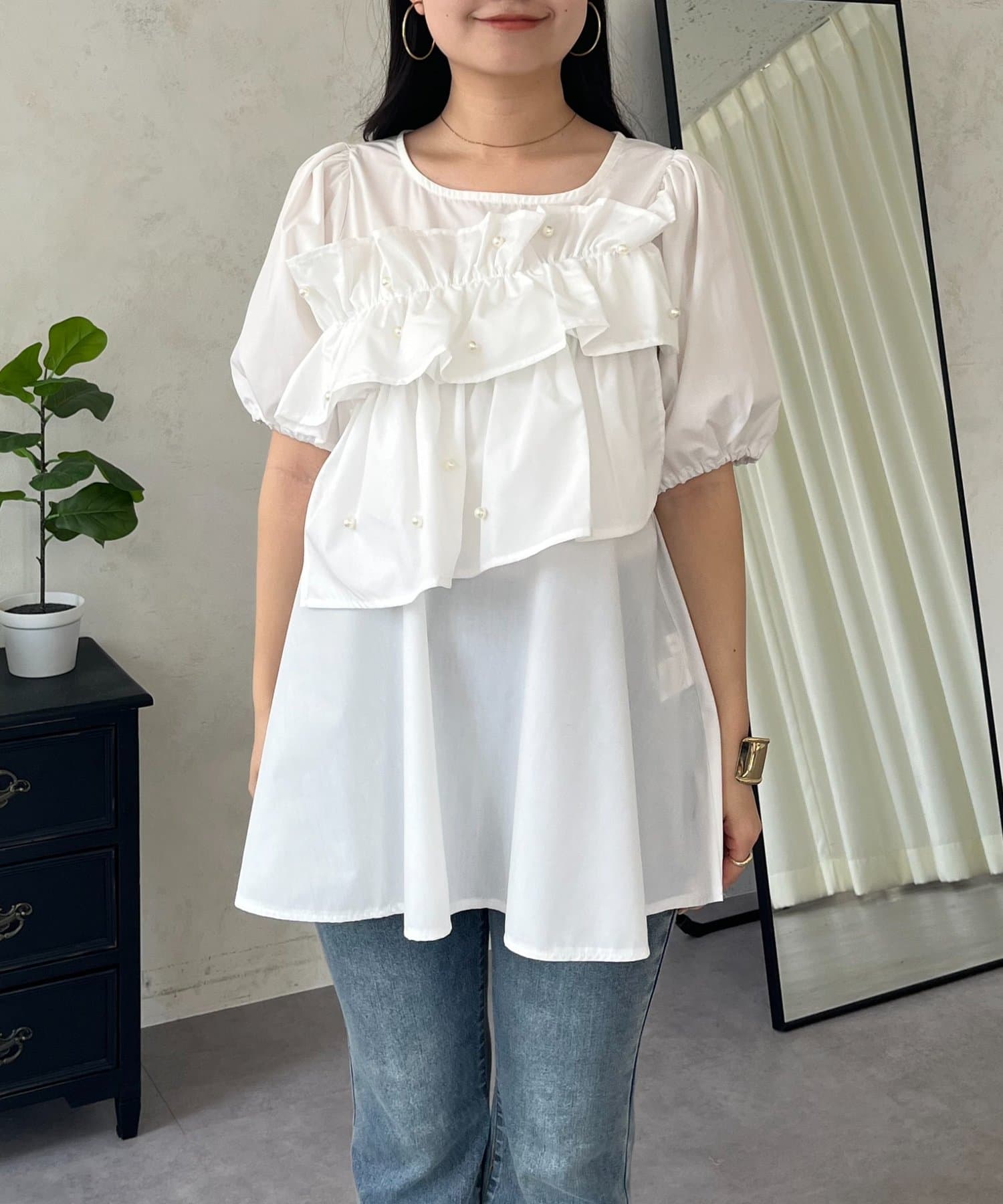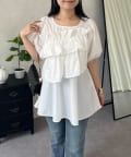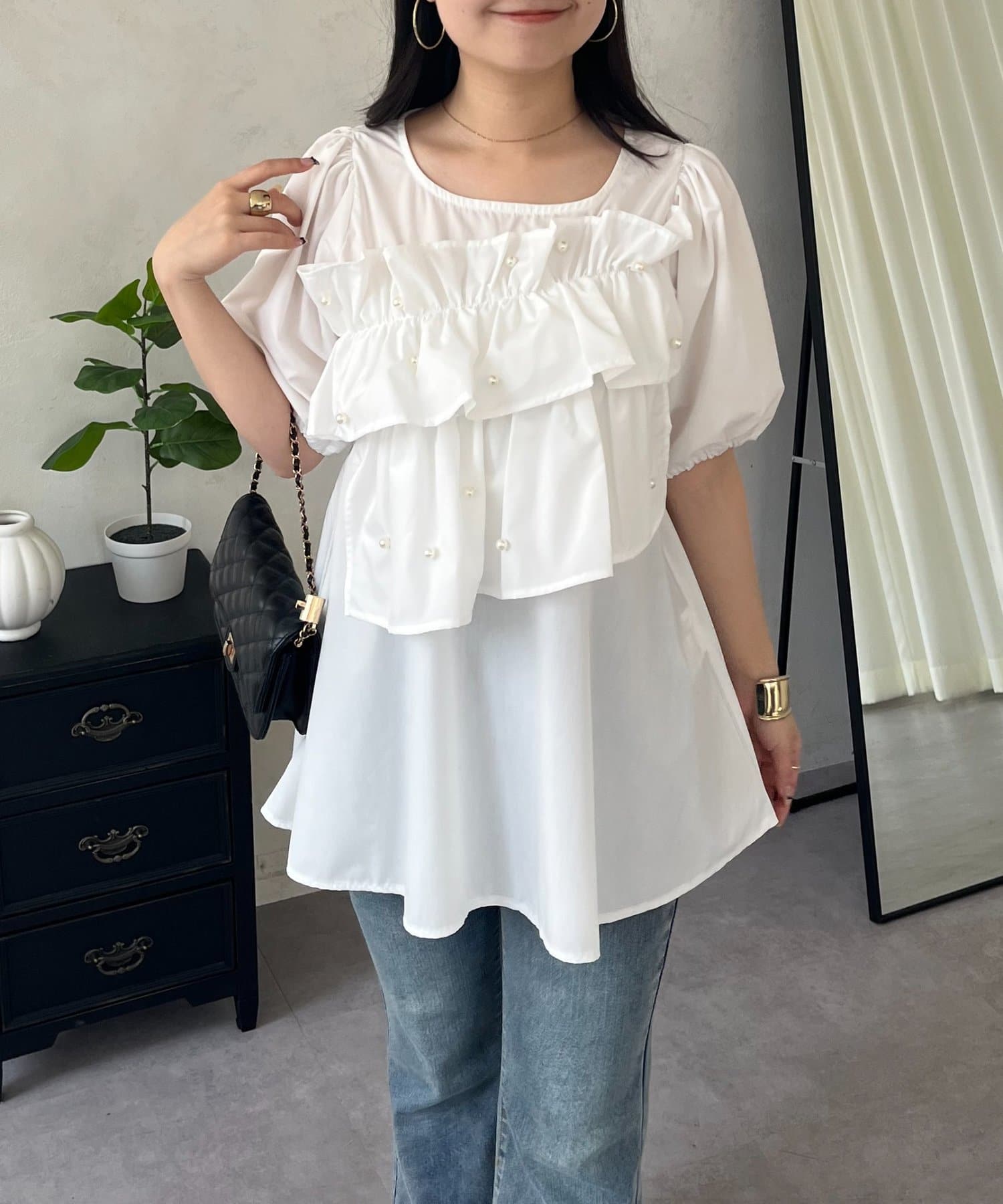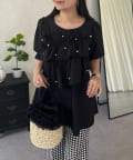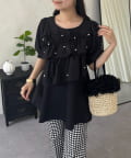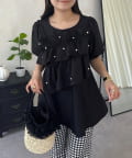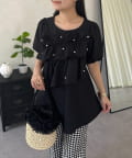 フロントフリルパールペプラムブラウス