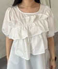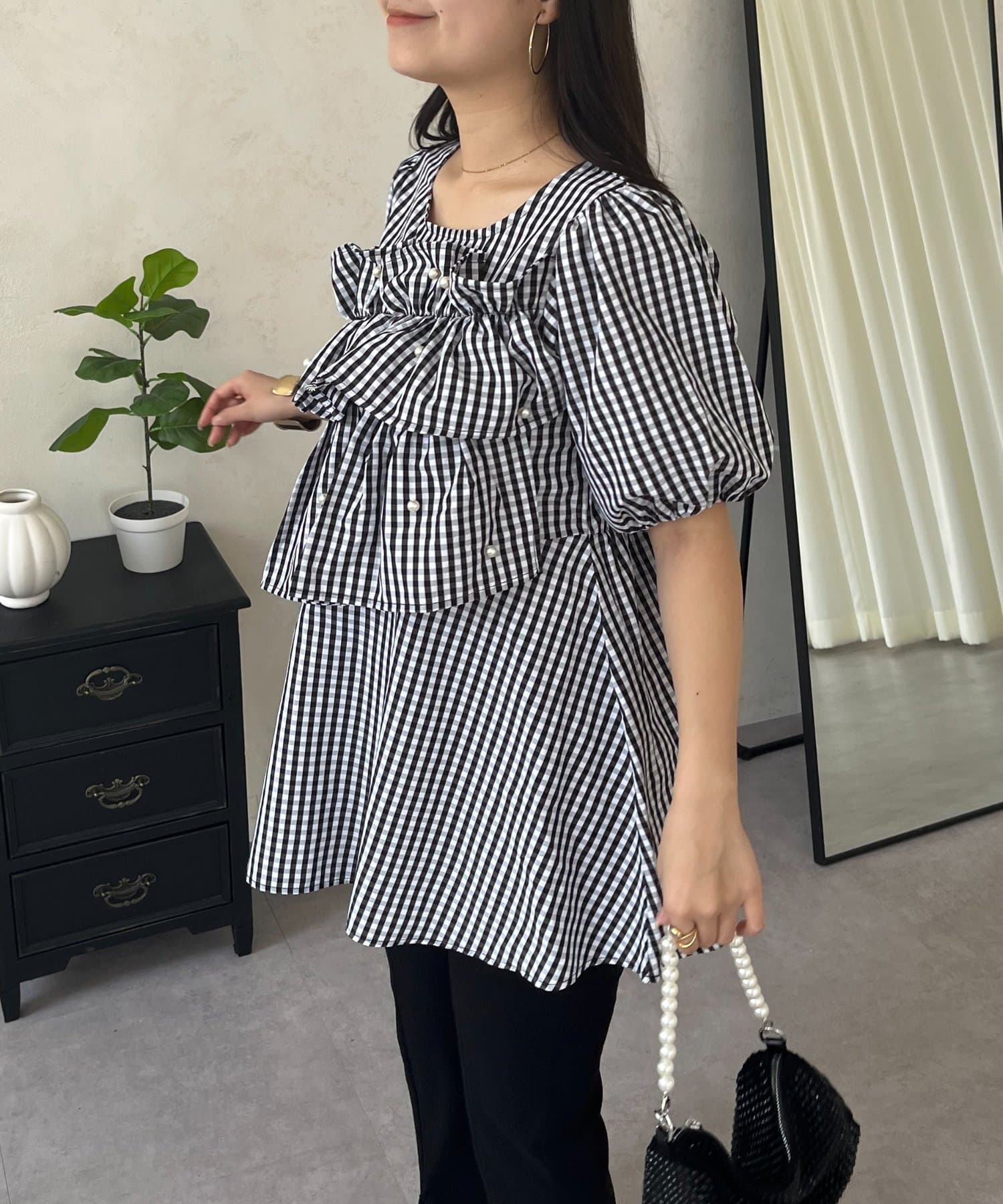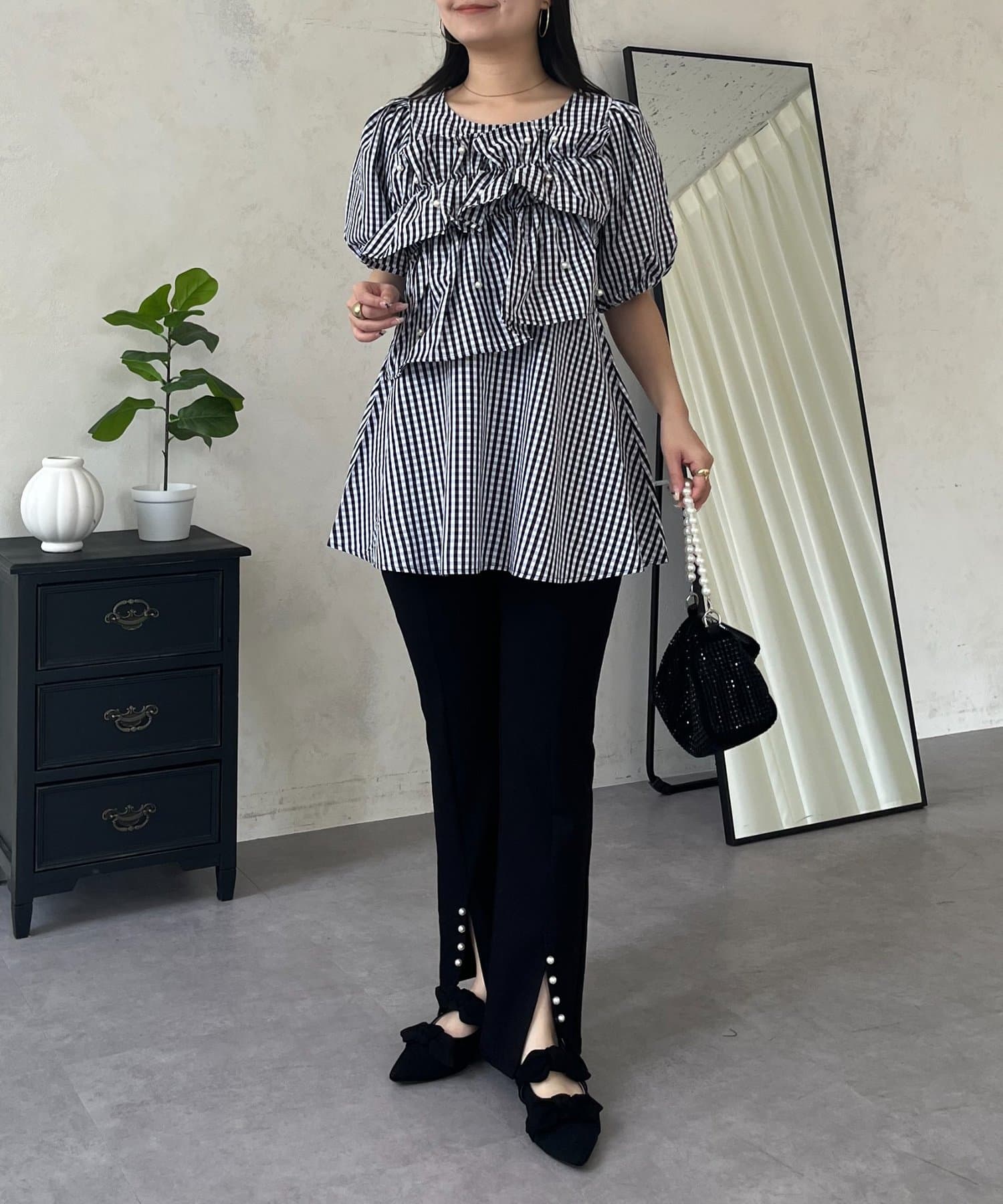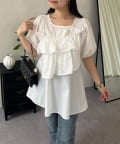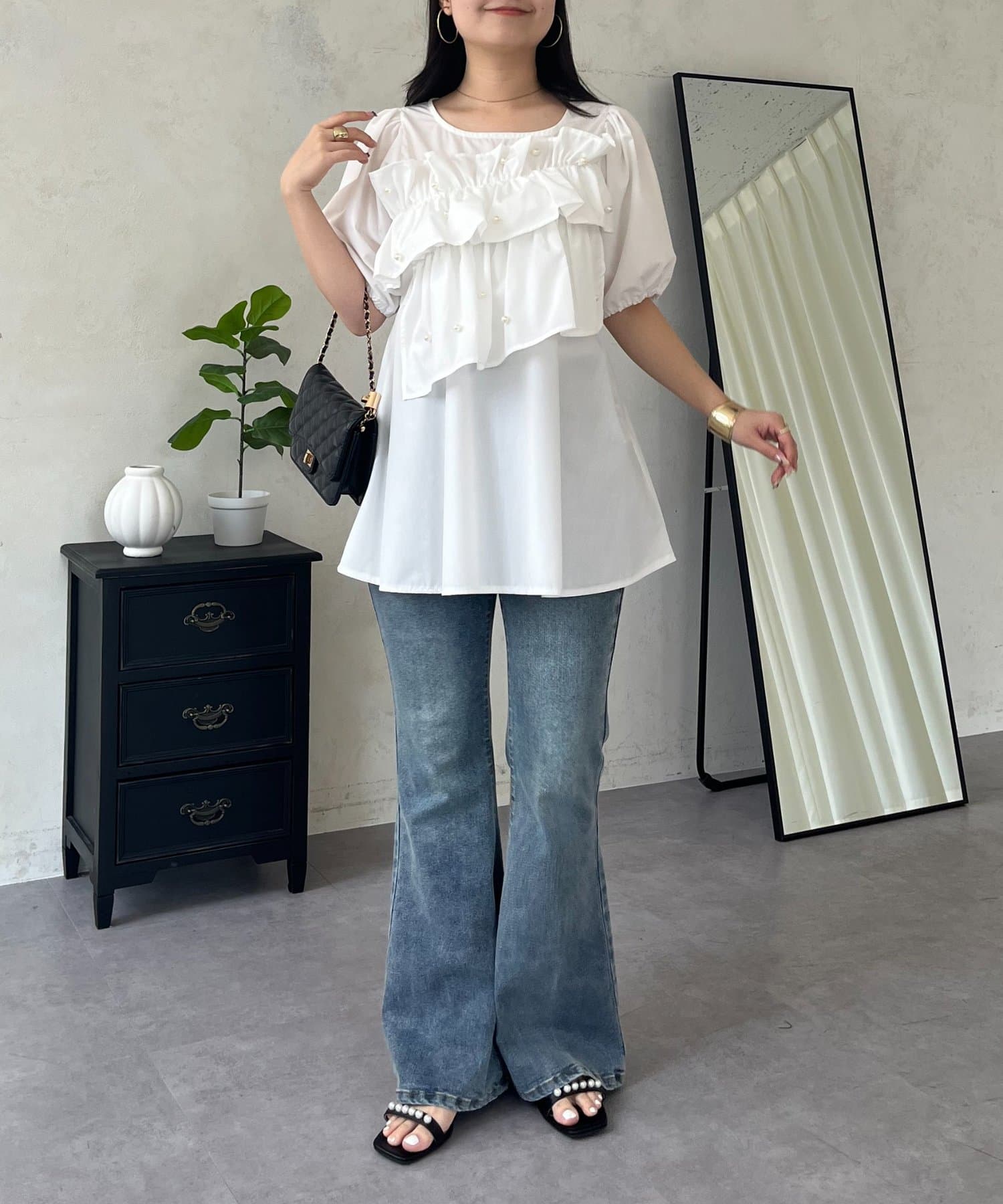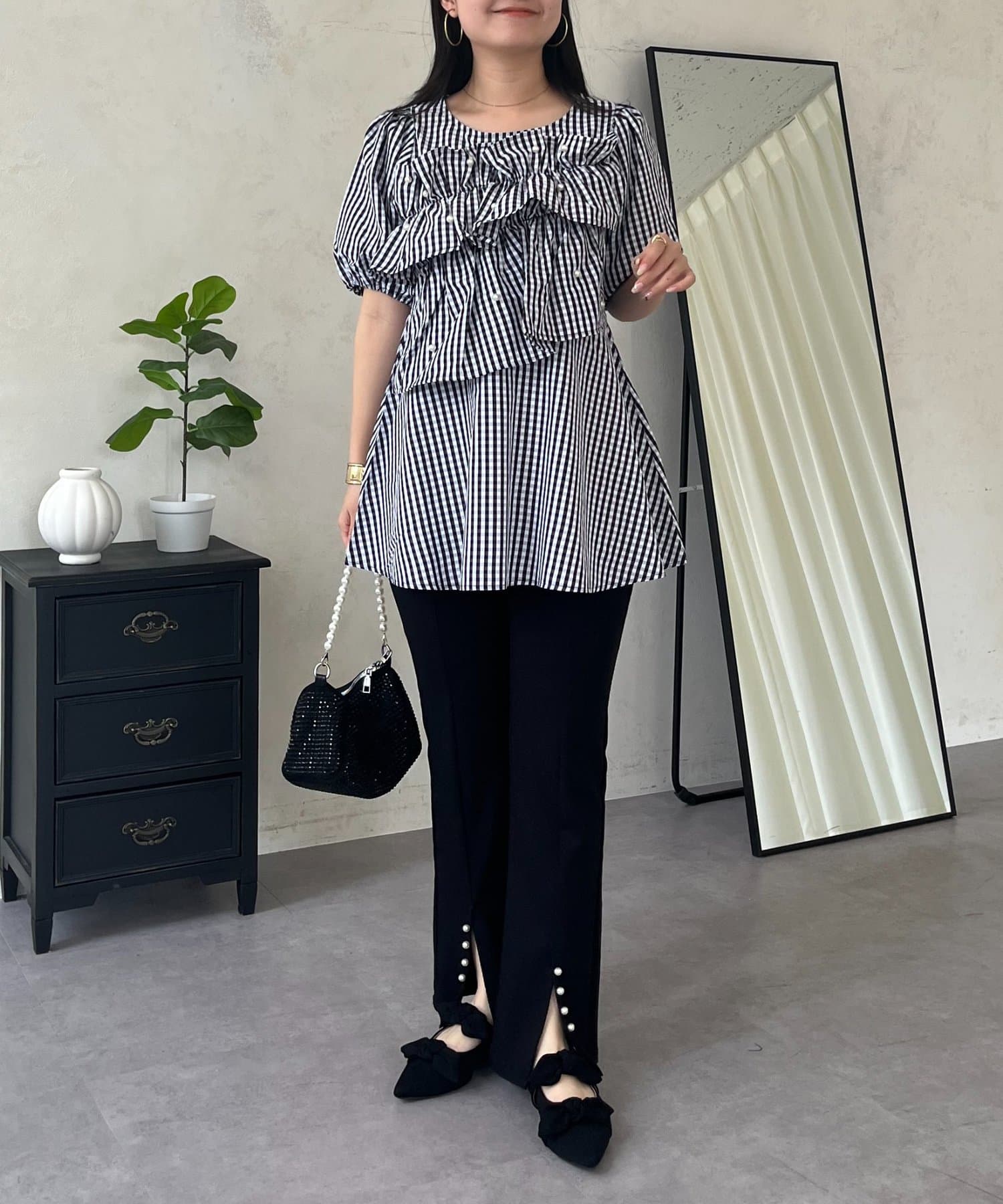 フロントフリルパールペプラムブラウス